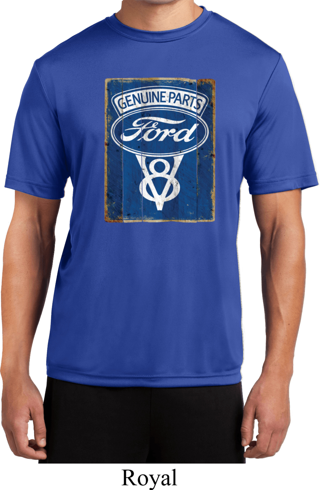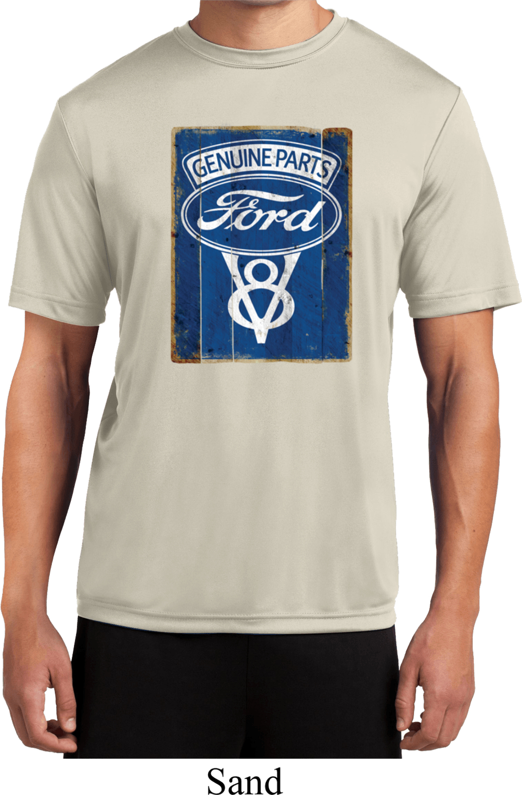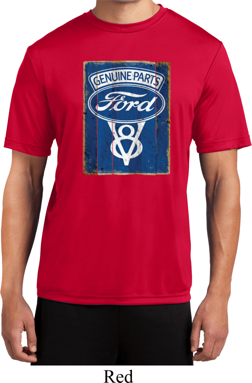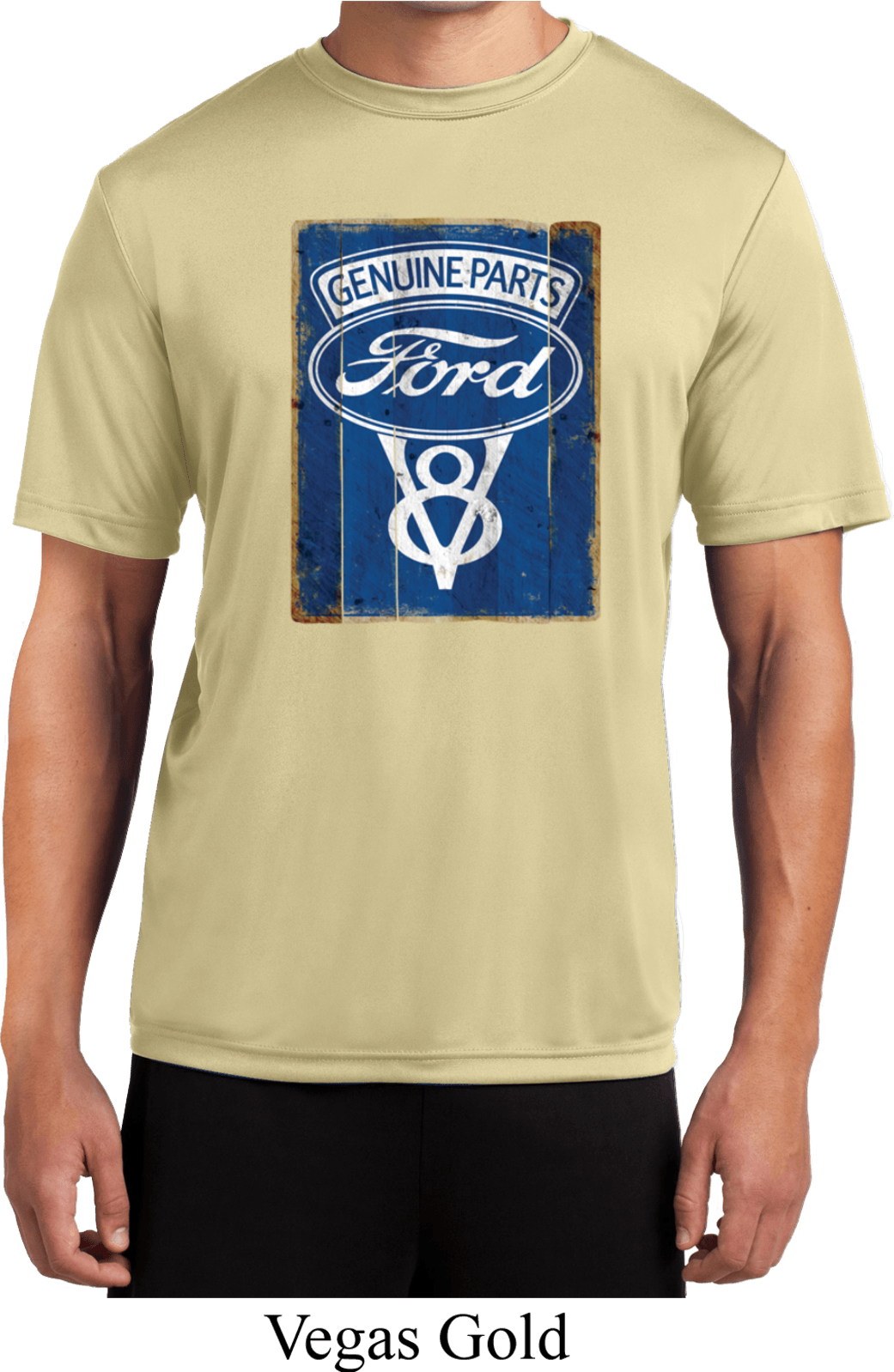 | | Mens Ford Shirt V8 Genuine Ford Parts Moisture Wicking Tee T-ShirtMens Ford Shirt V8 Genuine Ford Parts Moisture Wicking Tee T-Shirt 100% polyester Available in Small, Medium, Large, XL, 2XL, 3XL & 4XL Also available in colors Black, Cardinal, Carolina Blue, Deep Orange, Forest, Gold, Kelly, Light Pink, Lime, Maroon, Navy, Purple, Red, Royal, Sand, Silver, Tropic Blue, Vegas Gold, and White |
