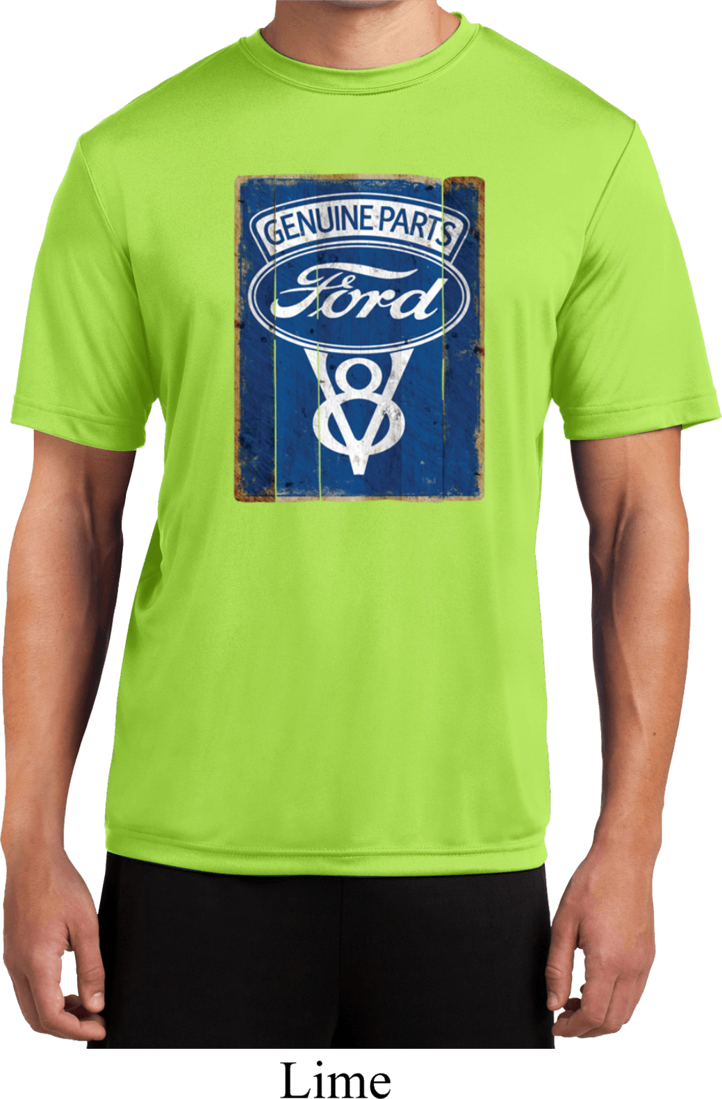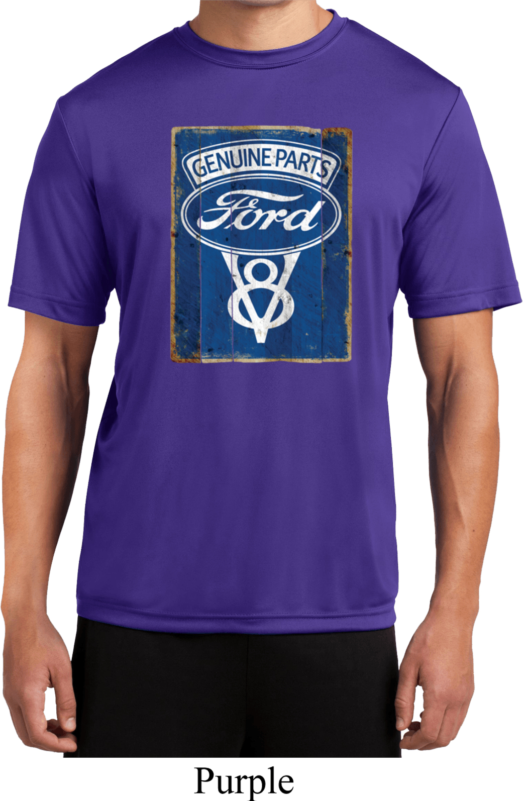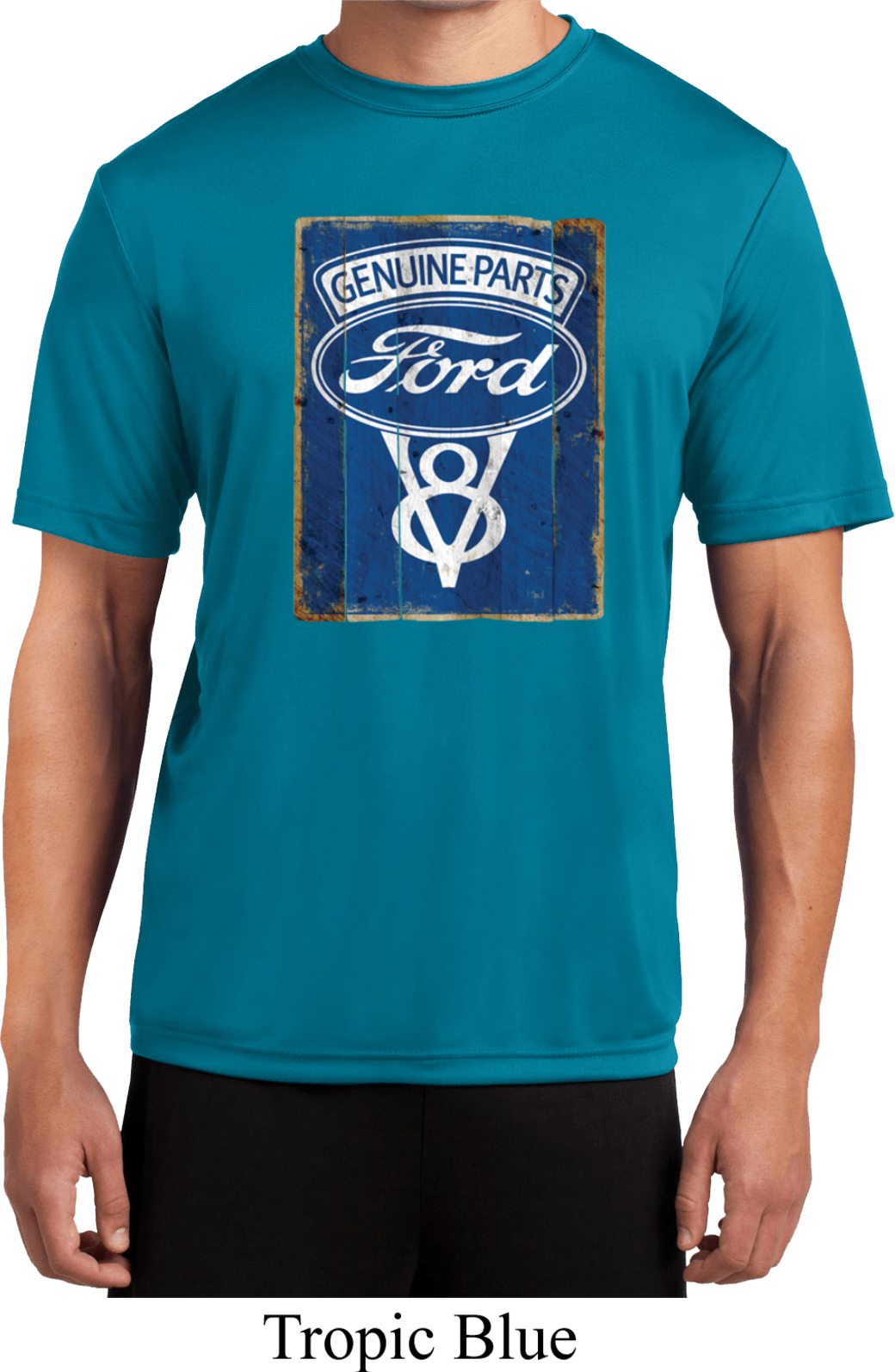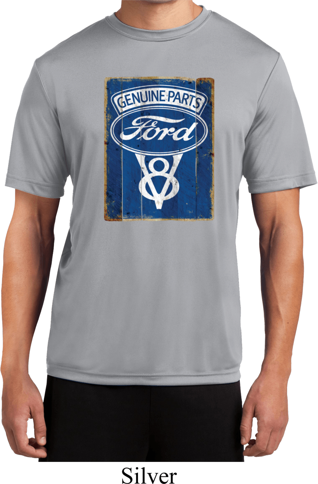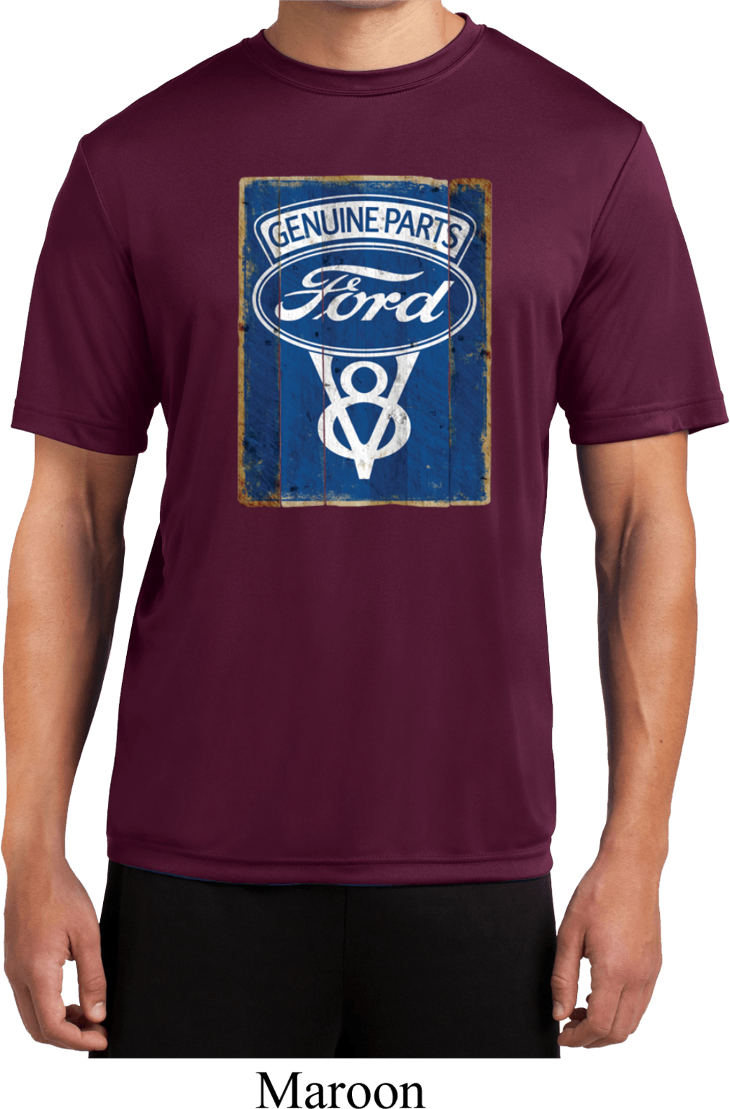 | | Mens Ford Shirt V8 Genuine Ford Parts Moisture Wicking Tee T-ShirtMens Ford Shirt V8 Genuine Ford Parts Moisture Wicking Tee T-Shirt 100% polyester Available in Small, Medium, Large, XL, 2XL, 3XL & 4XL Also available in colors Black, Cardinal, Carolina Blue, Deep Orange, Forest, Gold, Kelly, Light Pink, Lime, Maroon, Navy, Purple, Red, Royal, Sand, Silver, Tropic Blue, Vegas Gold, and White |