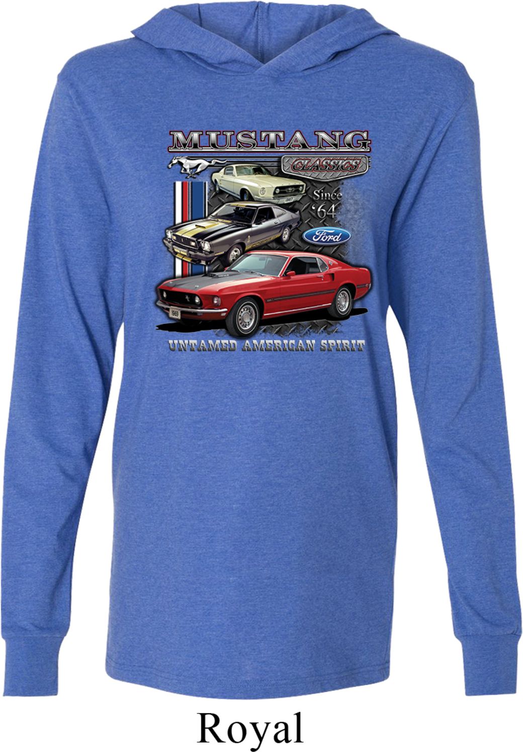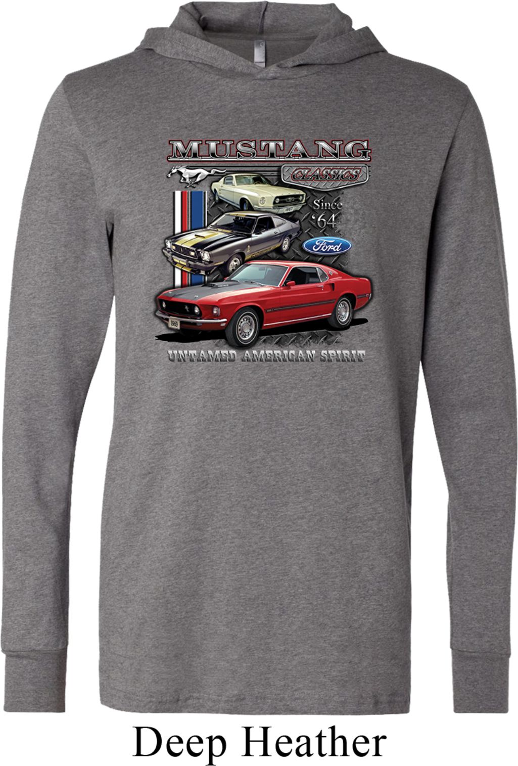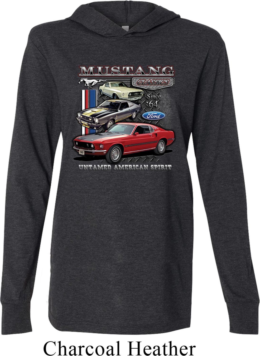 | | Mens Ford Tee Classic Mustangs Untamed Lightweight HoodieA mens lightweight hoodie featuring Ford Mustang Classics since 1964, Untamed American Spirit. Our mens shirt is made of 100% cotton. (Deep Heather, Grey Charcoal, Navy, and Royal are made of cotton/poly; Charcoal is made with a blend of cotton/poly/rayon) Available in sizes Small through 2XL. Machine wash cold with like colors; dry low heat. ![]() |