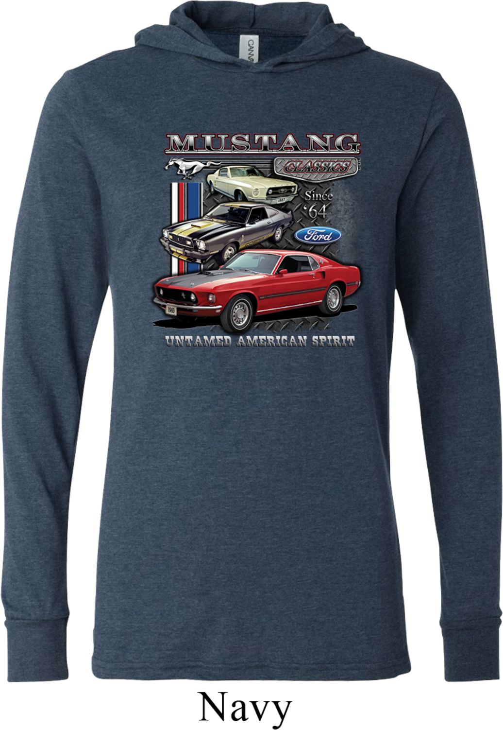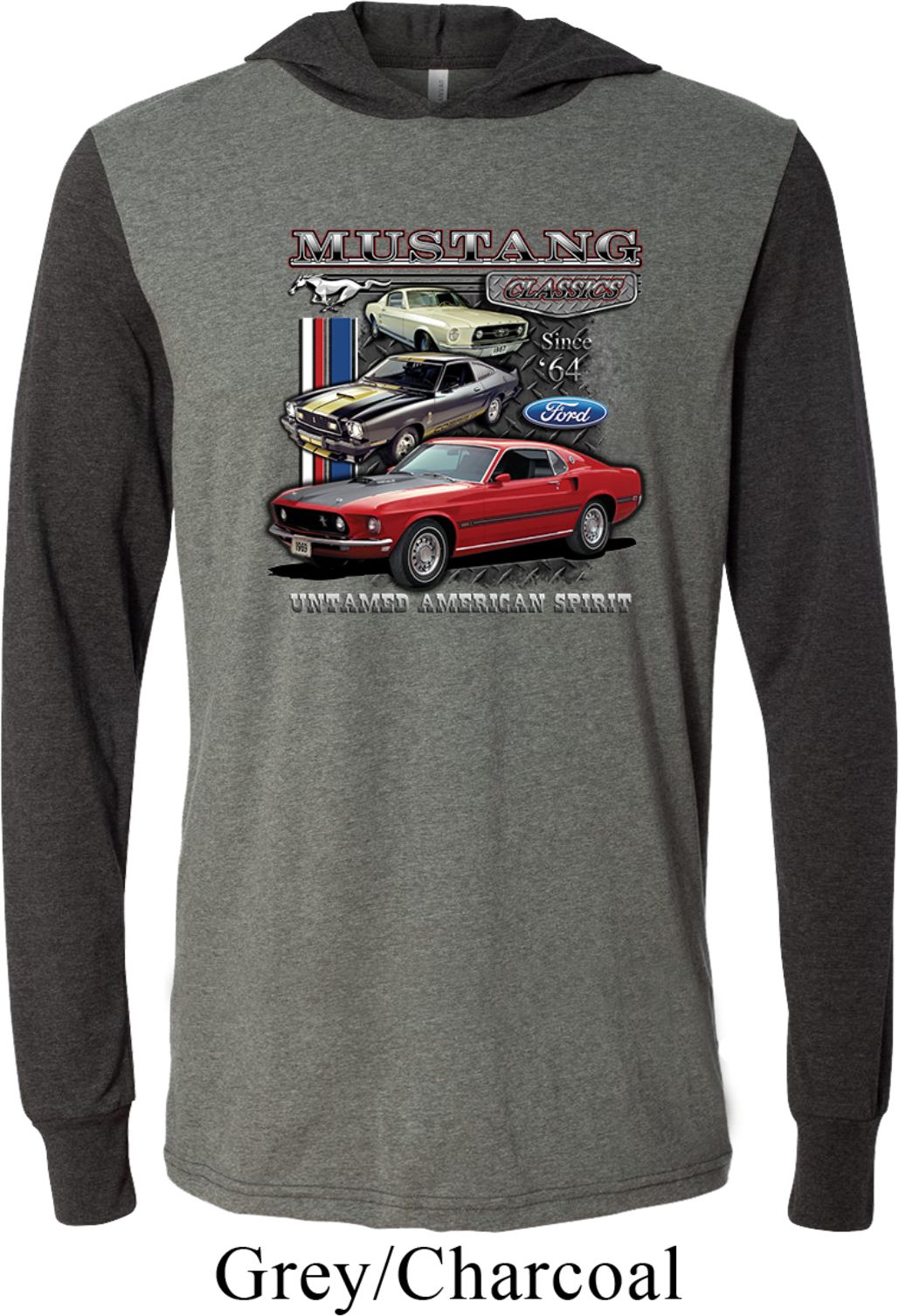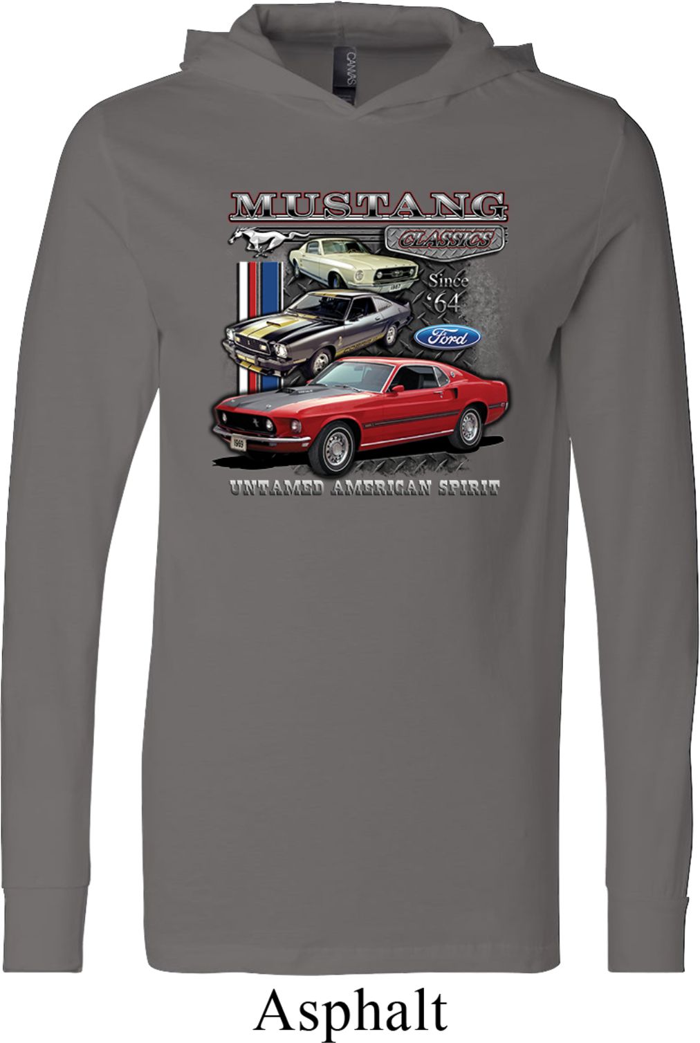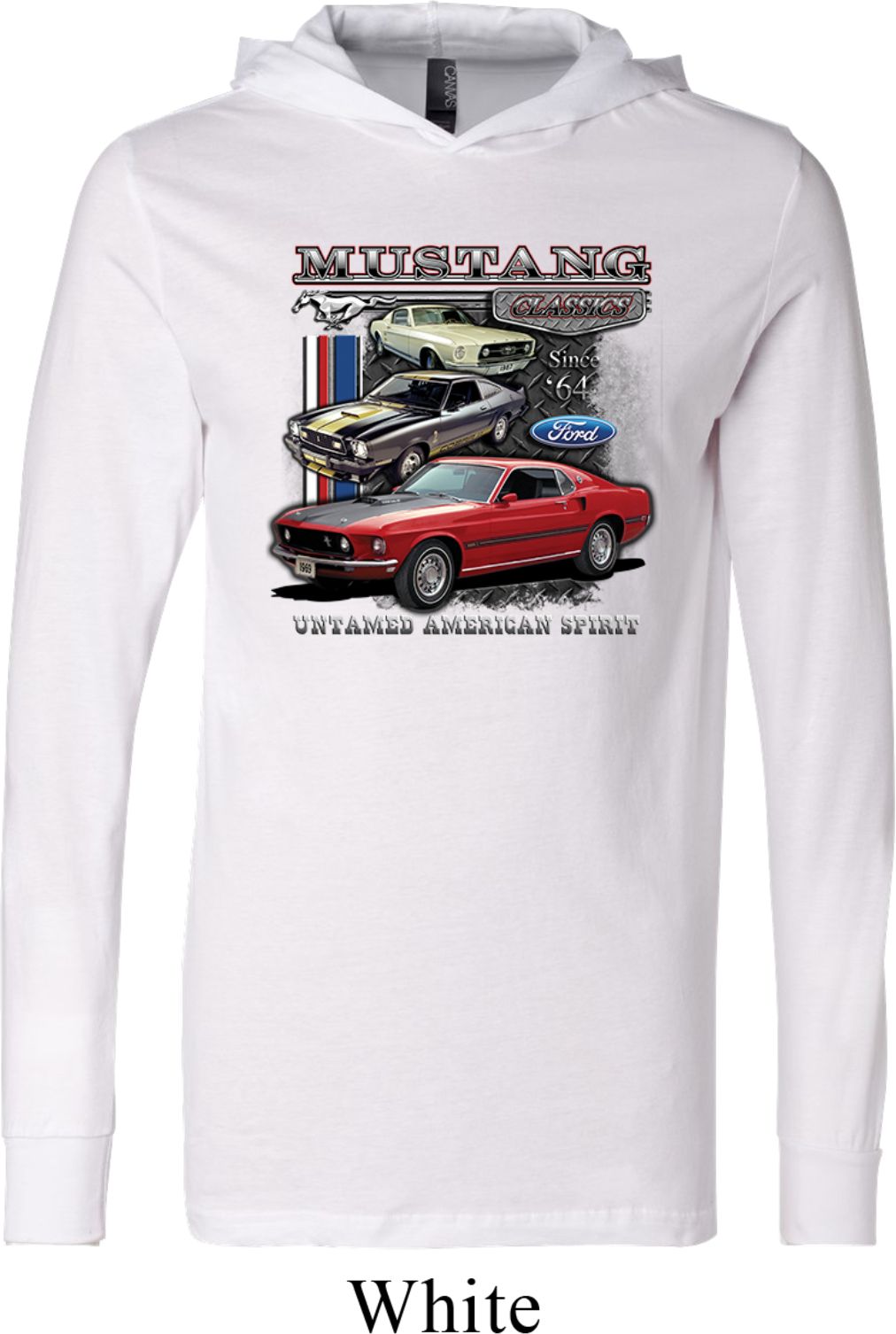 | | Mens Ford Tee Classic Mustangs Untamed Lightweight HoodieA mens lightweight hoodie featuring Ford Mustang Classics since 1964, Untamed American Spirit. Our mens shirt is made of 100% cotton. (Deep Heather, Grey Charcoal, Navy, and Royal are made of cotton/poly; Charcoal is made with a blend of cotton/poly/rayon) Available in sizes Small through 2XL. Machine wash cold with like colors; dry low heat. ![]() |