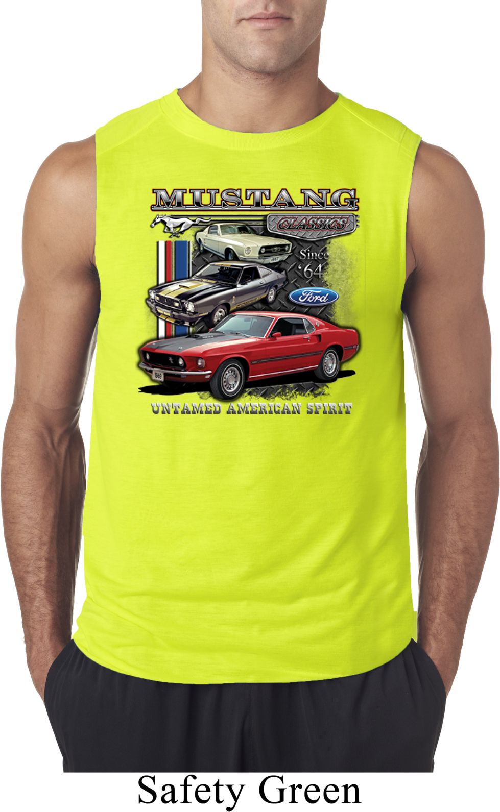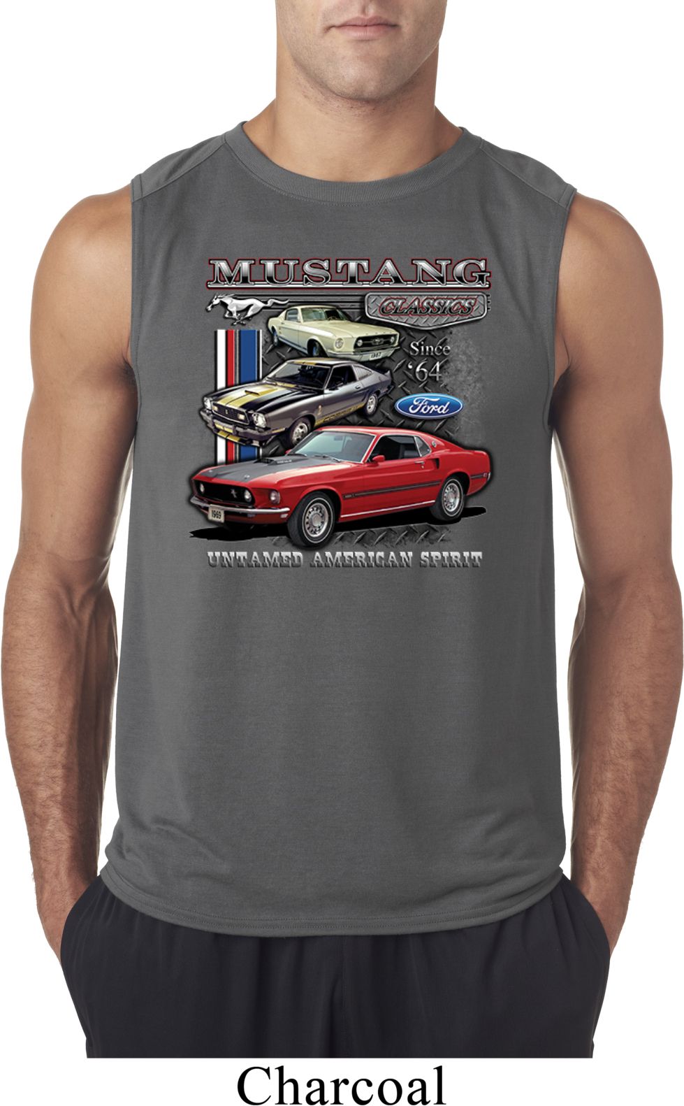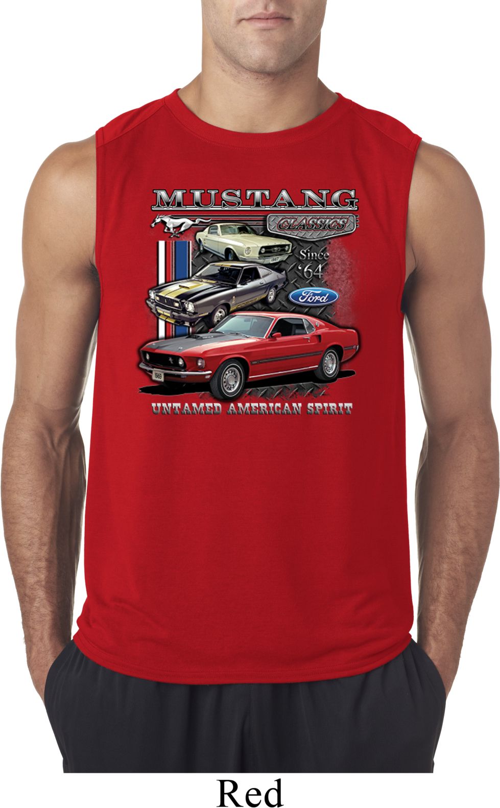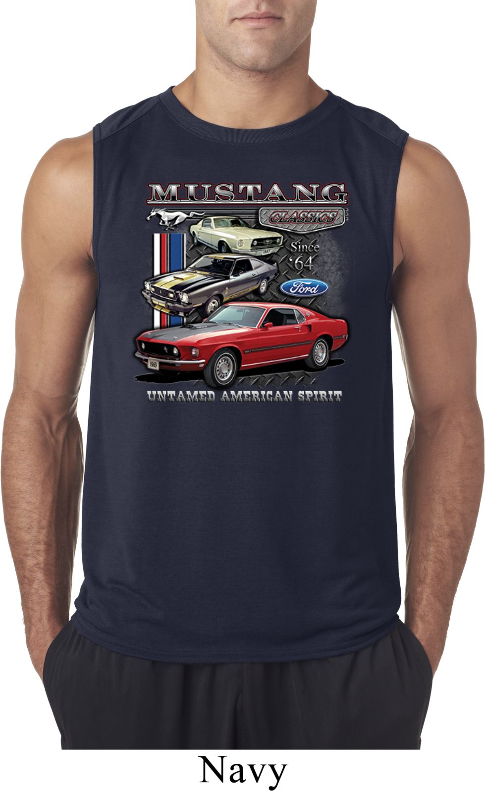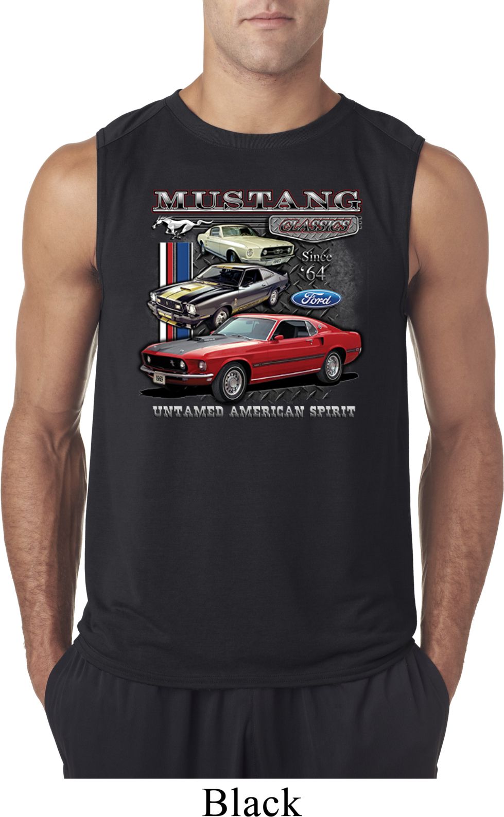 | | Mens Ford Tee Classic Mustangs Untamed Sleeveless ShirtA mens dry wicking sleeveless shirt featuring Ford Mustang Classics since 1964, Untamed American Spirit. Our mens shirt is made of 100% polyester. Available in sizes Small through 2XL. Machine wash cold with like colors; dry low heat. ![]() |