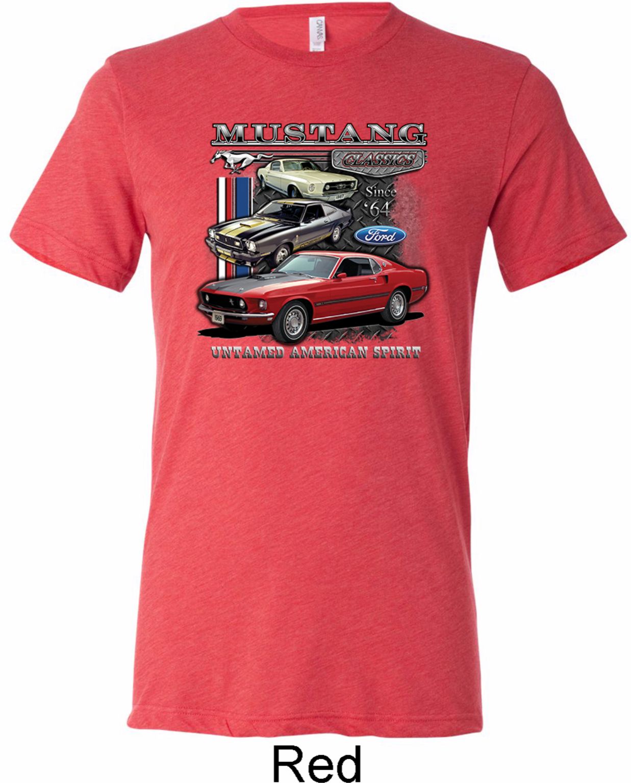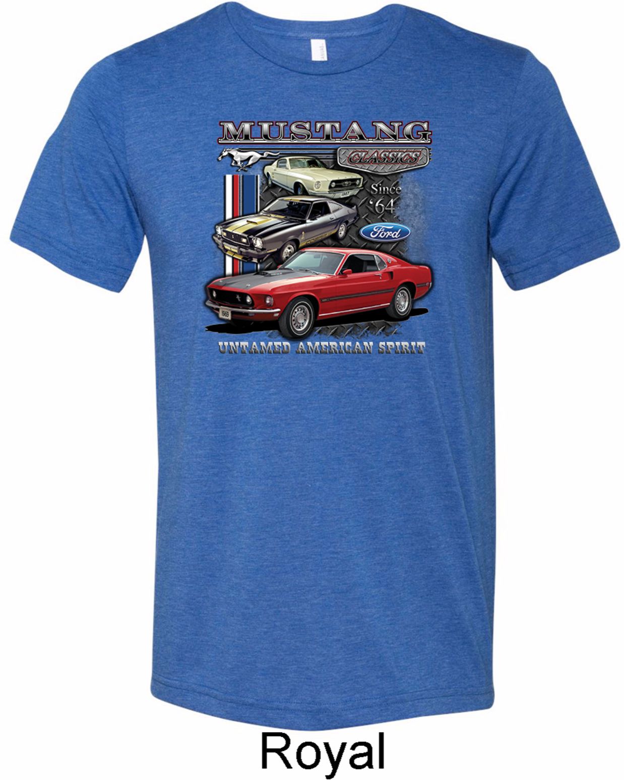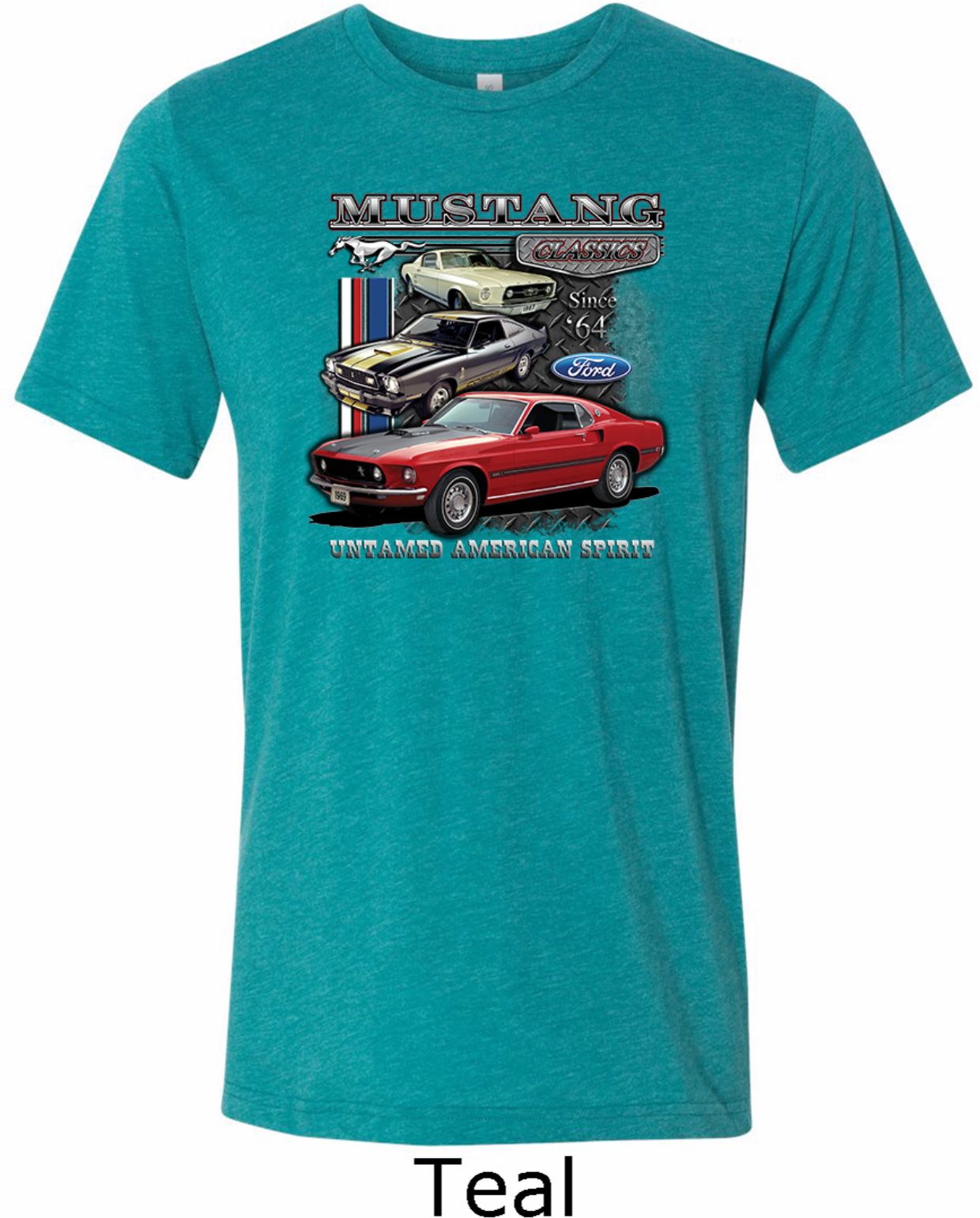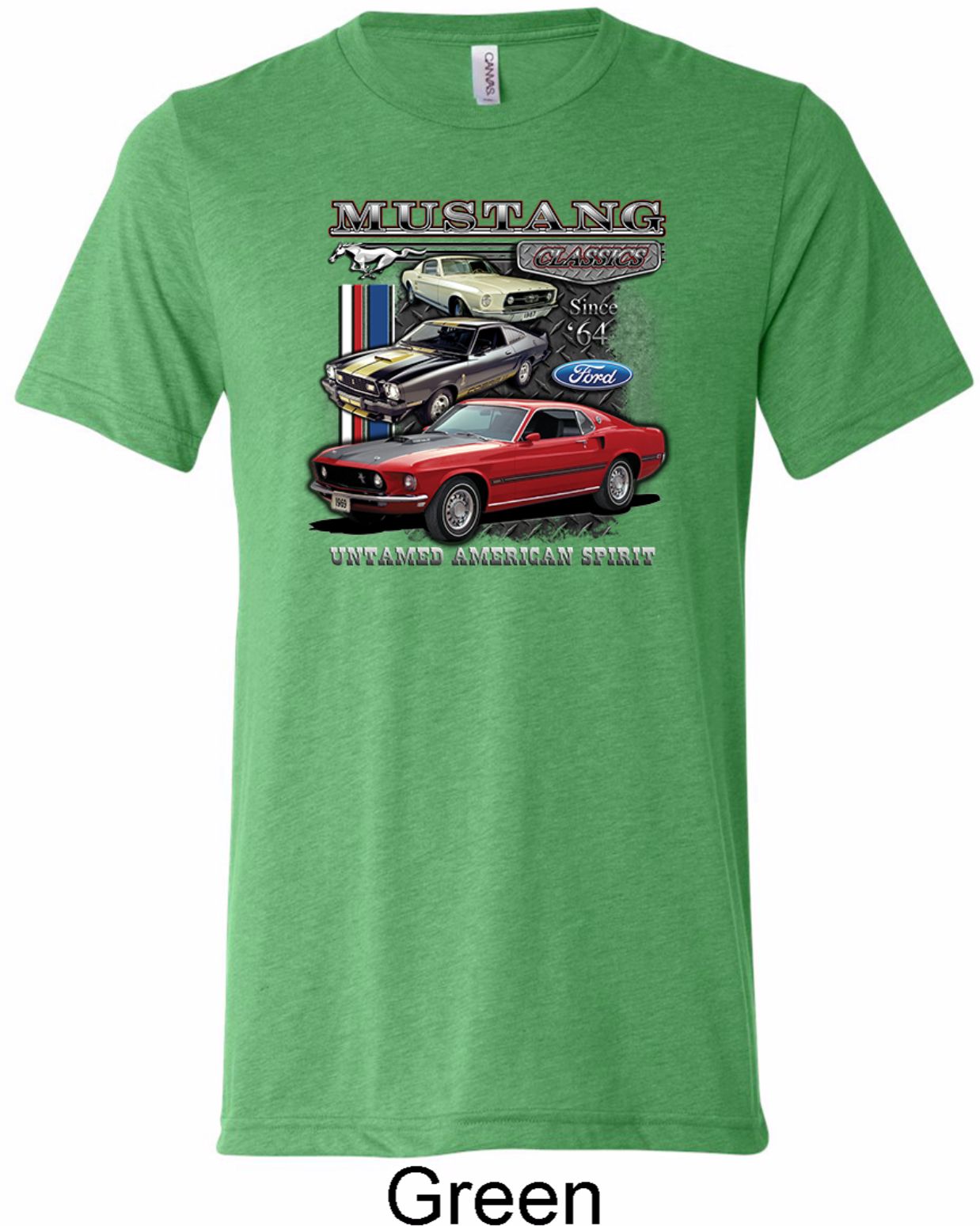 | | Mens Ford Tee Classic Mustangs Untamed Tri Blend TeeA mens tri blend t-shirt featuring Ford Mustang Classics since 1964, Untamed American Spirit. Our mens shirt is made with a blend of poly/cotton/rayon. Available in sizes Small through 3XL. Machine wash cold with like colors; dry low heat. ![]() |