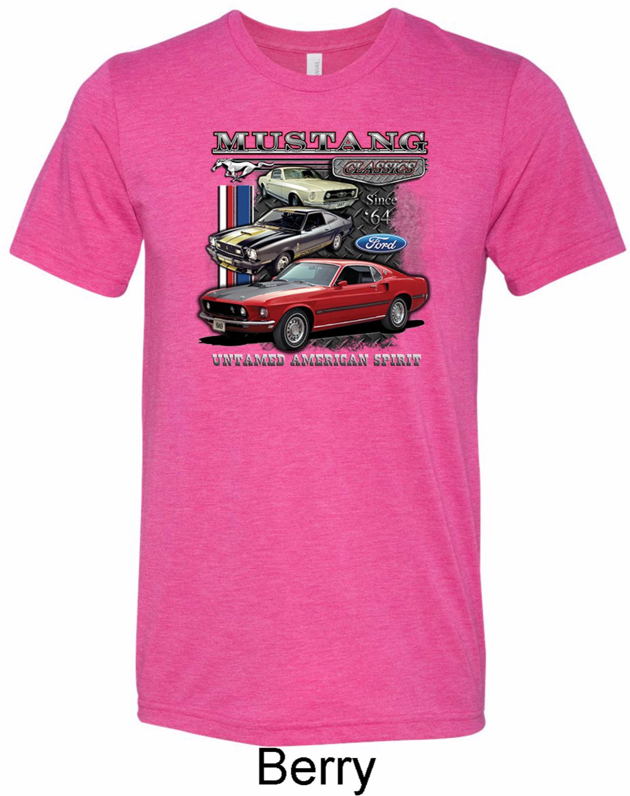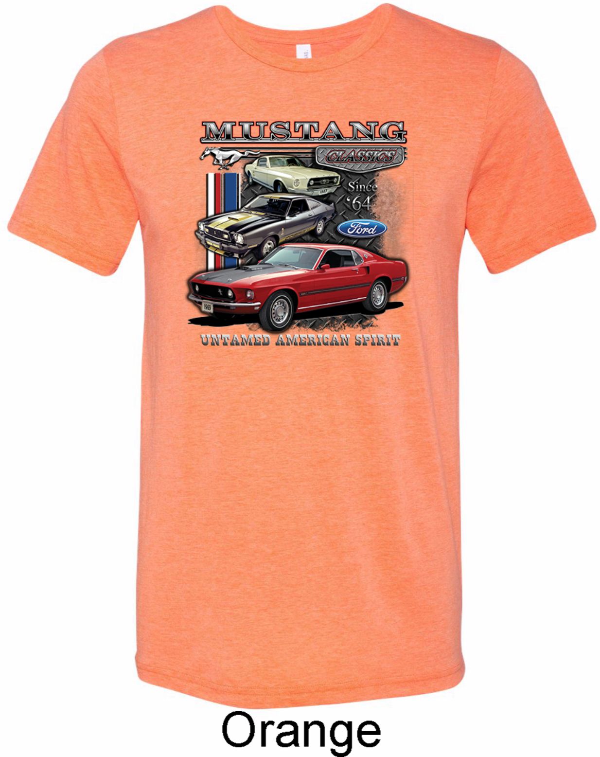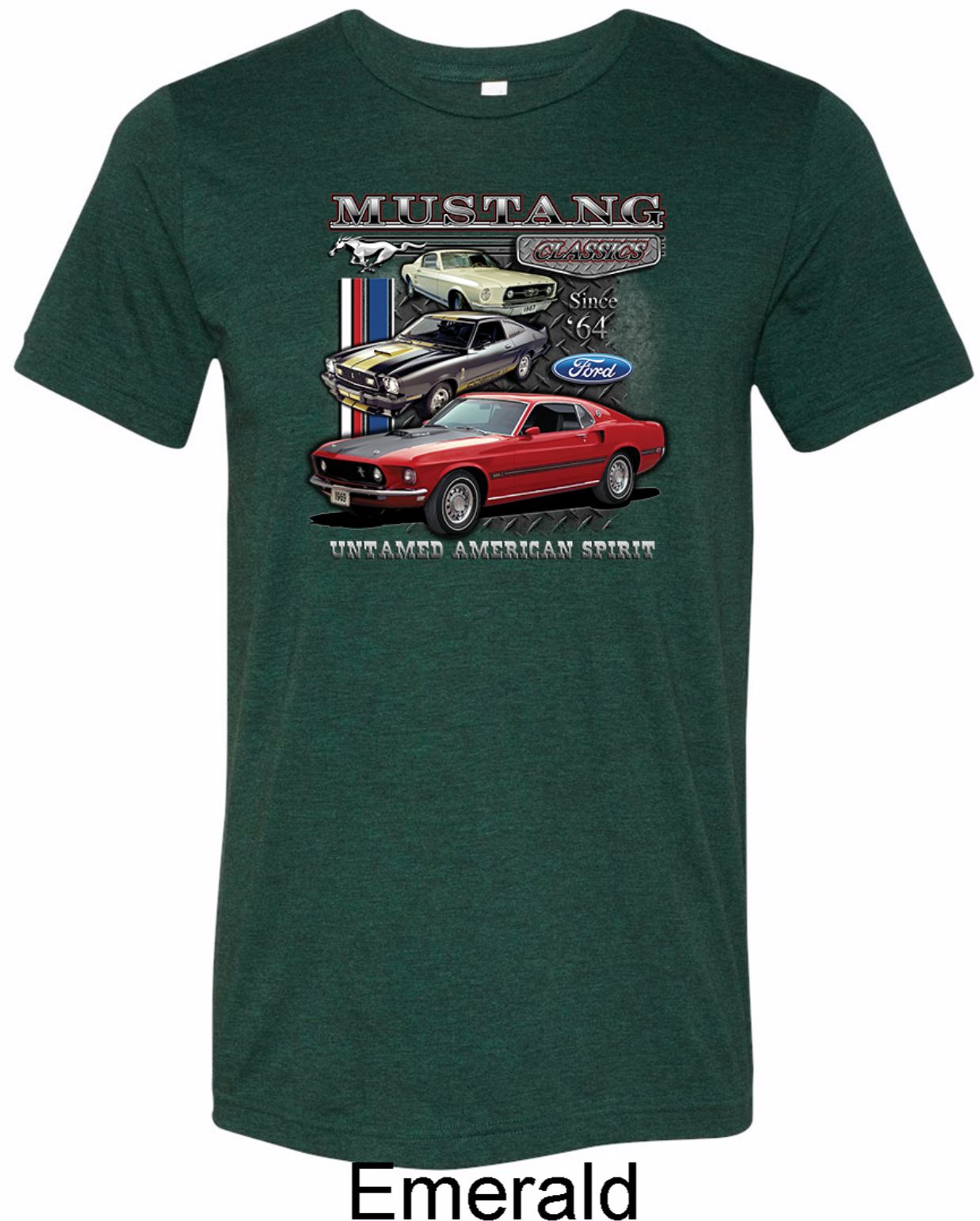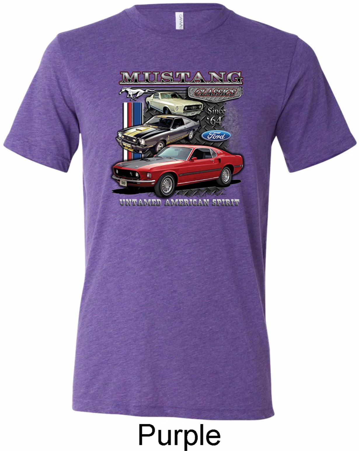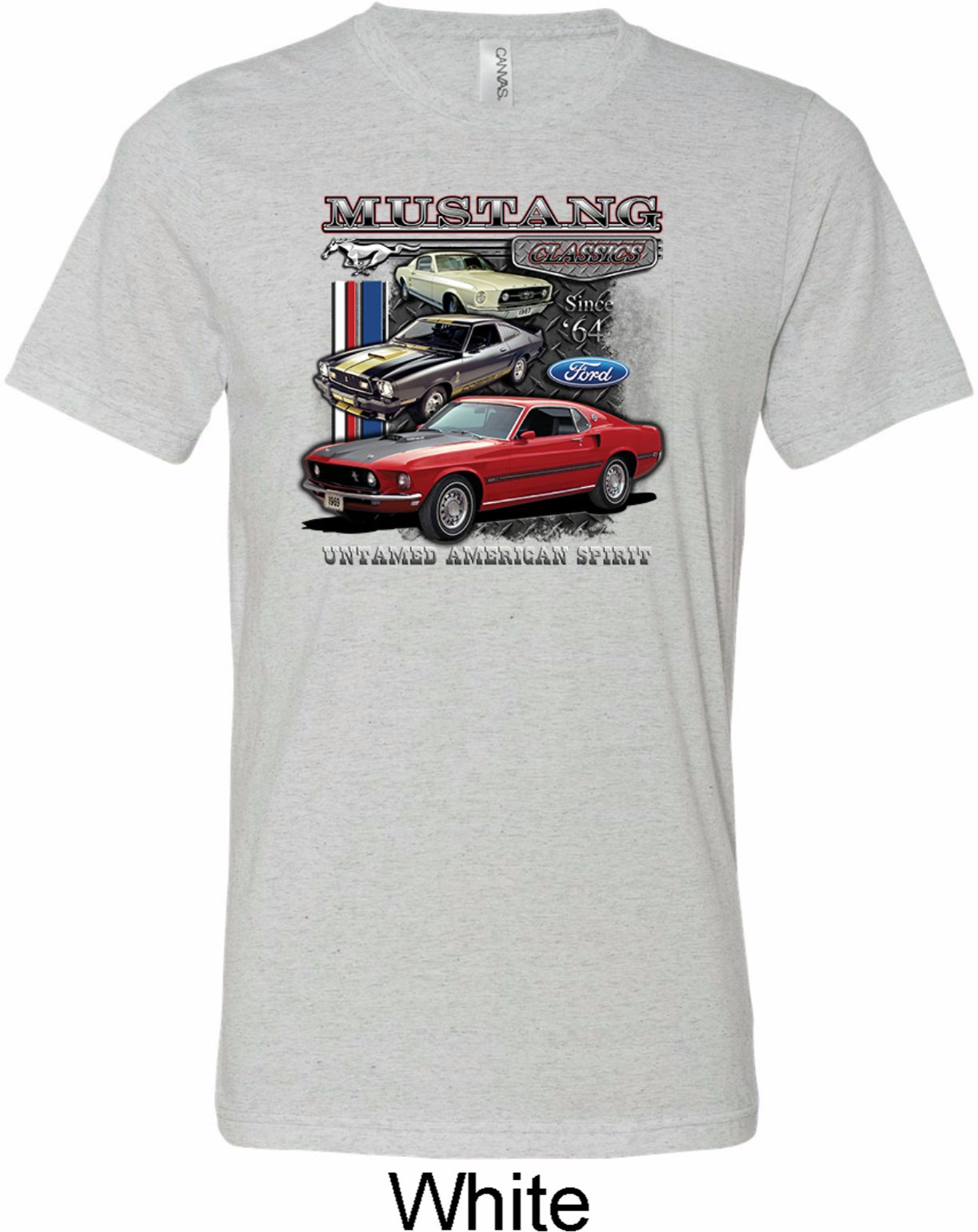 | | Mens Ford Tee Classic Mustangs Untamed Tri Blend TeeA mens tri blend t-shirt featuring Ford Mustang Classics since 1964, Untamed American Spirit. Our mens shirt is made with a blend of poly/cotton/rayon. Available in sizes Small through 3XL. Machine wash cold with like colors; dry low heat. ![]() |