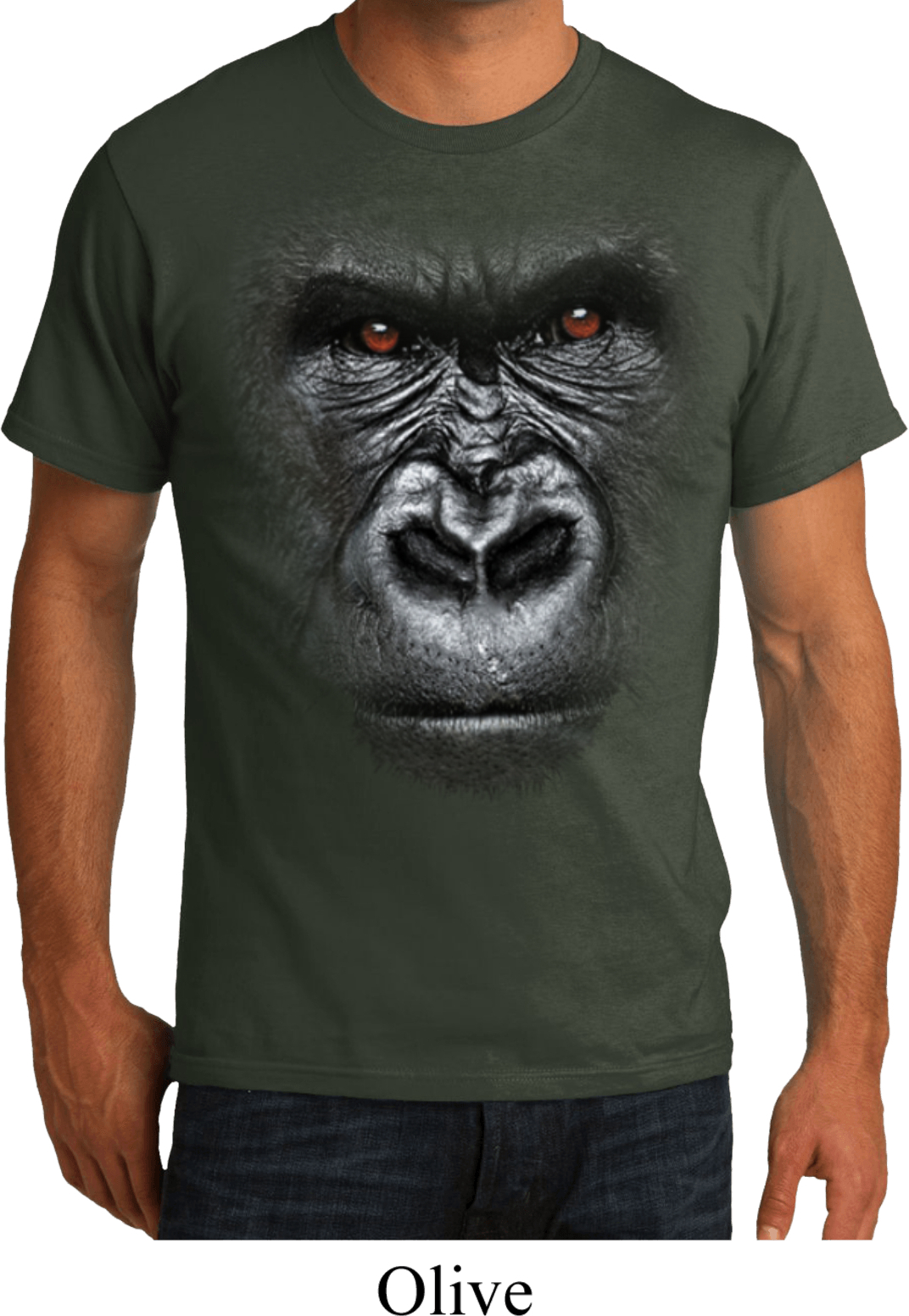 Mens Gorilla Shirt Big Gorilla Face Organic T-Shirt