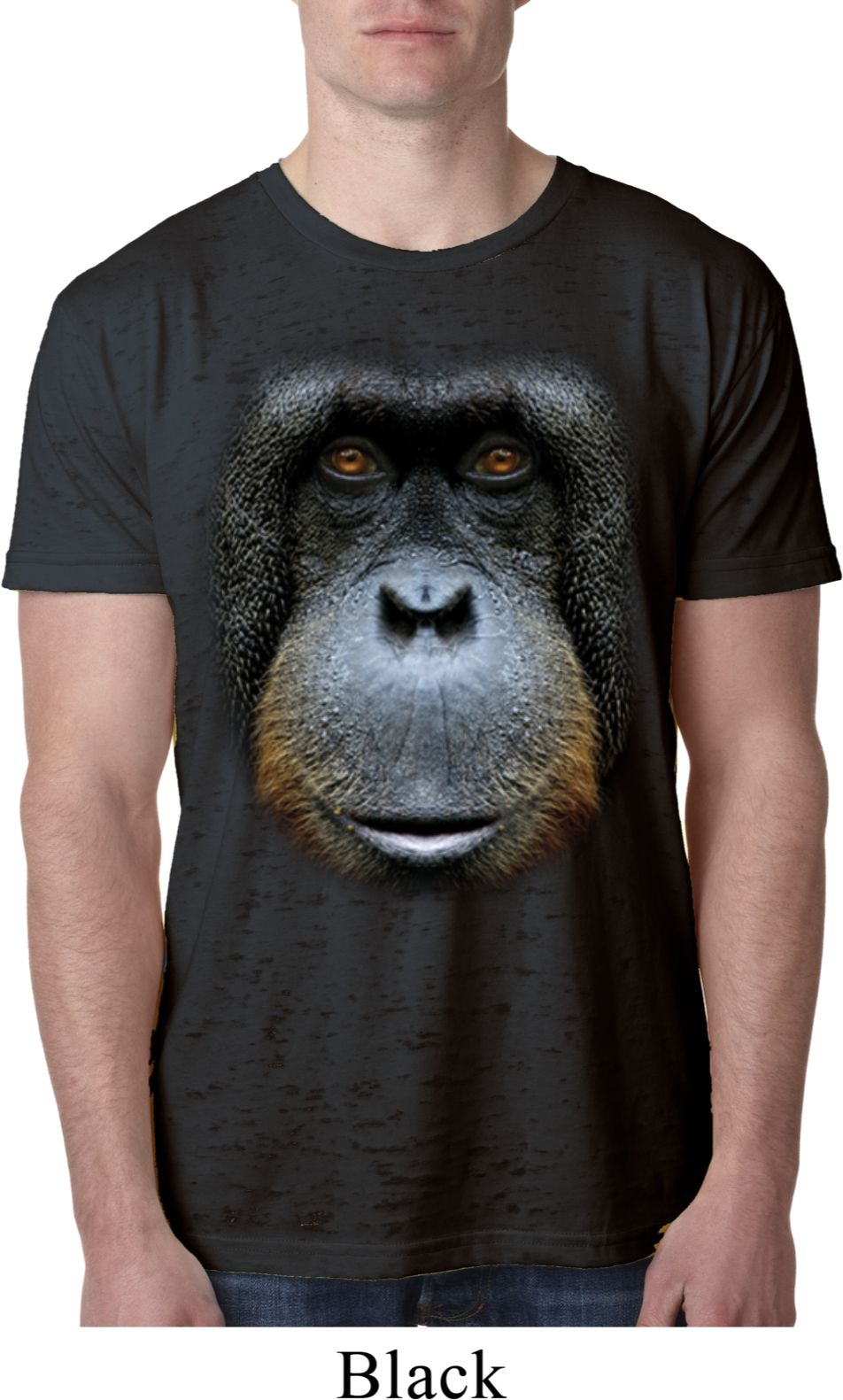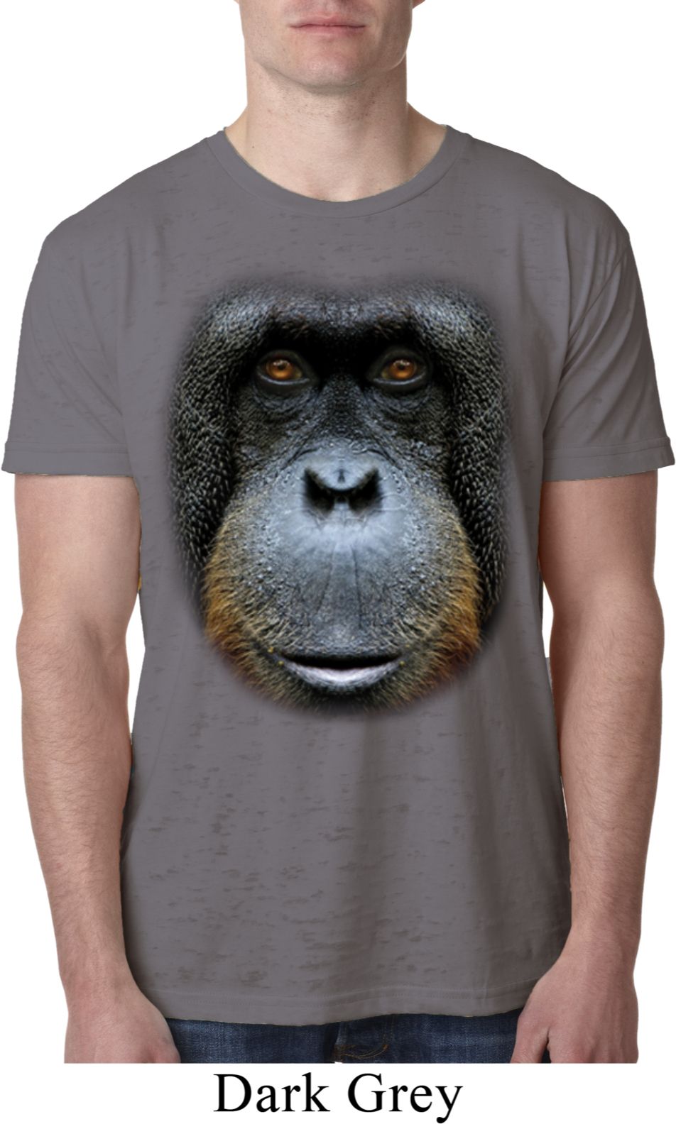 Mens Orangutan Shirt Big Orangutan Face Burnout T-Shirt