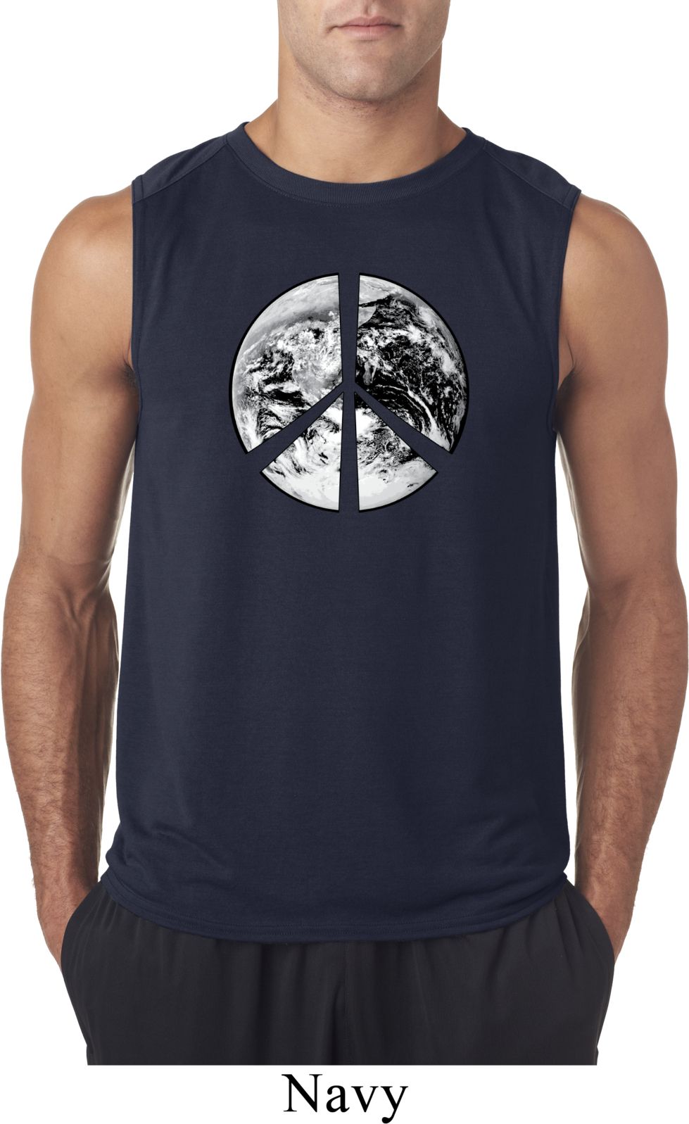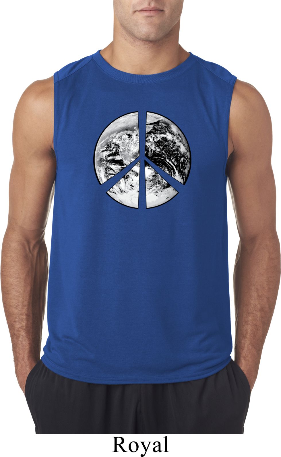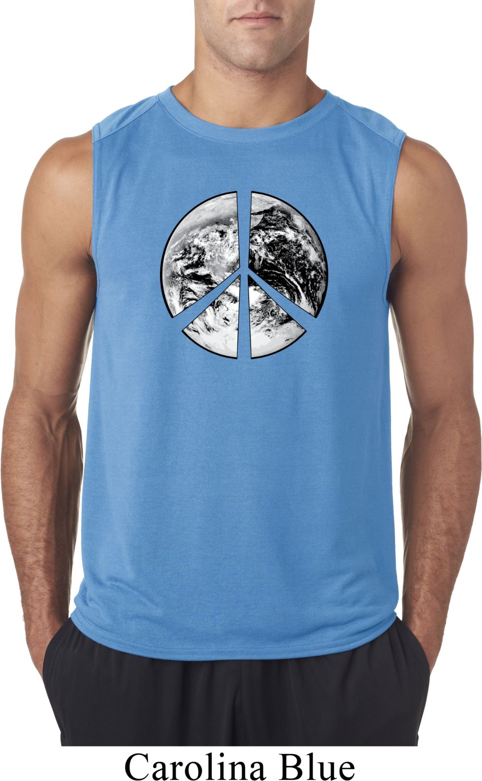 | | Mens Peace Shirt Peace Earth Sleeveless Tee T-ShirtMens Peace Shirt Peace Earth Sleeveless Tee T-Shirt 100% polyester Athletic heather is a cotton/poly blend Available in Small, Medium, Large, XL & 2XL Also available in colors Black, Carolina Blue, Charcoal, Navy, Red, Royal, Safety Green, and White |