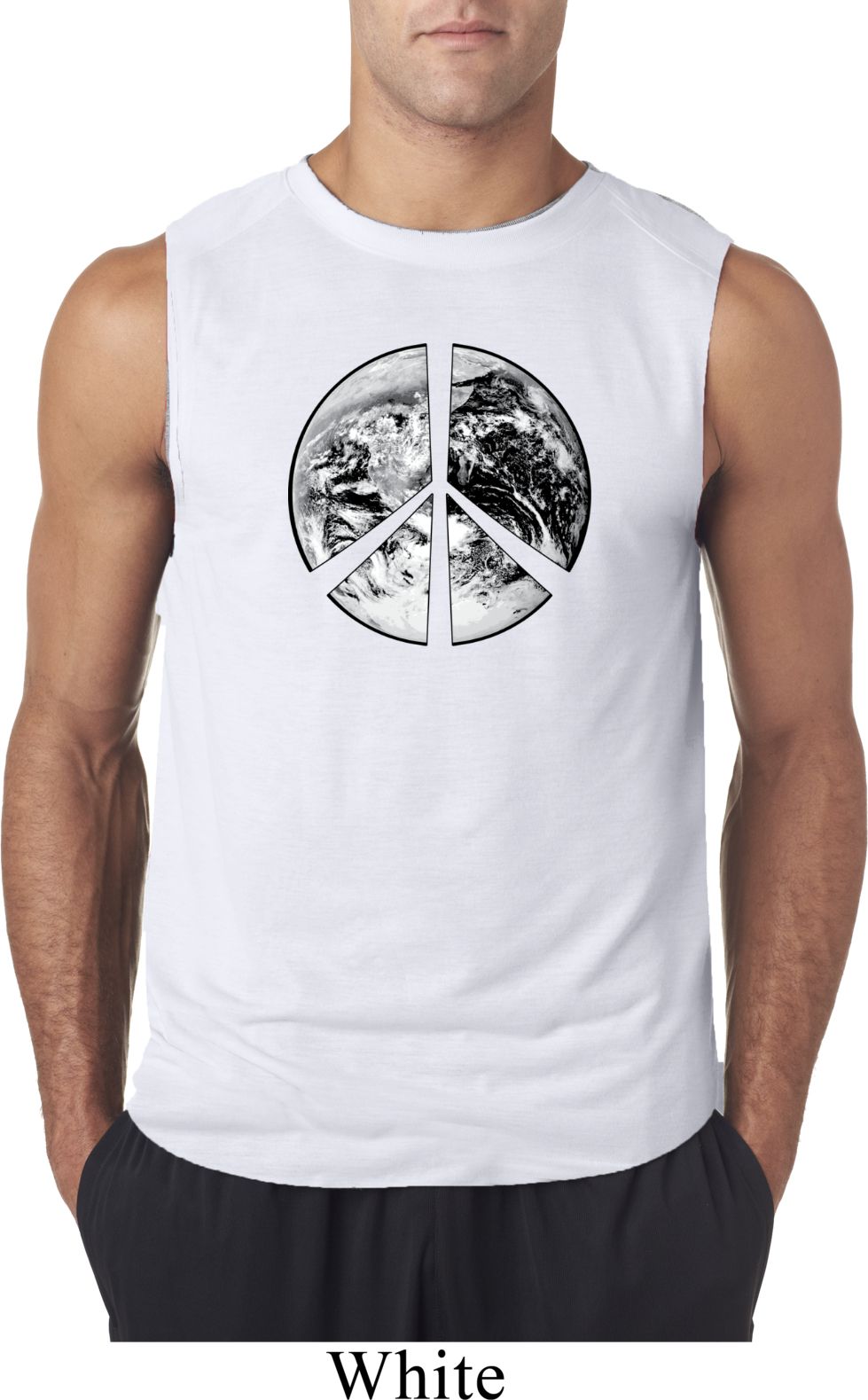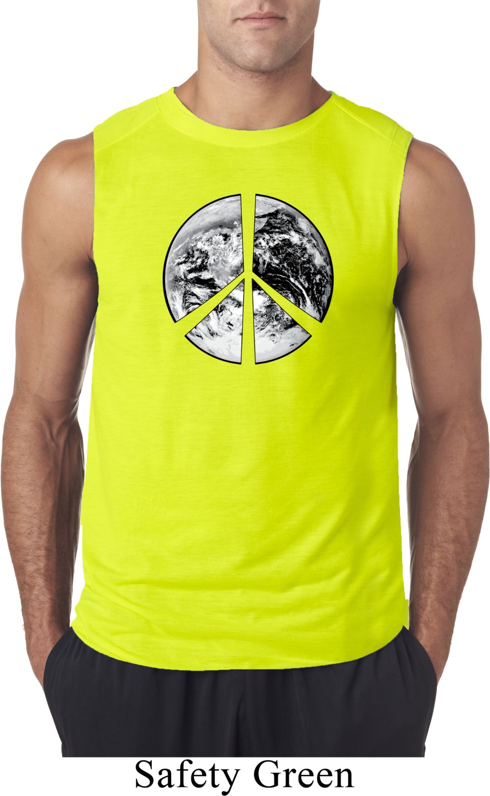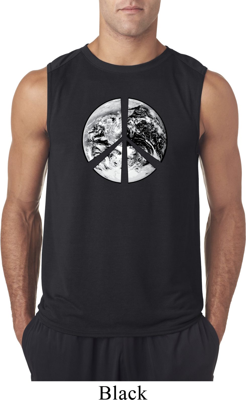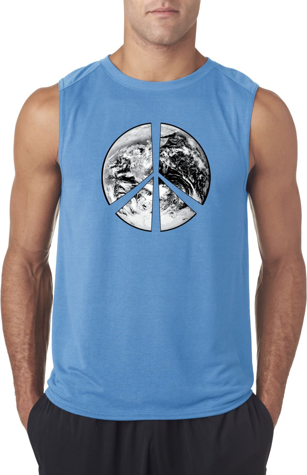 | | Mens Peace Shirt Peace Earth Sleeveless Tee T-ShirtMens Peace Shirt Peace Earth Sleeveless Tee T-Shirt 100% polyester Athletic heather is a cotton/poly blend Available in Small, Medium, Large, XL & 2XL Also available in colors Black, Carolina Blue, Charcoal, Navy, Red, Royal, Safety Green, and White |