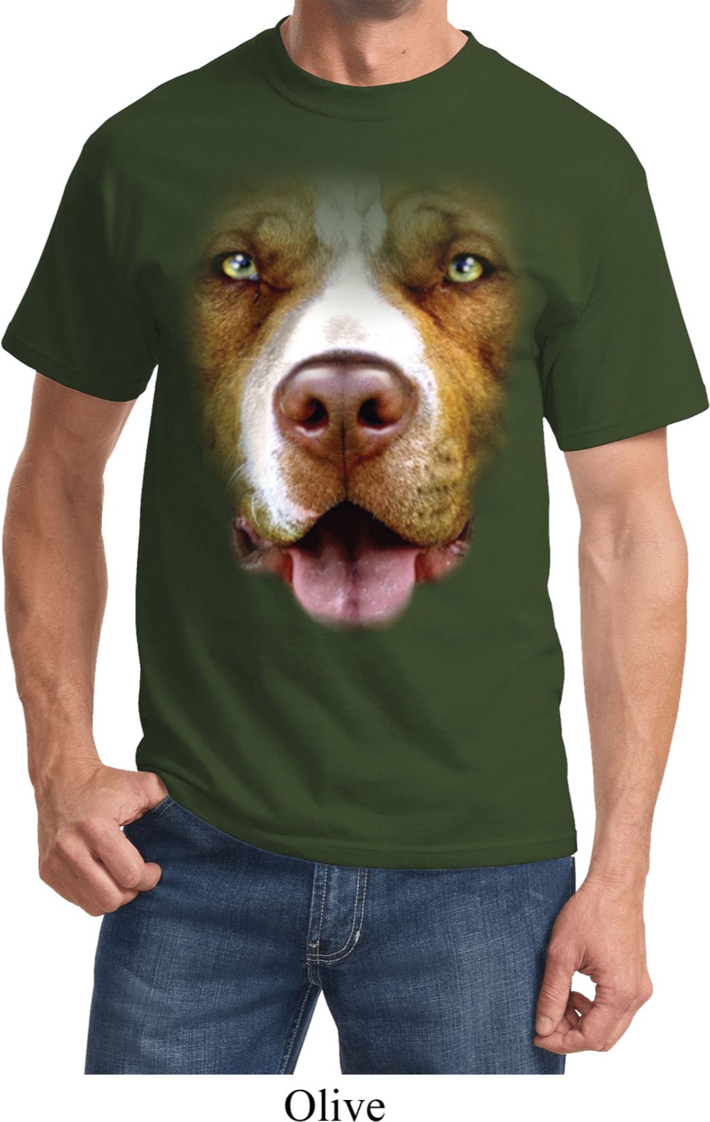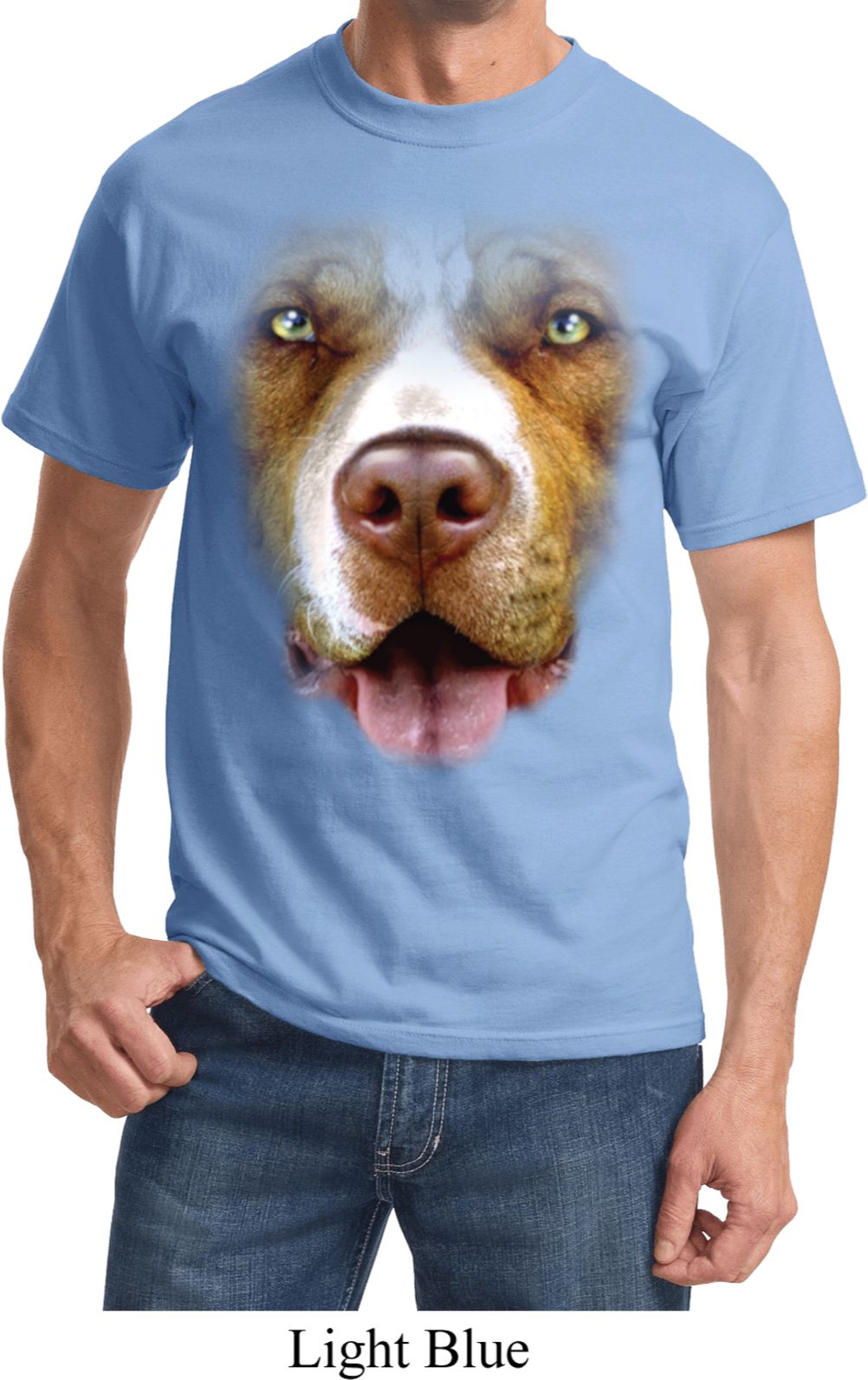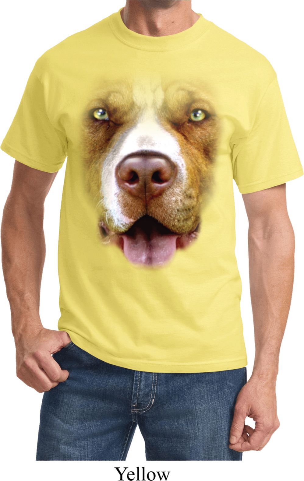 | | Mens Pit Bull Shirt Big Pit Bull Face Tee T-ShirtMens Pit Bull Shirt Big Pit Bull Face Tee T-Shirt 100% cotton Ash is a cotton/poly blend Available in Small, Medium, Large, XL, 2XL, 3XL, 4XL, 5XL & 6XL Also available in colors Ash, Black, Brown, Charcoal, Gold, Kelly, Light Blue, Natural, Navy, Olive, Orange, Pale Pink, Purple, Red, Royal, Sangria, White, and Yellow ![]() |