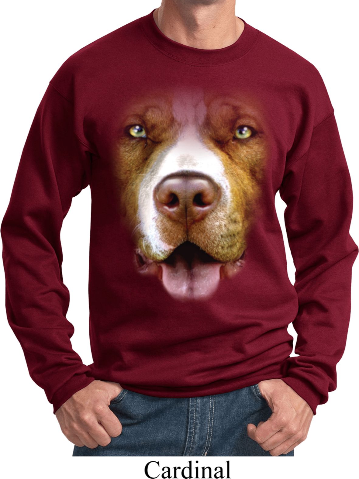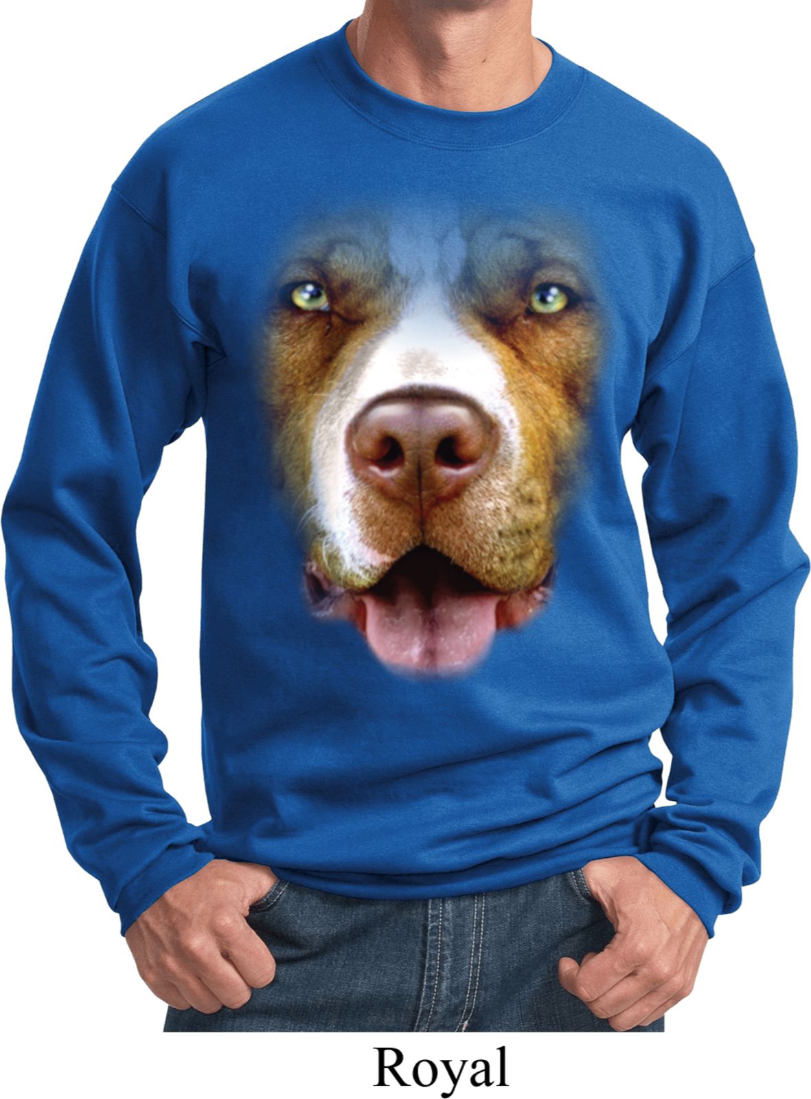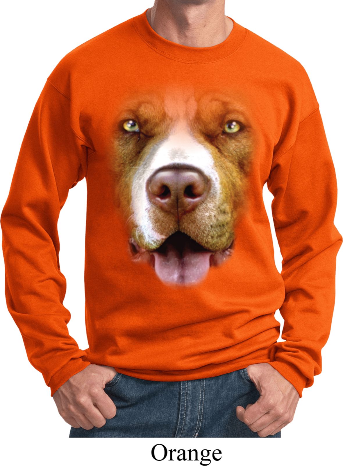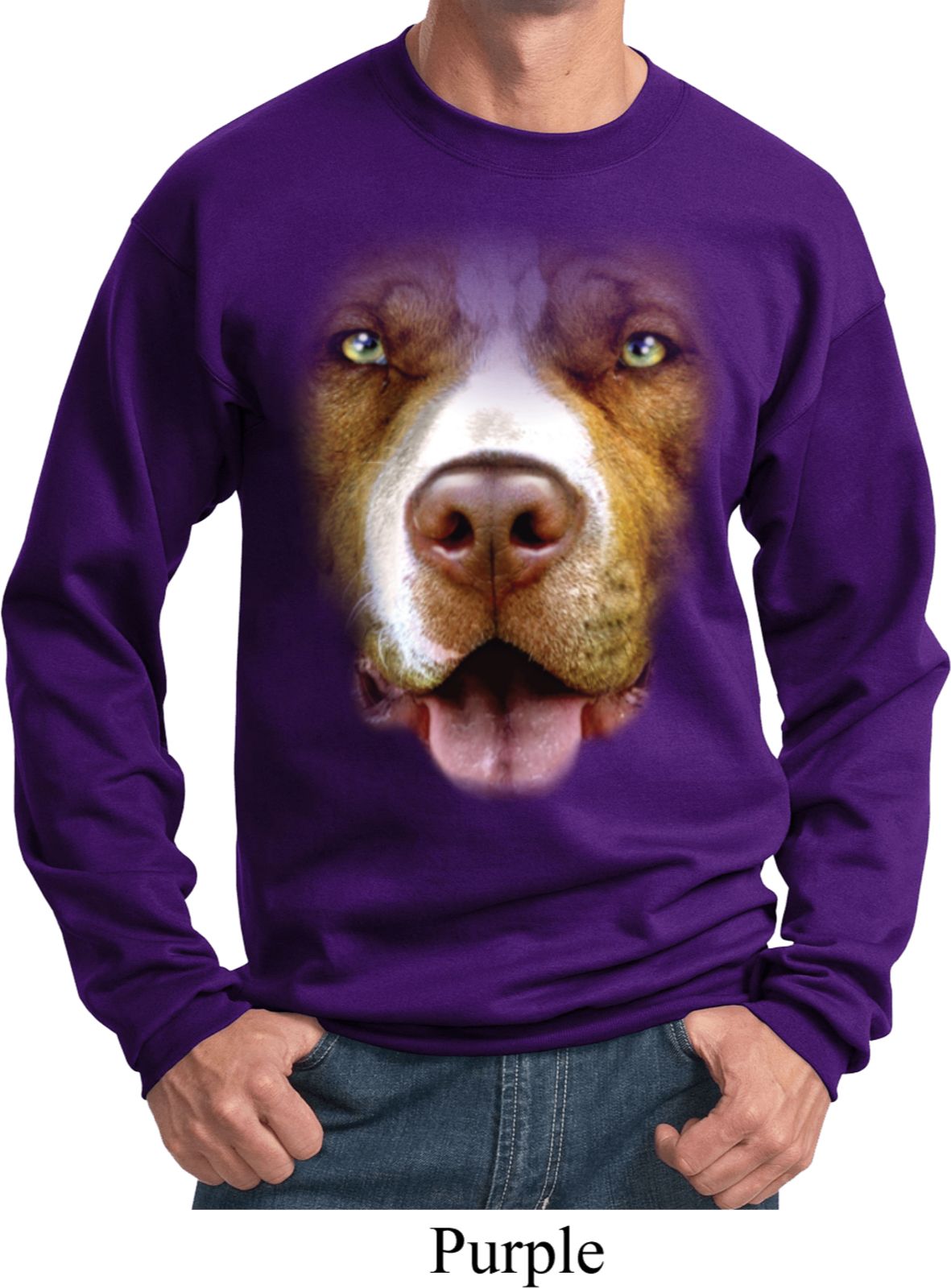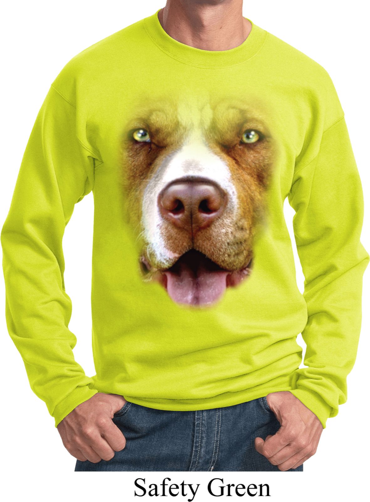 | | Mens Pit Bull Sweatshirt Big Pit Bull Face Sweat ShirtMens Pit Bull Sweatshirt Big Pit Bull Face Sweat Shirt A cotton/poly blend Available in Small, Medium, Large, XL, 2XL, 3XL & 4XL Also available in colors Ash, Athletic Heather, Black, Cardinal, Chocolate, Dark Green, Gold, Kelly, Maroon, Navy, Orange, Pale Pink, Purple, Red, Royal, Safety Green, and White ![]() |