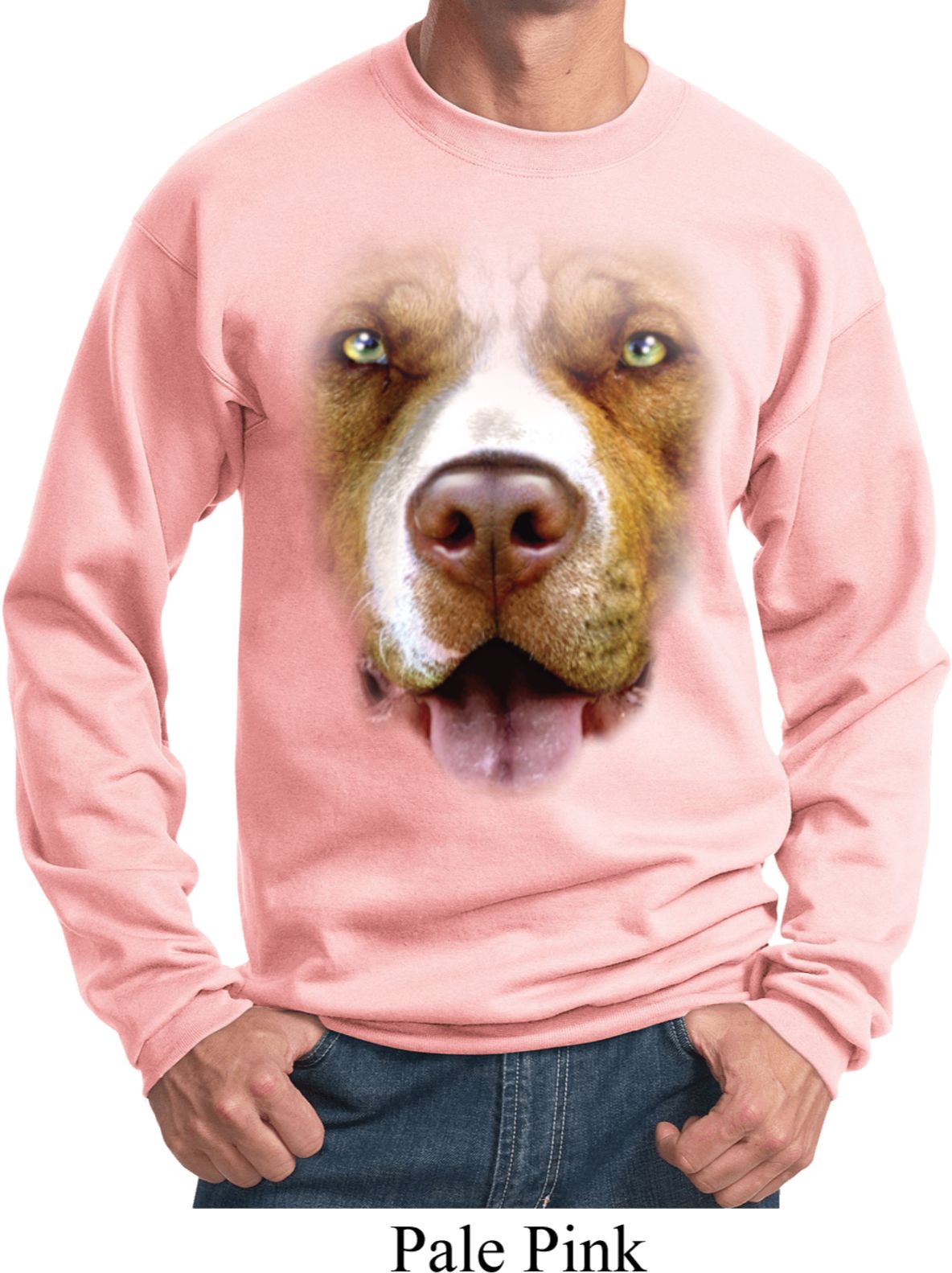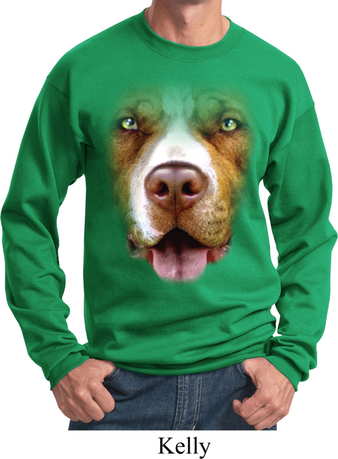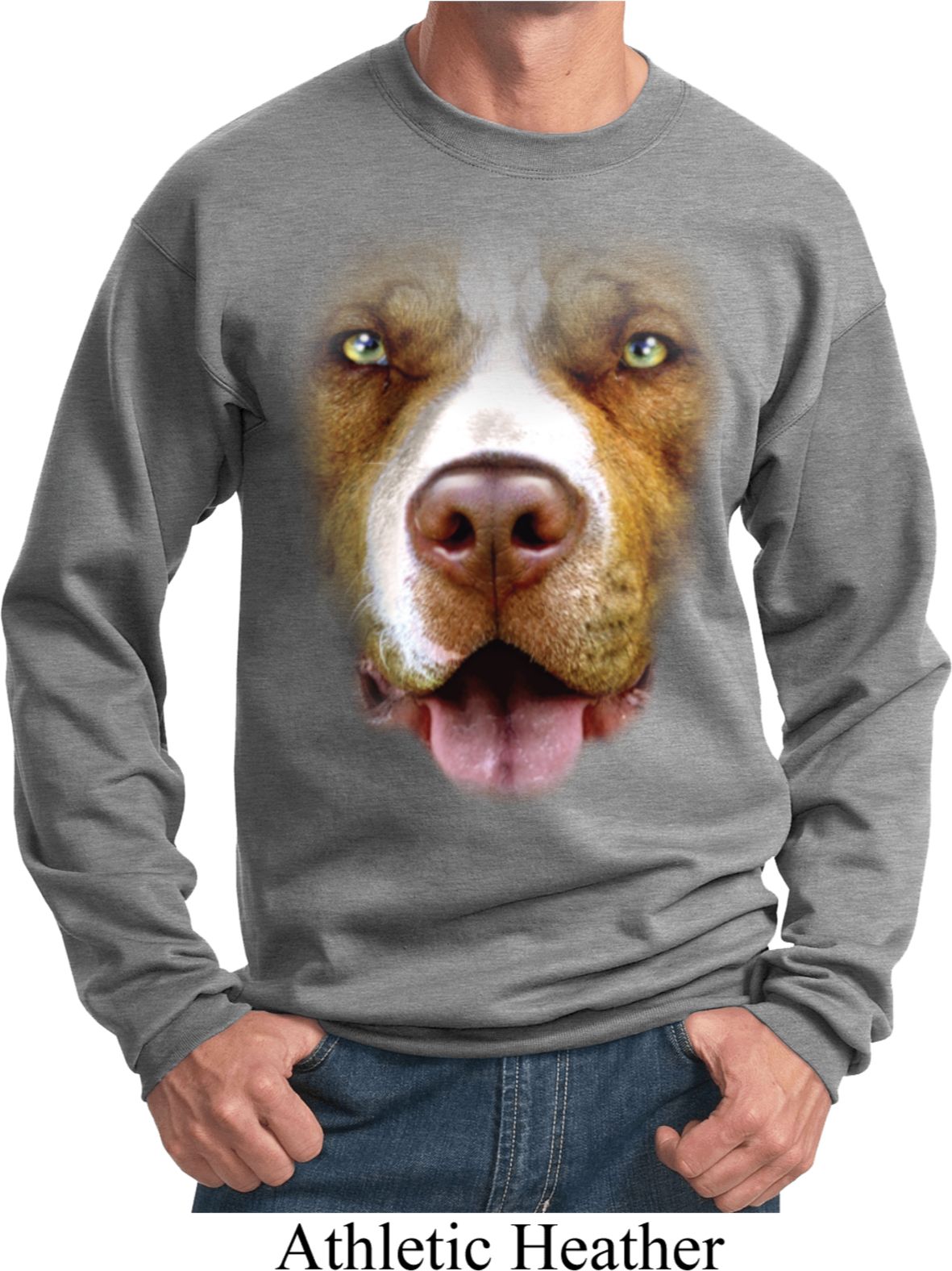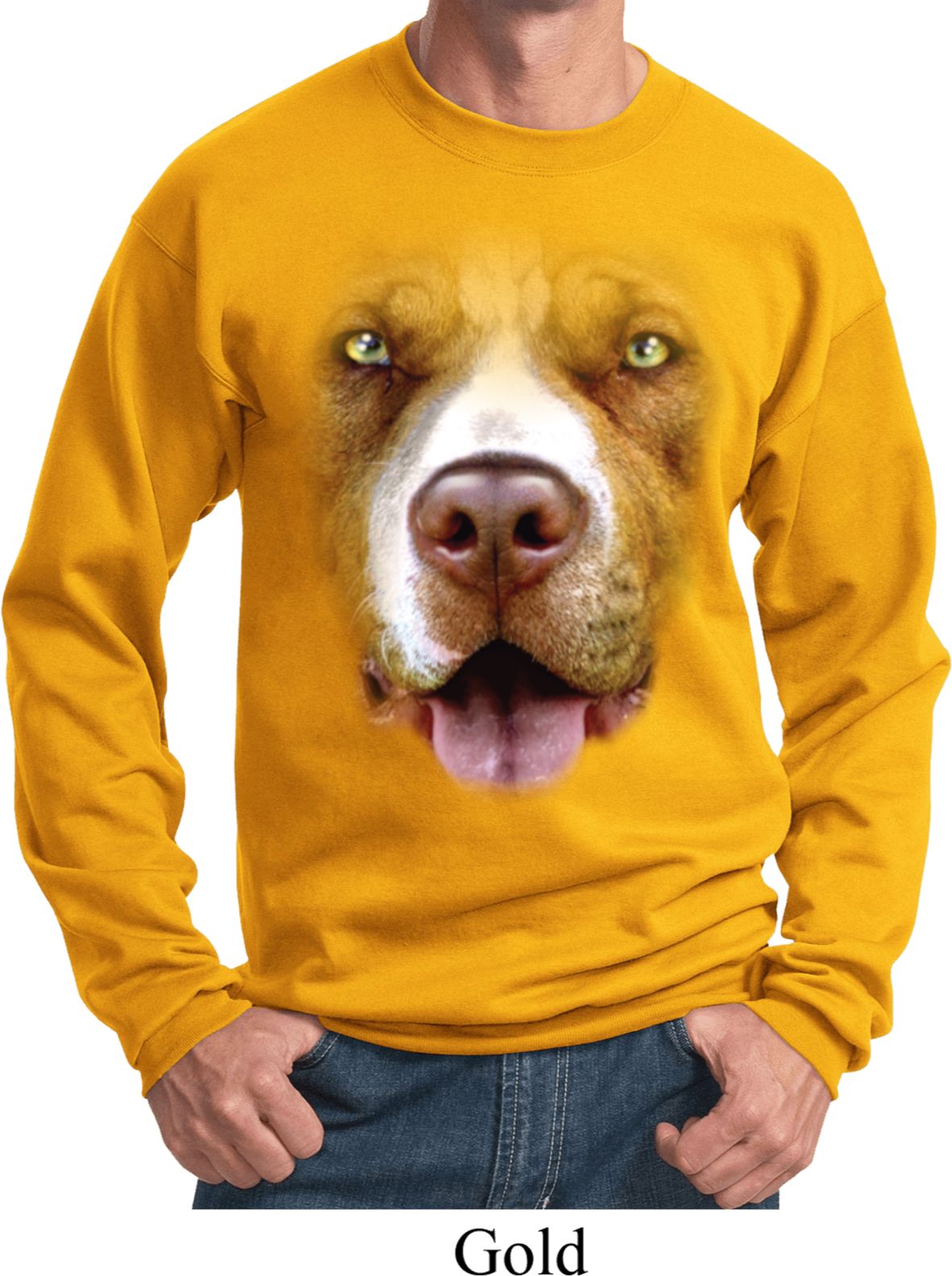 | | Mens Pit Bull Sweatshirt Big Pit Bull Face Sweat ShirtMens Pit Bull Sweatshirt Big Pit Bull Face Sweat Shirt A cotton/poly blend Available in Small, Medium, Large, XL, 2XL, 3XL & 4XL Also available in colors Ash, Athletic Heather, Black, Cardinal, Chocolate, Dark Green, Gold, Kelly, Maroon, Navy, Orange, Pale Pink, Purple, Red, Royal, Safety Green, and White ![]() |