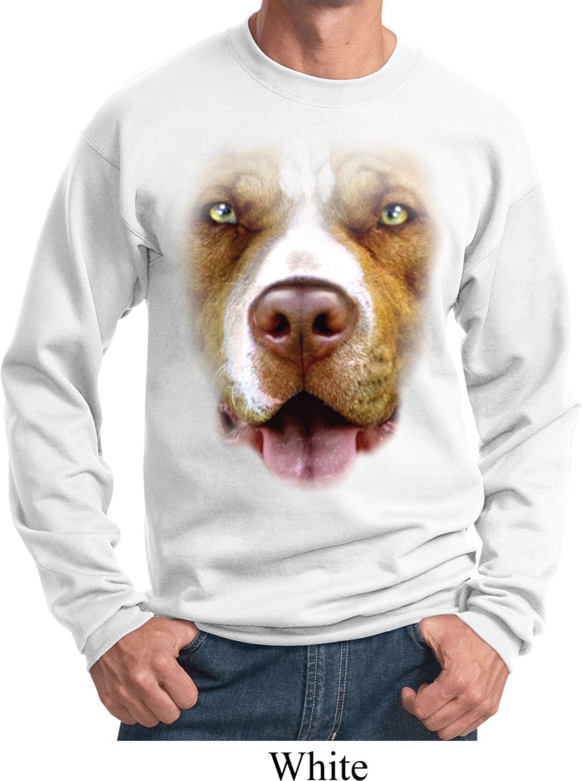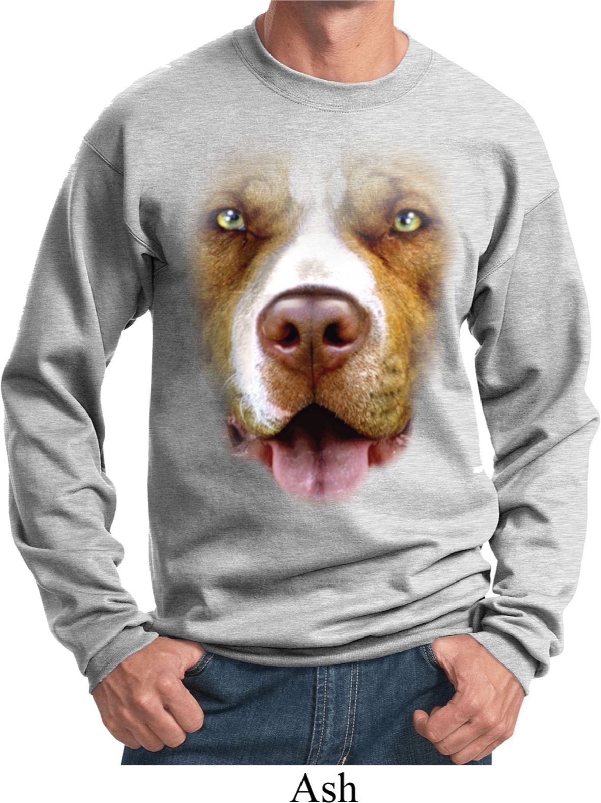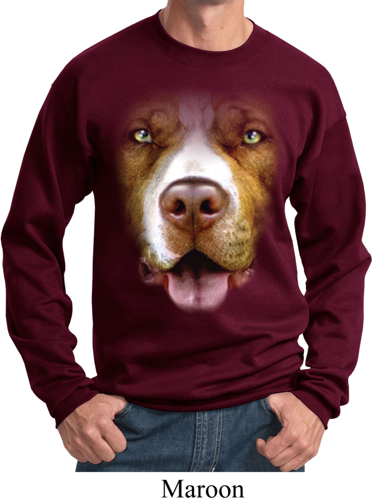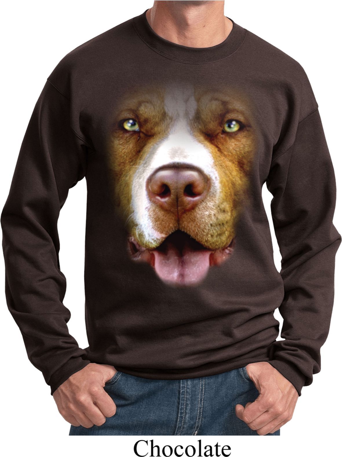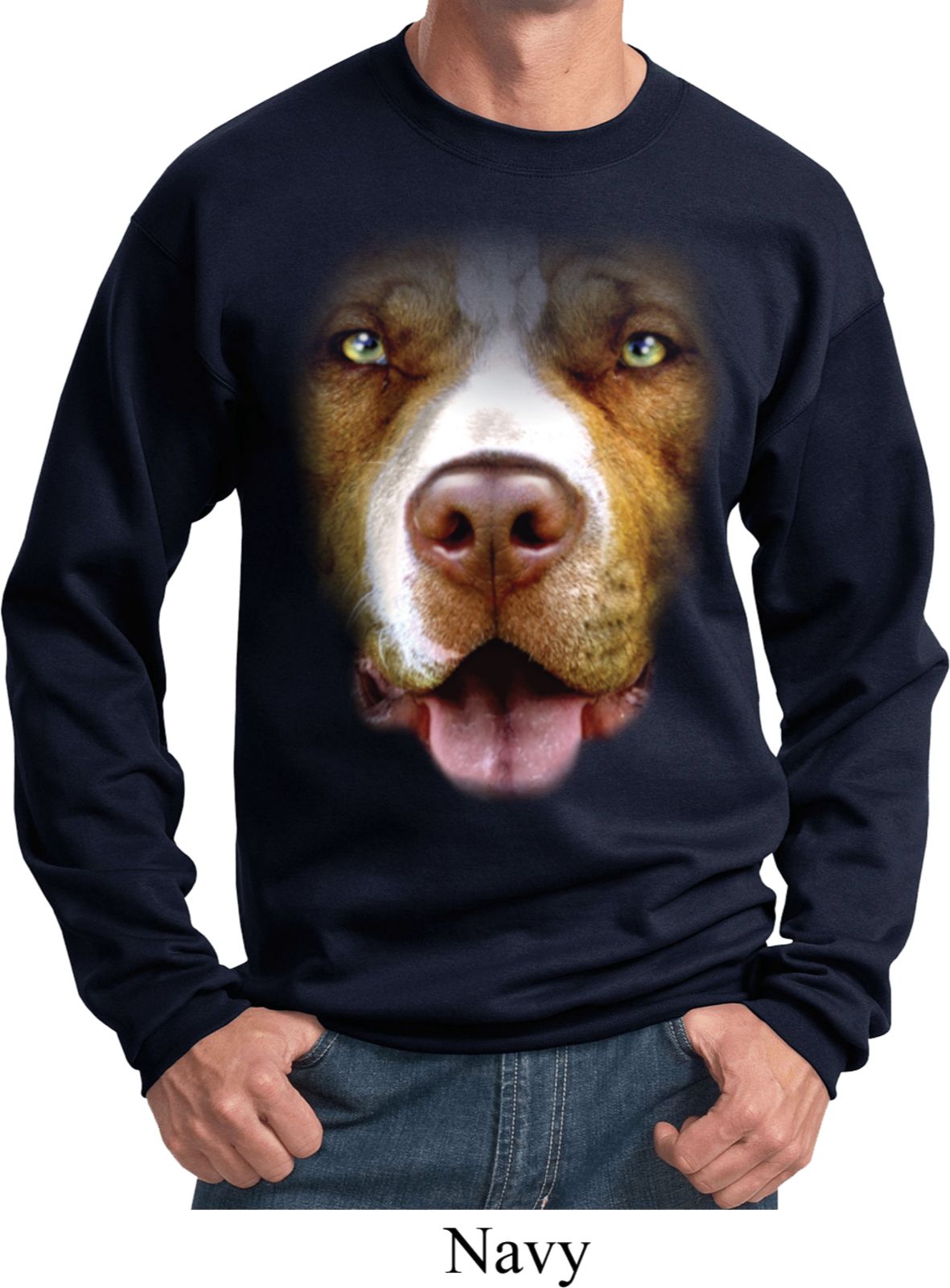 | | Mens Pit Bull Sweatshirt Big Pit Bull Face Sweat ShirtMens Pit Bull Sweatshirt Big Pit Bull Face Sweat Shirt A cotton/poly blend Available in Small, Medium, Large, XL, 2XL, 3XL & 4XL Also available in colors Ash, Athletic Heather, Black, Cardinal, Chocolate, Dark Green, Gold, Kelly, Maroon, Navy, Orange, Pale Pink, Purple, Red, Royal, Safety Green, and White ![]() |