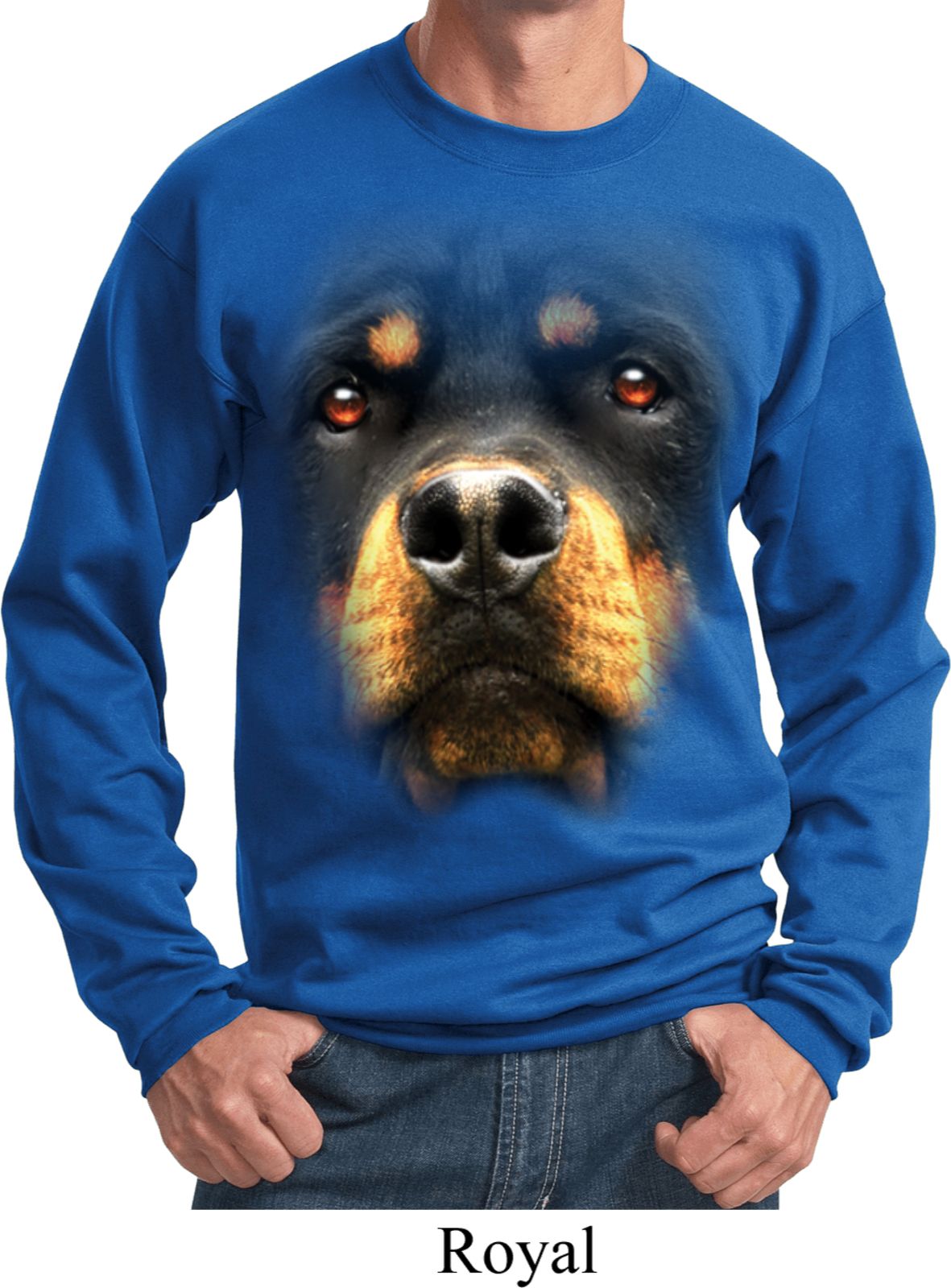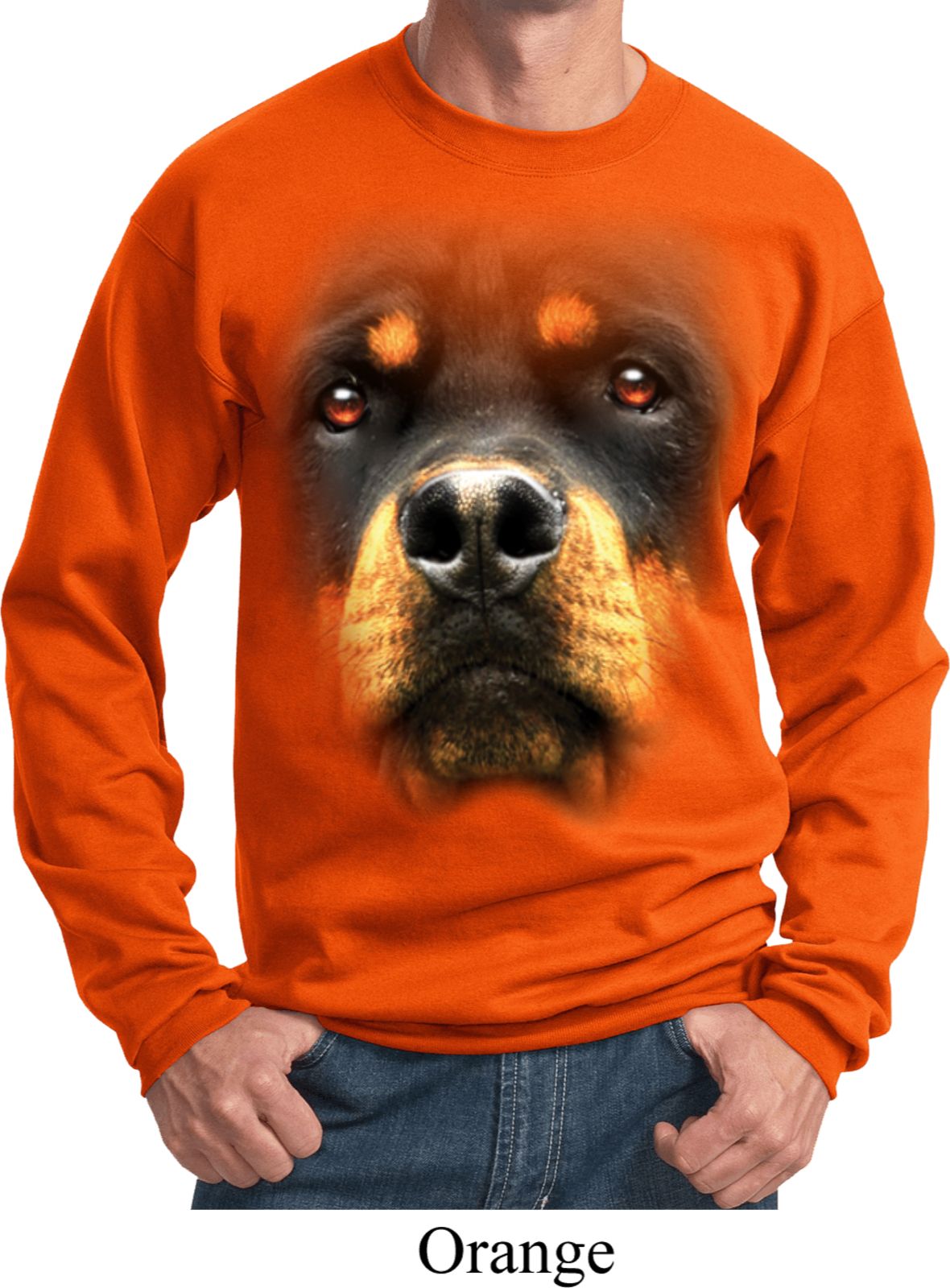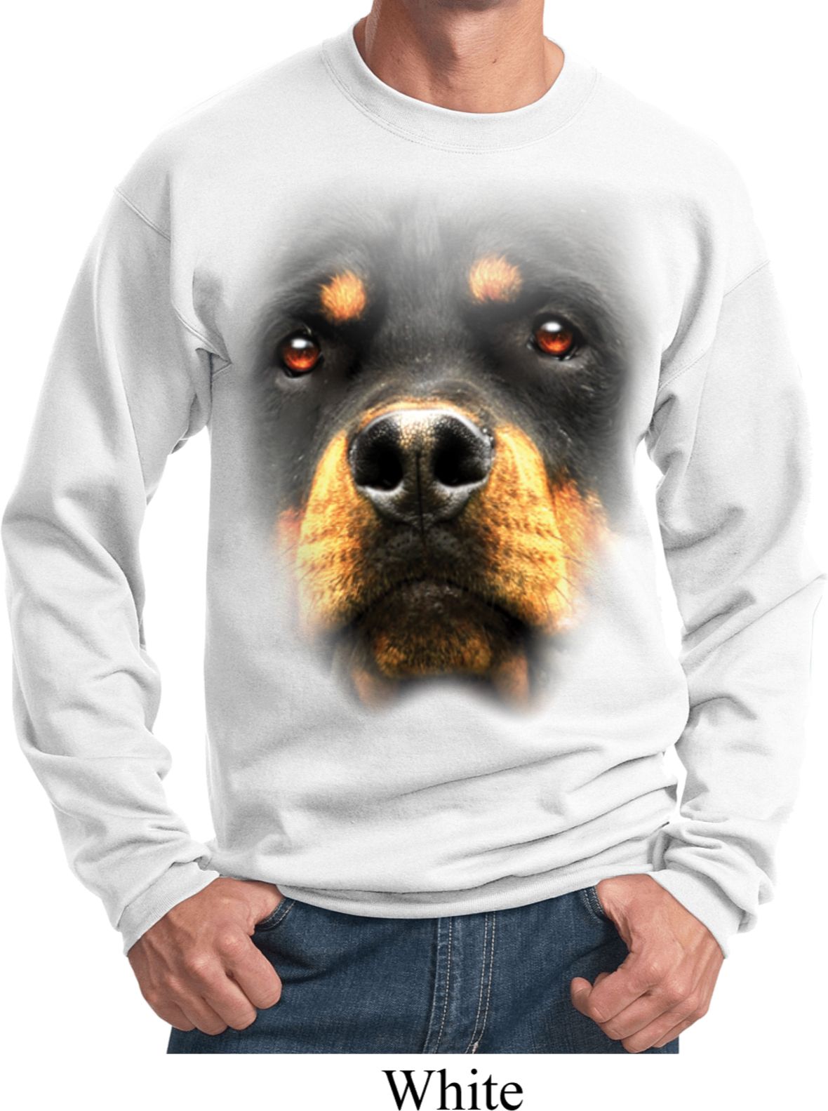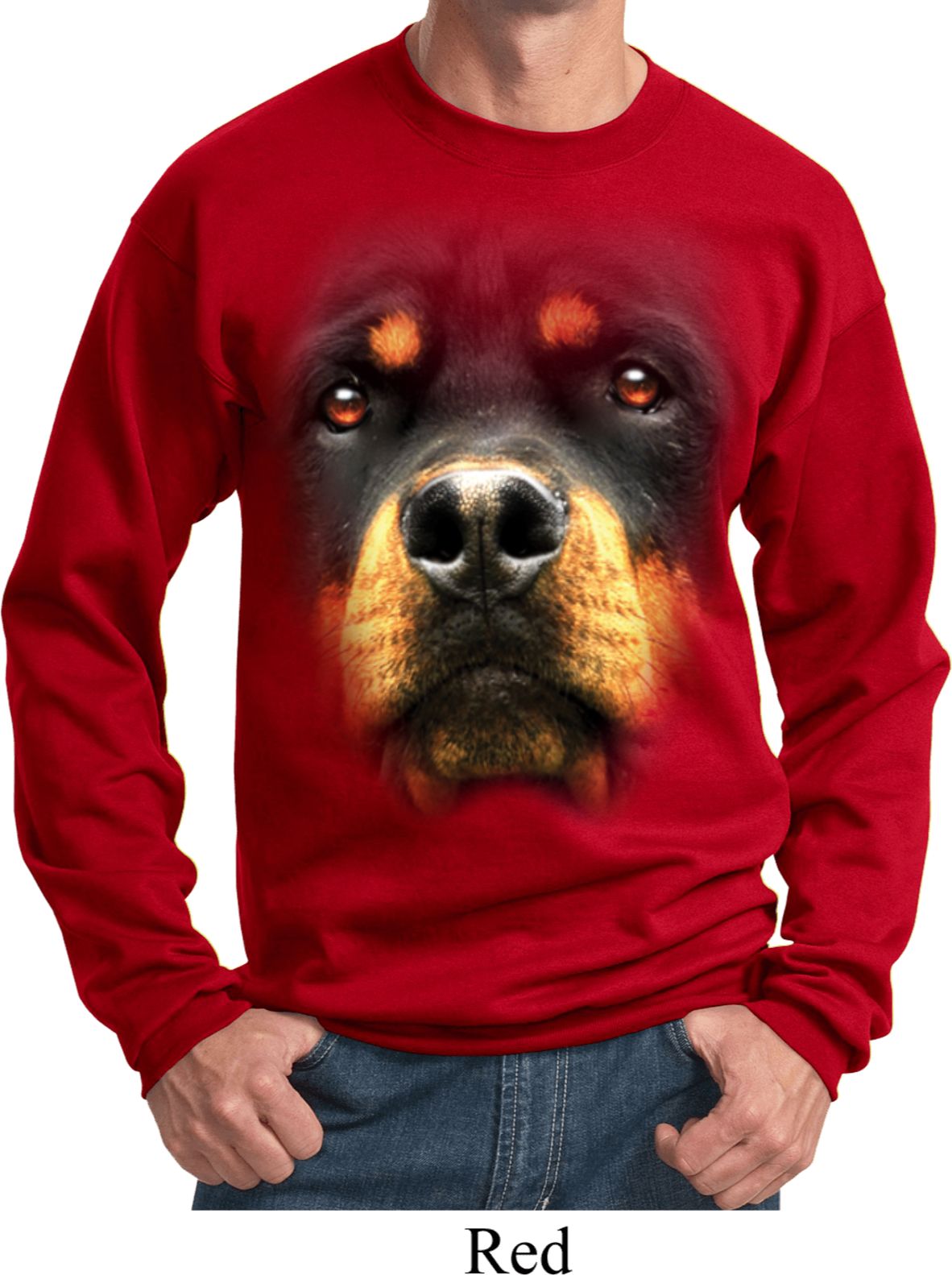 | | Mens Rottweiler Sweatshirt Big Rottweiler Face Sweat ShirtMens Rottweiler Sweatshirt Big Rottweiler Face Sweat Shirt A cotton/poly blend Available in Small, Medium, Large, XL, 2XL, 3XL & 4XL Also available in colors Ash, Athletic Heather, Black, Cardinal, Chocolate, Dark Green, Gold, Kelly, Maroon, Navy, Orange, Pale Pink, Purple, Red, Royal, Safety Green, and White ![]() |