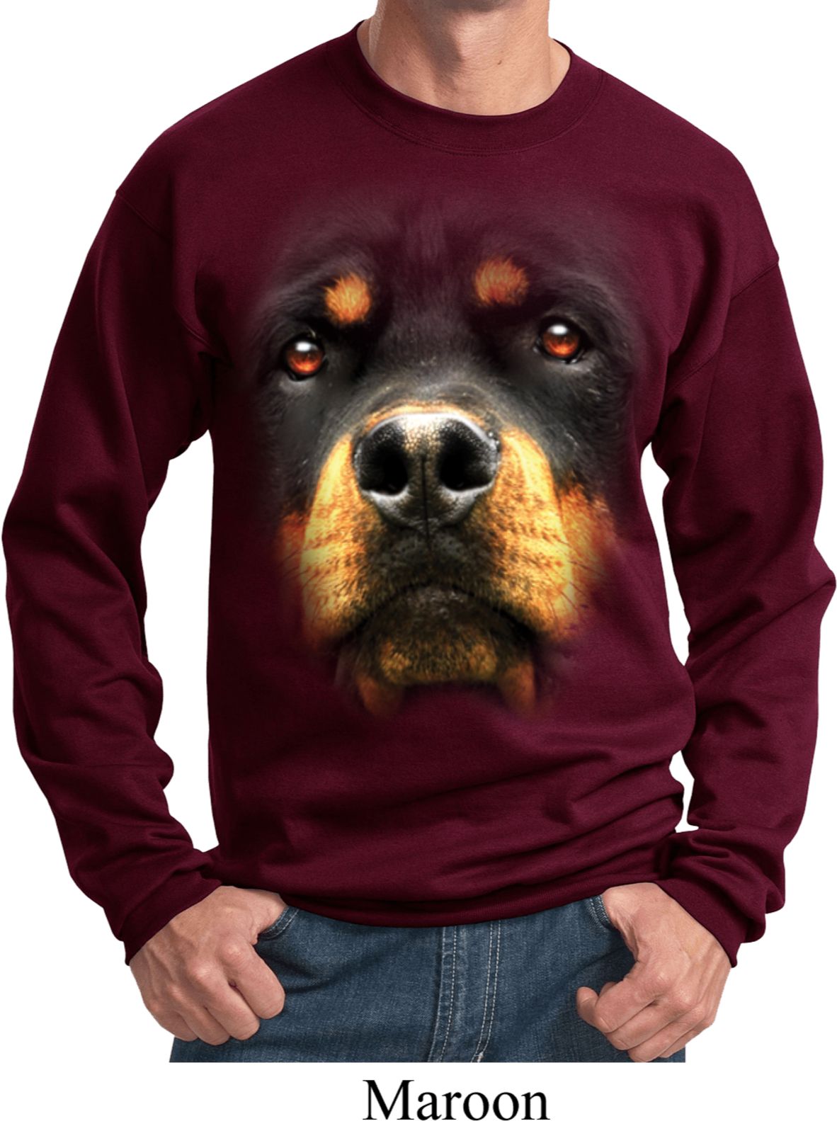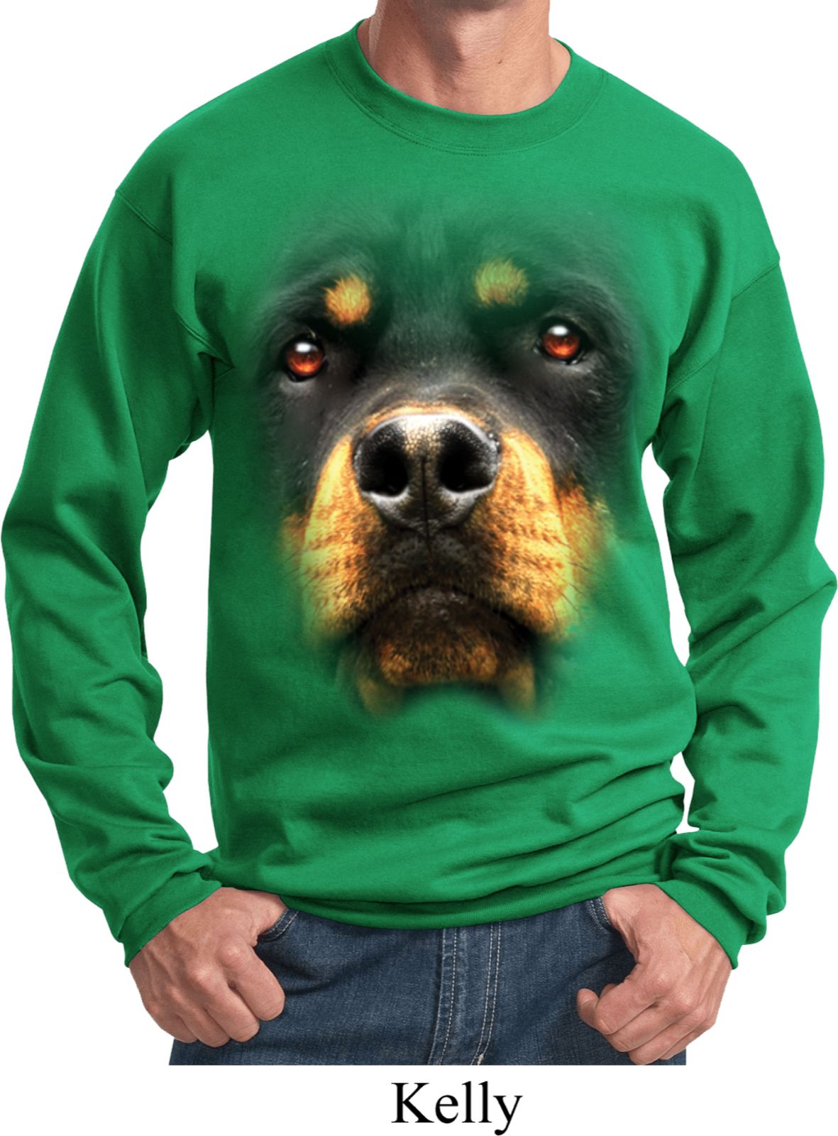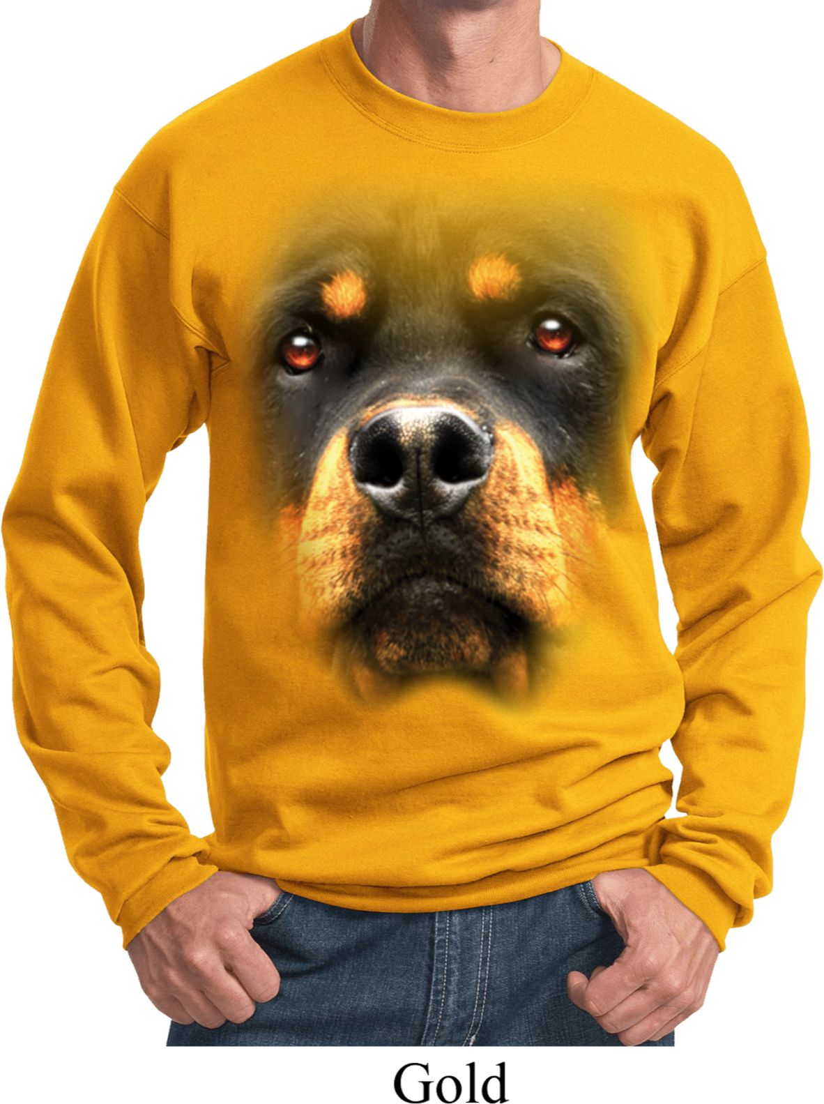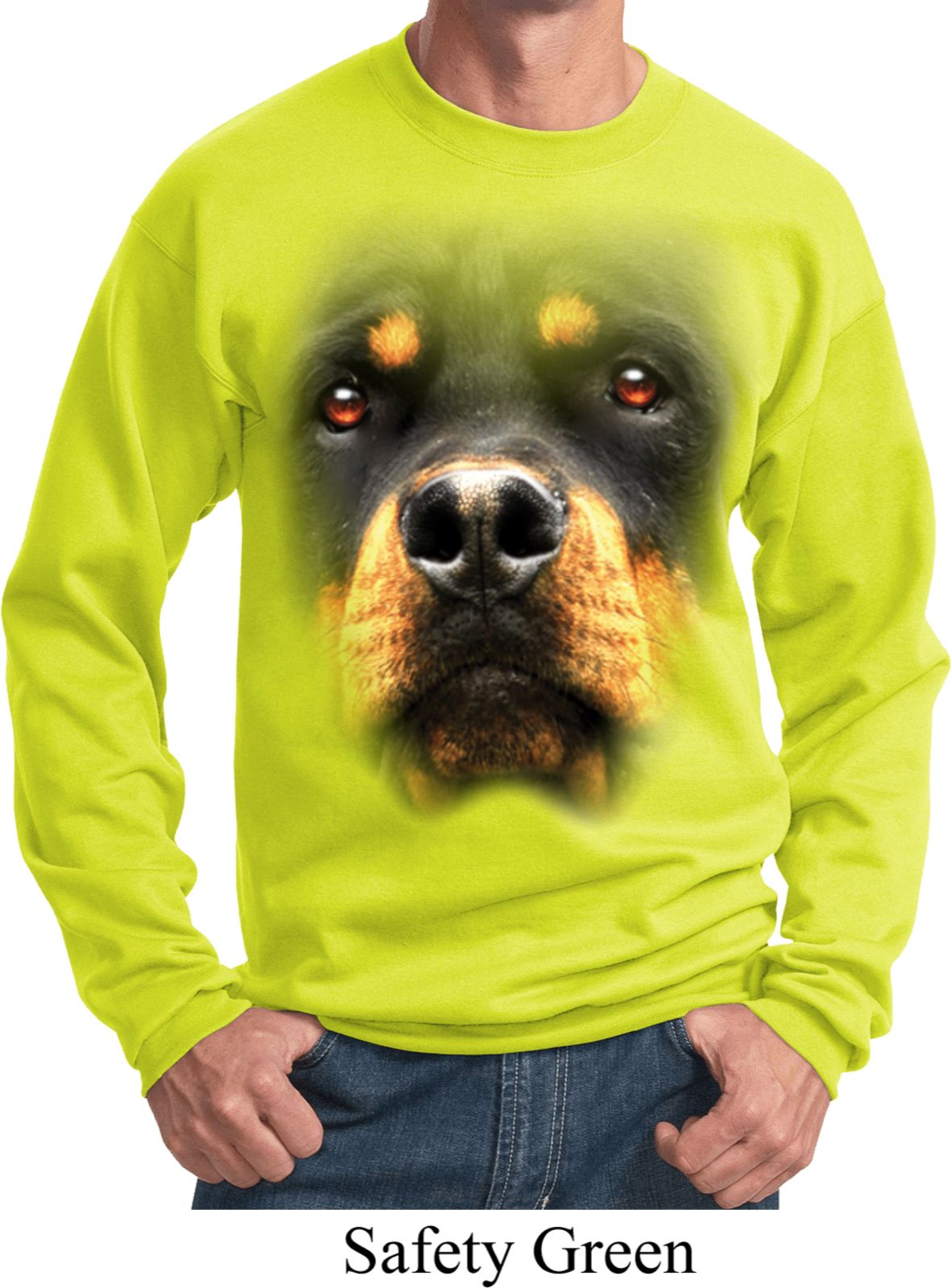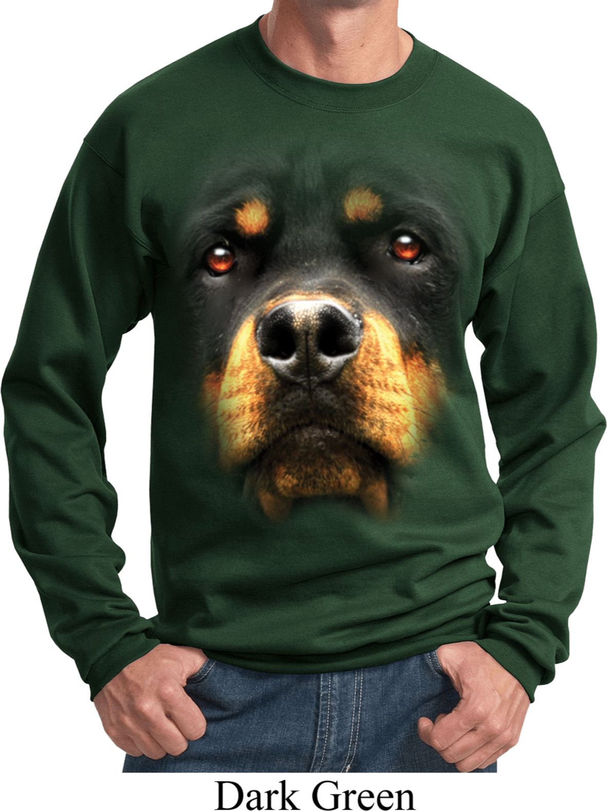 | | Mens Rottweiler Sweatshirt Big Rottweiler Face Sweat ShirtMens Rottweiler Sweatshirt Big Rottweiler Face Sweat Shirt A cotton/poly blend Available in Small, Medium, Large, XL, 2XL, 3XL & 4XL Also available in colors Ash, Athletic Heather, Black, Cardinal, Chocolate, Dark Green, Gold, Kelly, Maroon, Navy, Orange, Pale Pink, Purple, Red, Royal, Safety Green, and White ![]() |