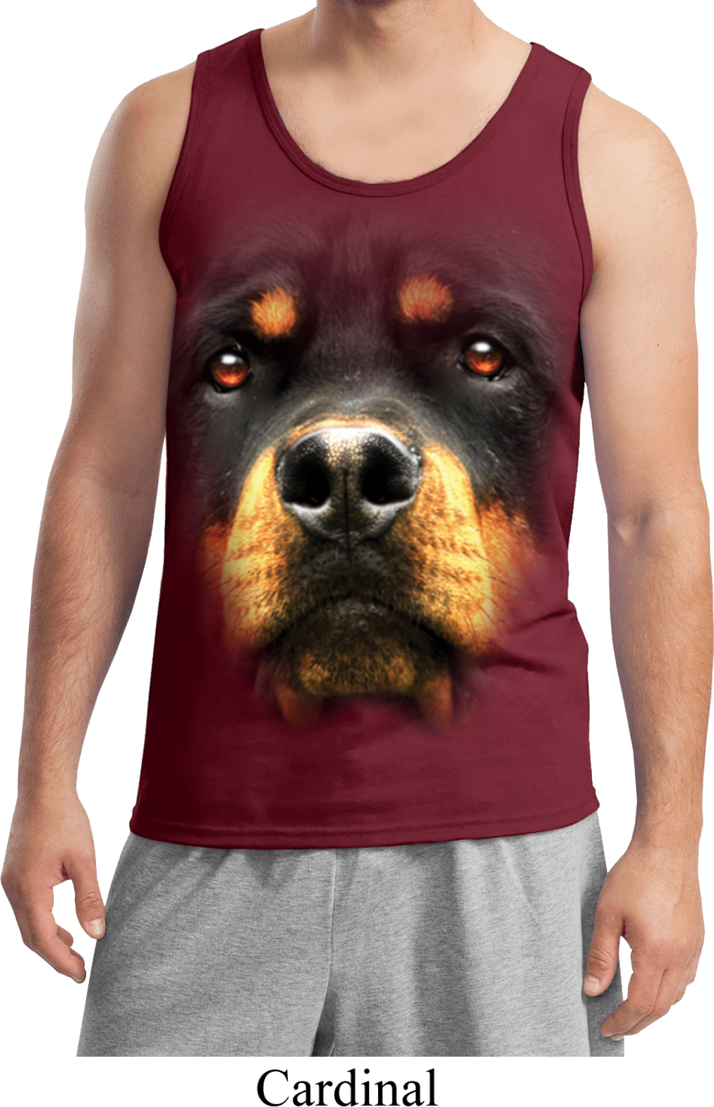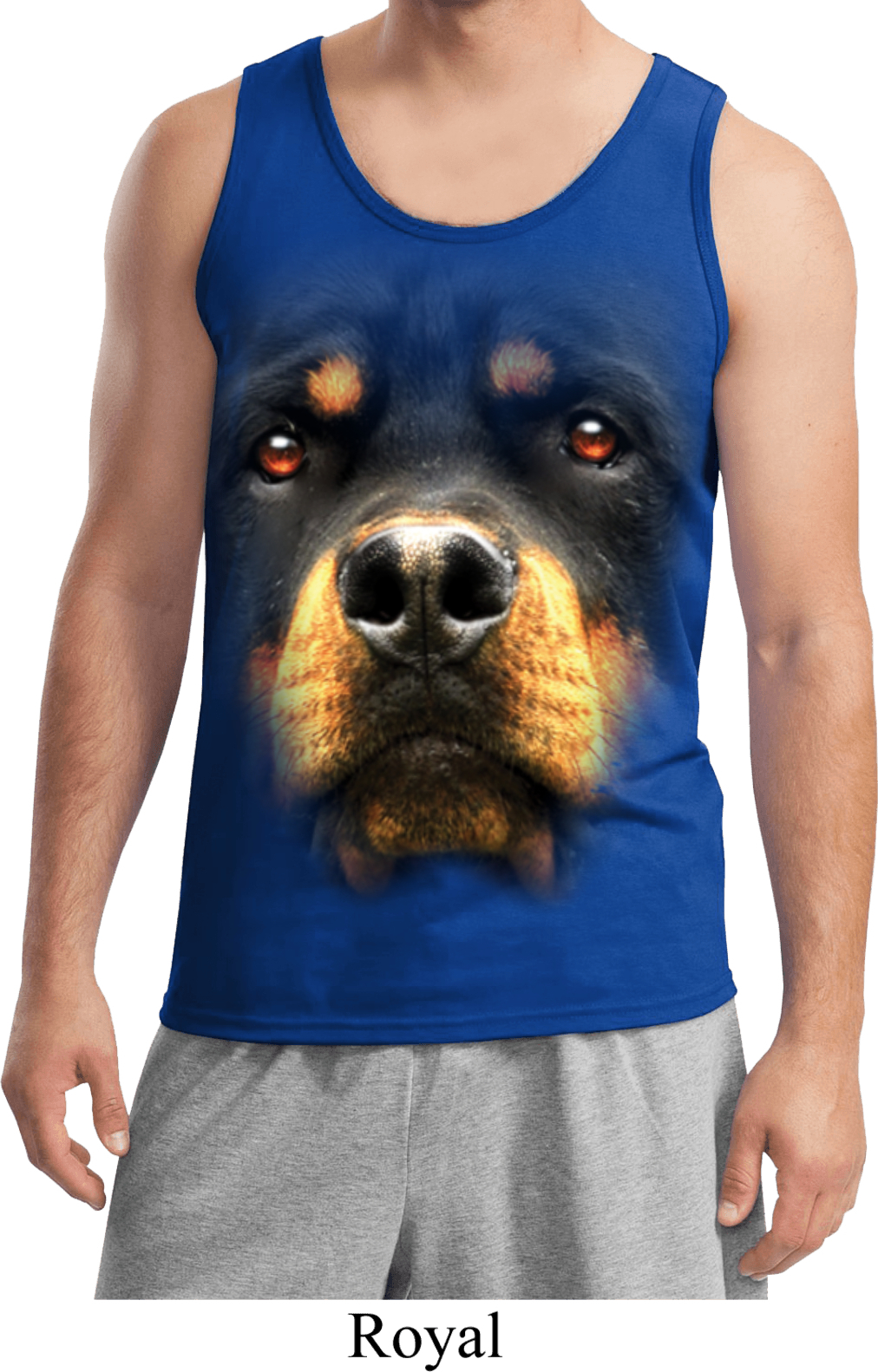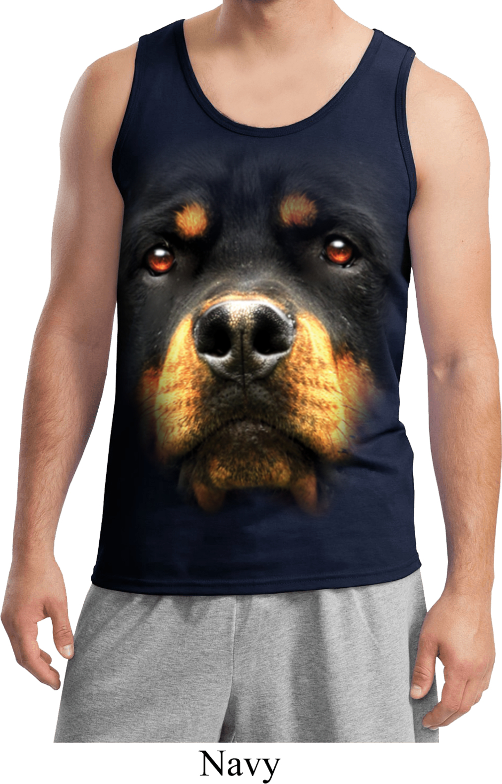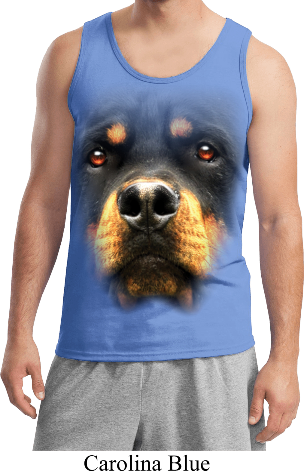 | | Mens Rottweiler Tanktop Big Rottweiler Face Tank TopMens Rottweiler Tanktop Big Rottweiler Face Tank Top 100% cotton Ash and Sports Grey are a cotton/poly blend Available in Small, Medium, Large, XL & 2XL Also available in colors Ash, Black, Cardinal, Carolina Blue, Charcoal, Gold, Lime, Navy, Orange, Purple, Red, Royal, Sapphire, Sports Grey, and White ![]() |