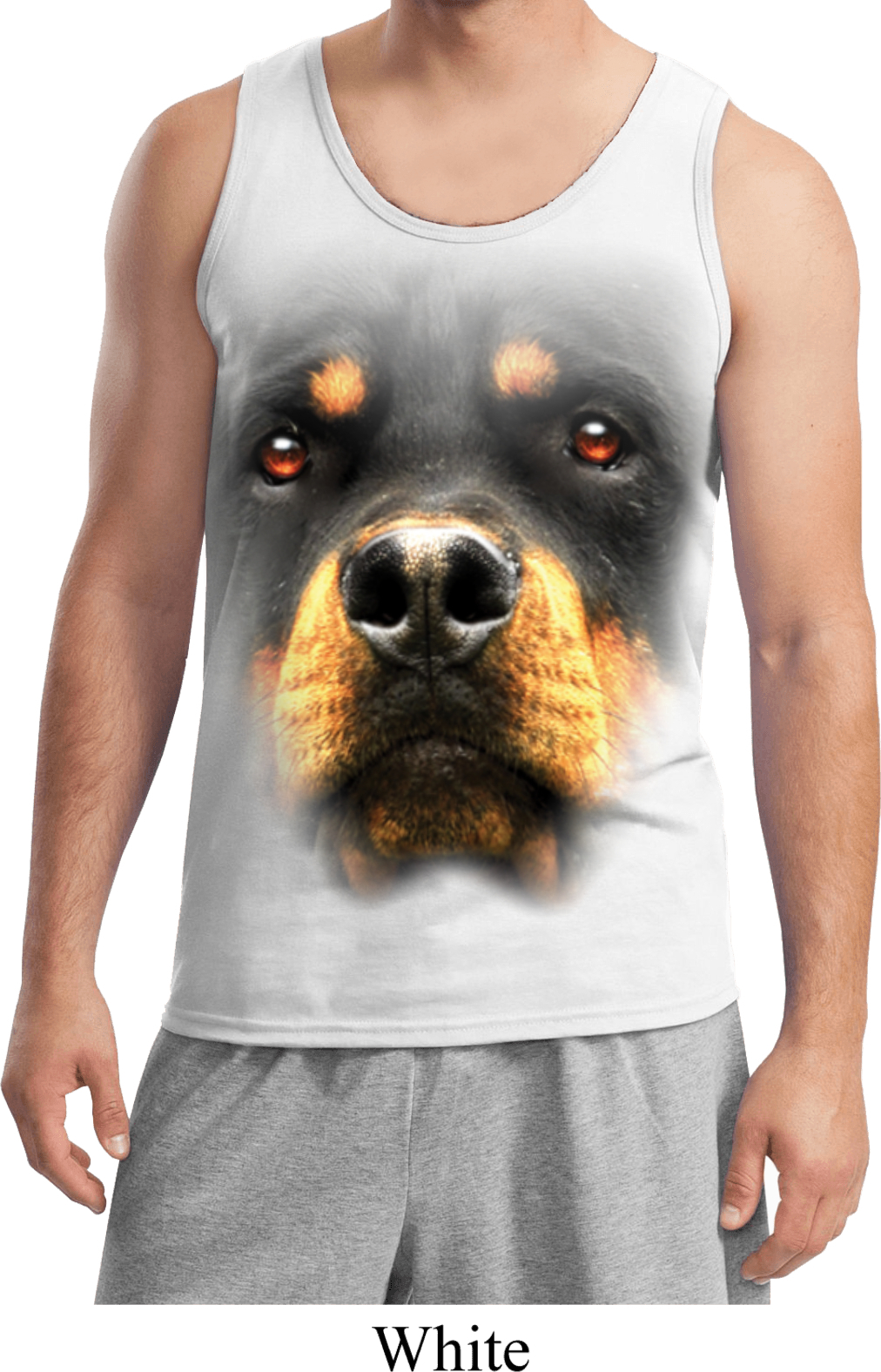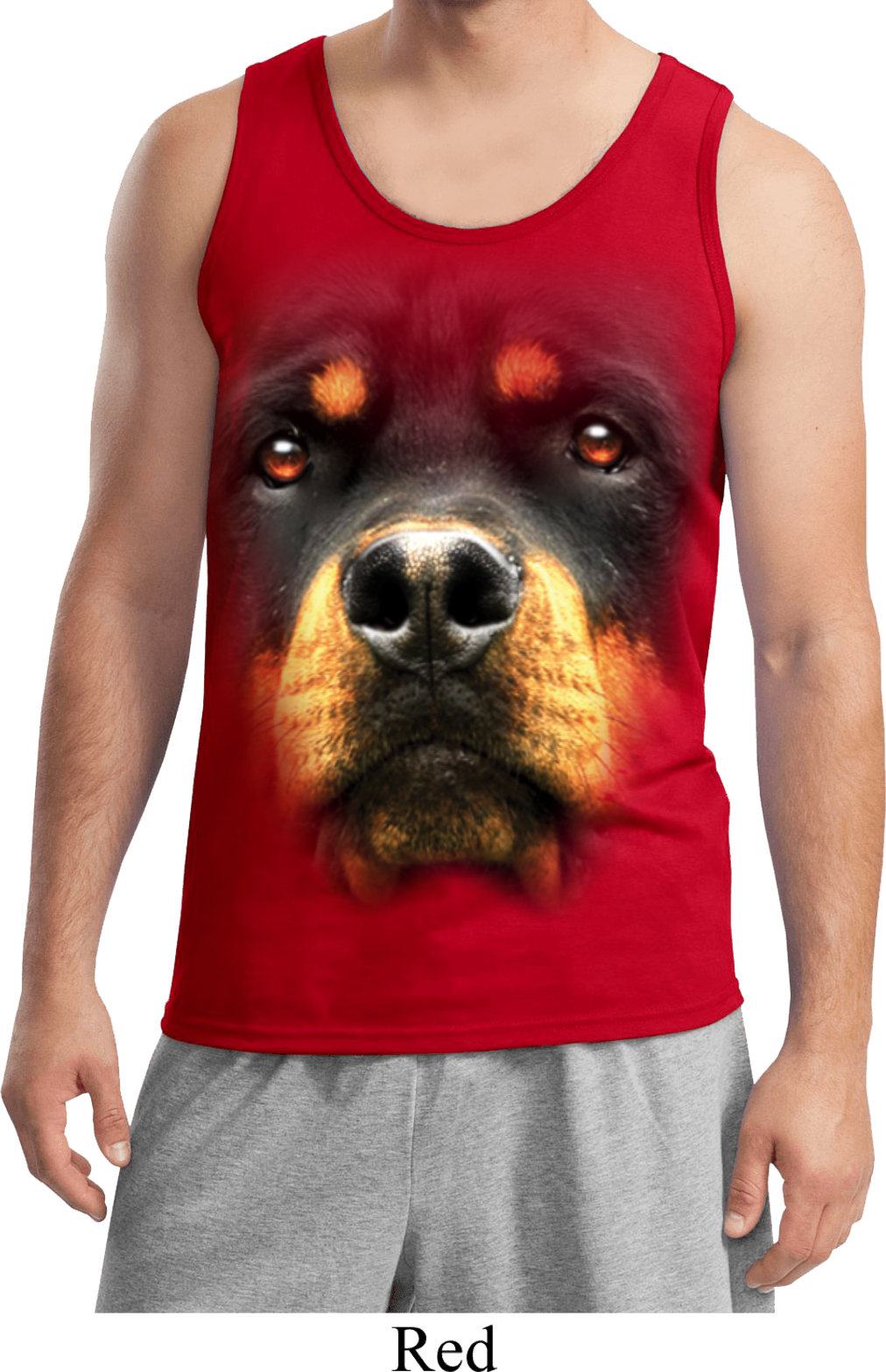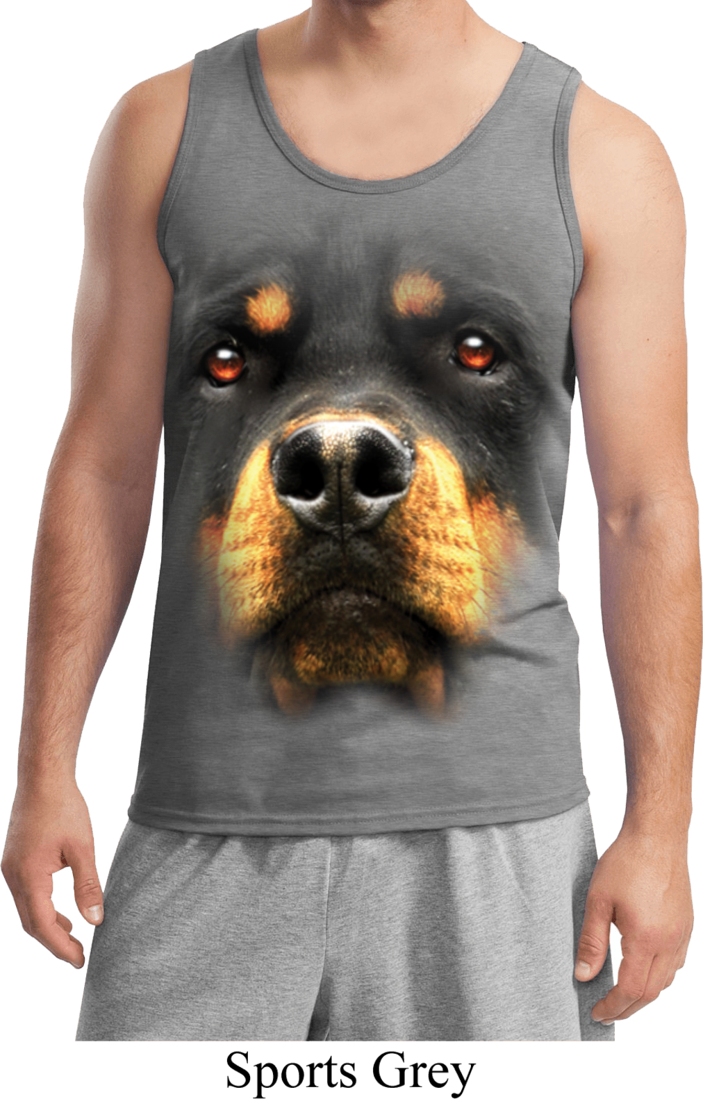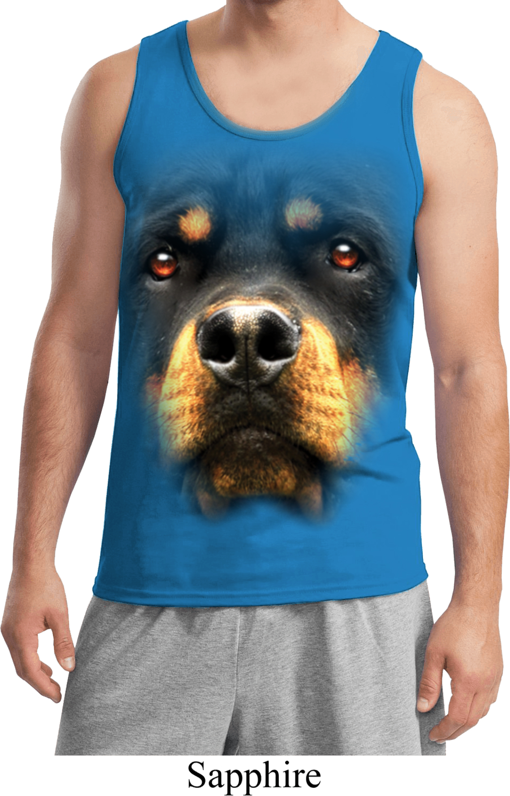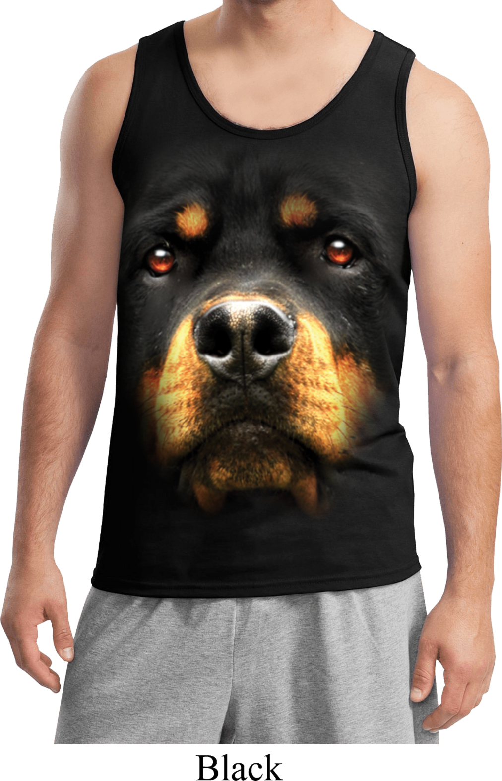 | | Mens Rottweiler Tanktop Big Rottweiler Face Tank TopMens Rottweiler Tanktop Big Rottweiler Face Tank Top 100% cotton Ash and Sports Grey are a cotton/poly blend Available in Small, Medium, Large, XL & 2XL Also available in colors Ash, Black, Cardinal, Carolina Blue, Charcoal, Gold, Lime, Navy, Orange, Purple, Red, Royal, Sapphire, Sports Grey, and White ![]() |