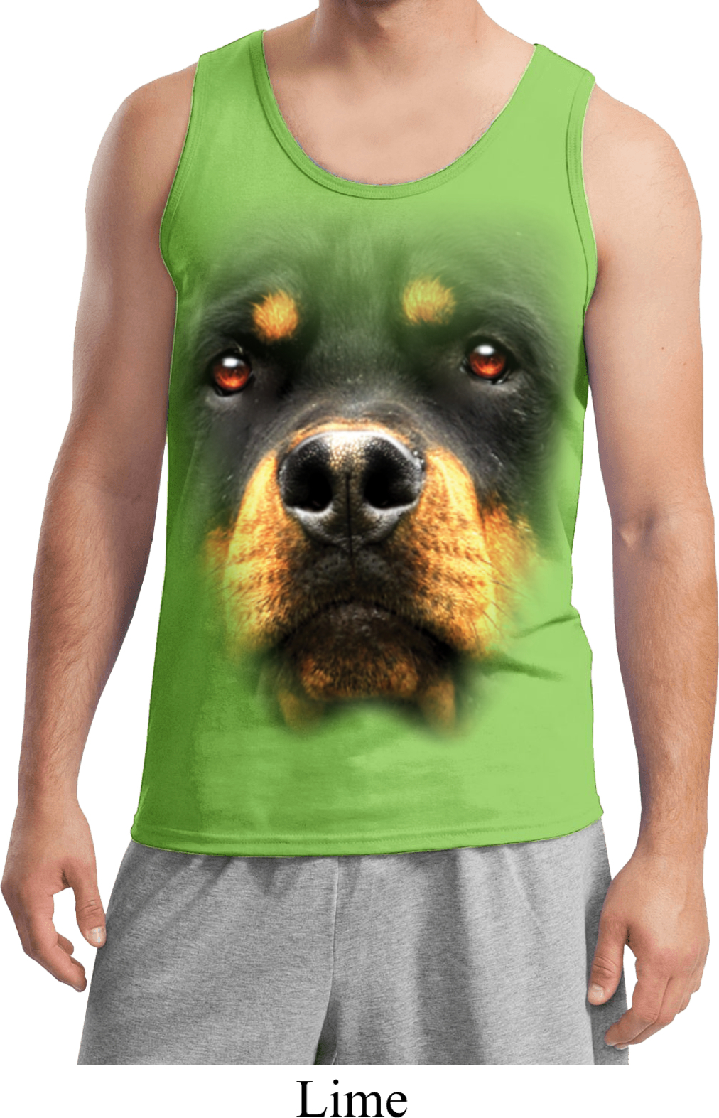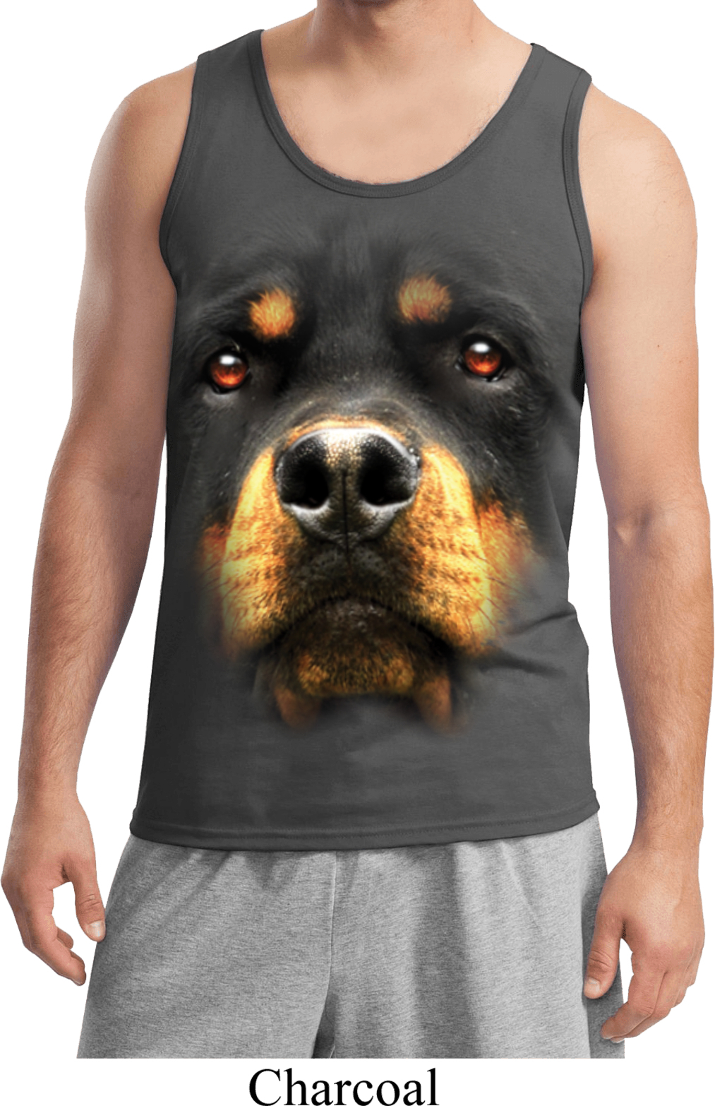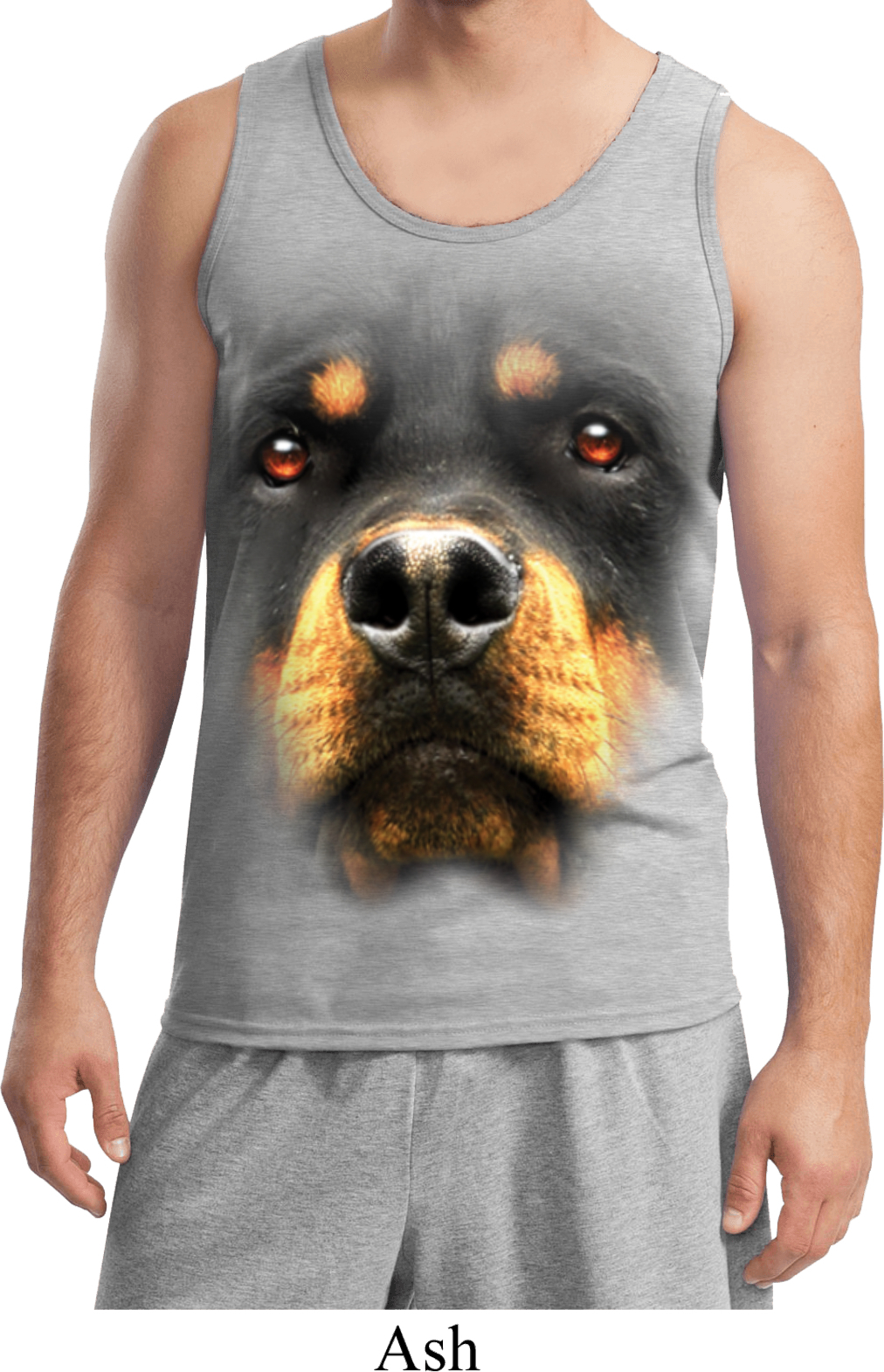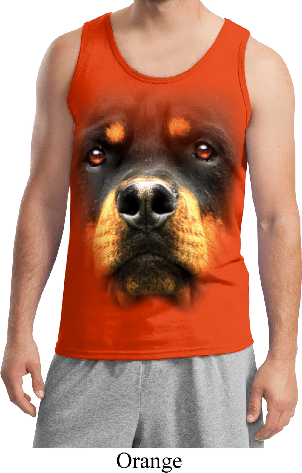| | Mens Rottweiler Tanktop Big Rottweiler Face Tank TopMens Rottweiler Tanktop Big Rottweiler Face Tank Top 100% cotton Ash and Sports Grey are a cotton/poly blend Available in Small, Medium, Large, XL & 2XL Also available in colors Ash, Black, Cardinal, Carolina Blue, Charcoal, Gold, Lime, Navy, Orange, Purple, Red, Royal, Sapphire, Sports Grey, and White ![]() |
