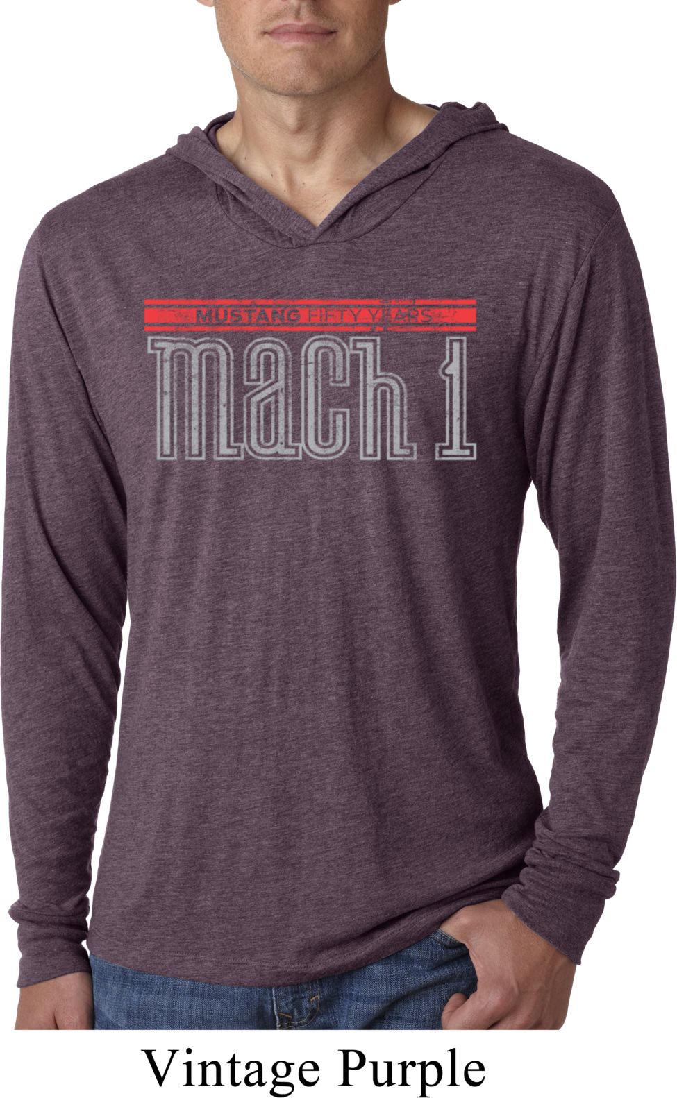 | | Mens Shirt 50 Years Mach 1 Lightweight Hoodie Tee T-ShirtMens Shirt 50 Years Mach 1 Lightweight Hoodie Tee T-Shirt A cotton/poly/rayon blend Available in Small, Medium, Large, XL & 2XL Also available in colors Indigo, Macchiato, Vintage Black, Vintage Navy, Vintage Purple, Vintage Royal, and White |