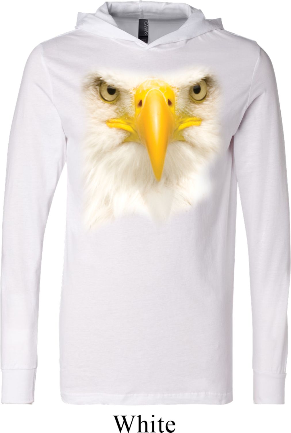 Mens Shirt Big Bald Eagle Face White Lightweight Hoodie Tee