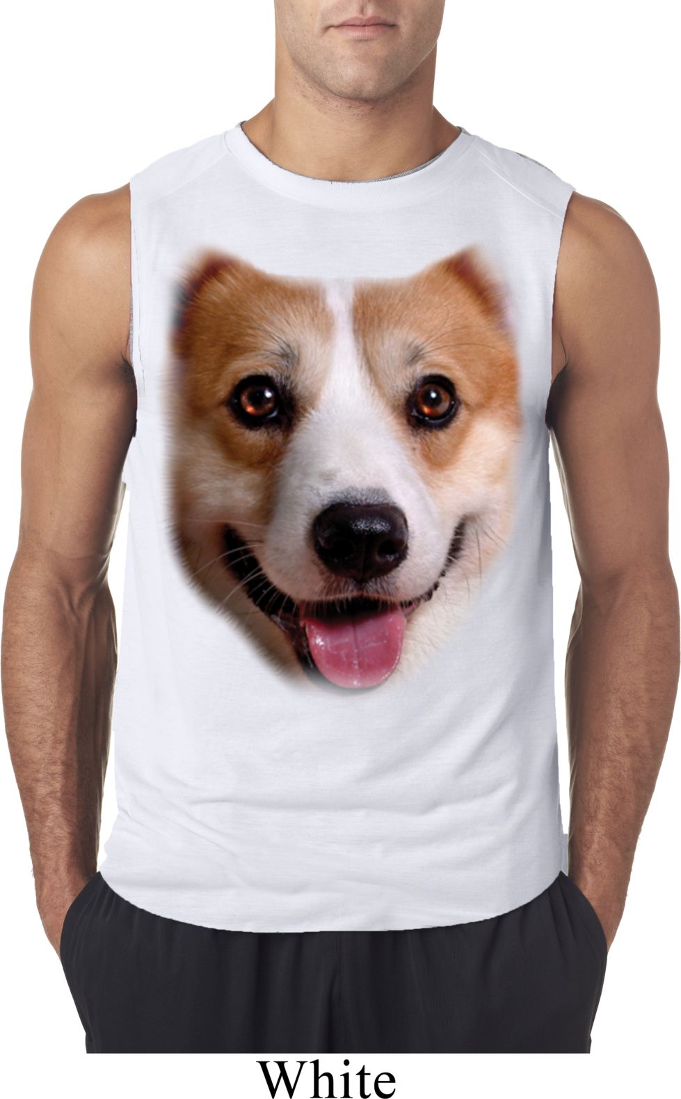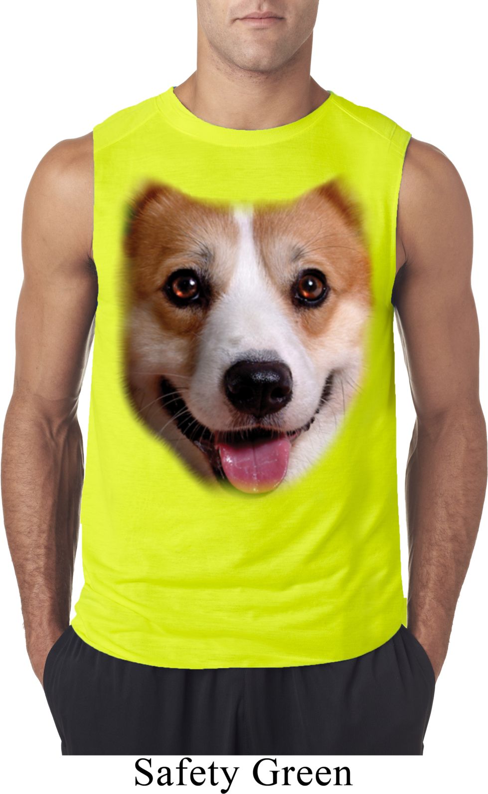 | | Mens Shirt Big Corgi Face Sleeveless Tee T-ShirtMens Shirt Big Corgi Face Sleeveless Tee T-Shirt 100% polyester Athletic heather is a cotton/poly blend Available in Small, Medium, Large, XL & 2XL Also available in colors Carolina Blue, Safety Green, and White |