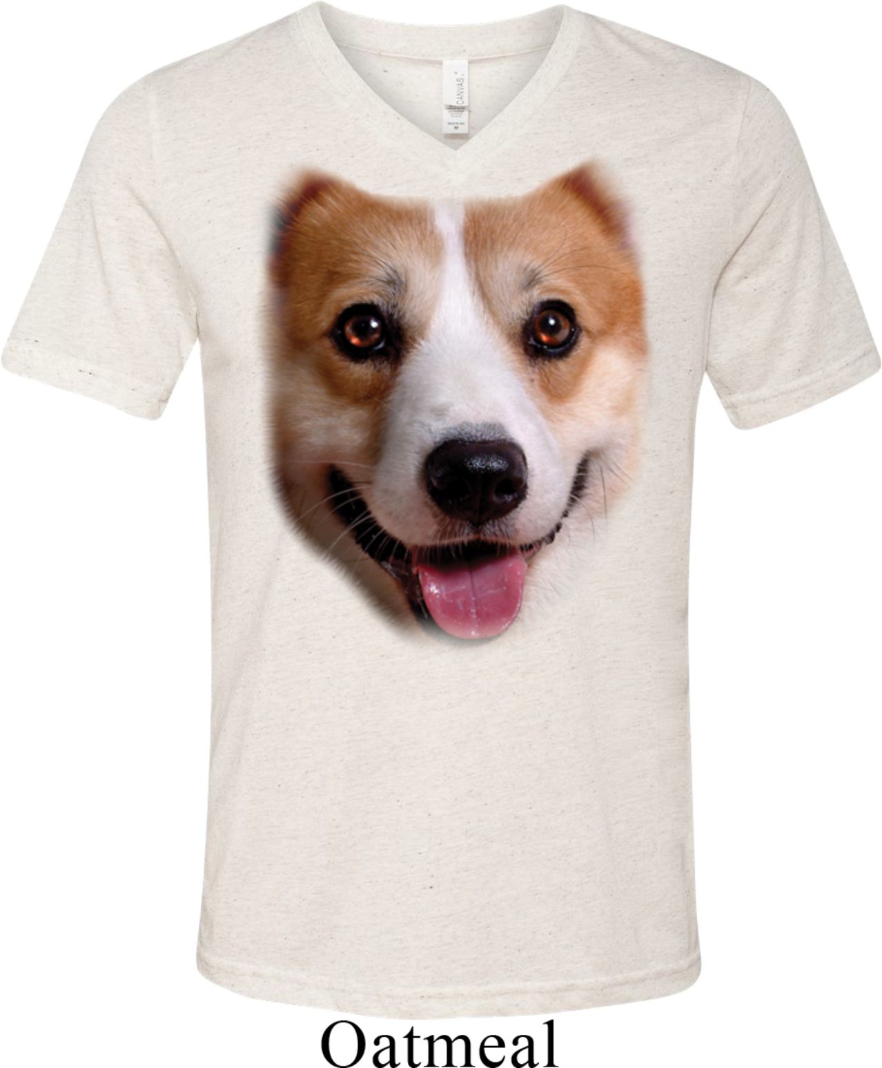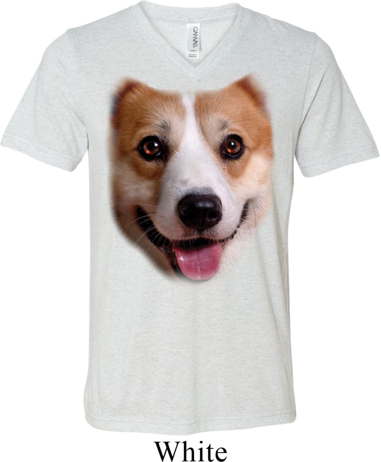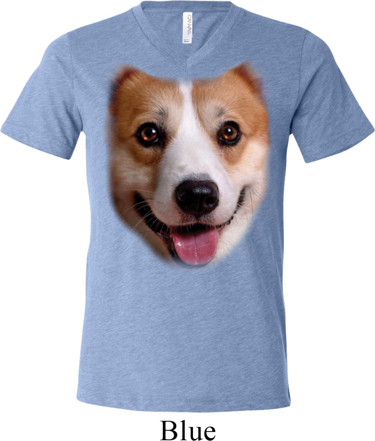 Mens Shirt Big Corgi Face Tri Blend V-neck Tee T-Shirt