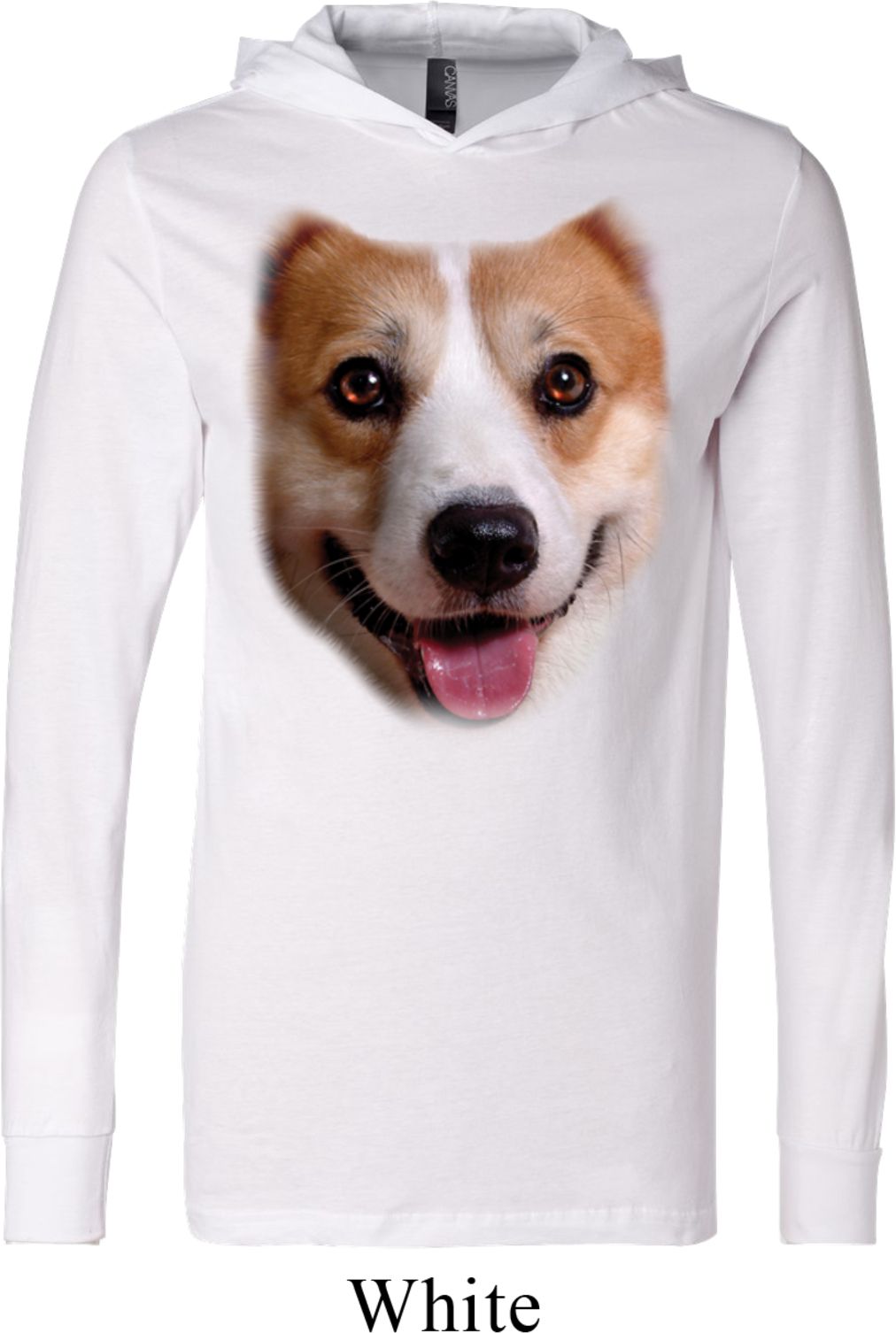 Mens Shirt Big Corgi Face White Lightweight Hoodie Tee