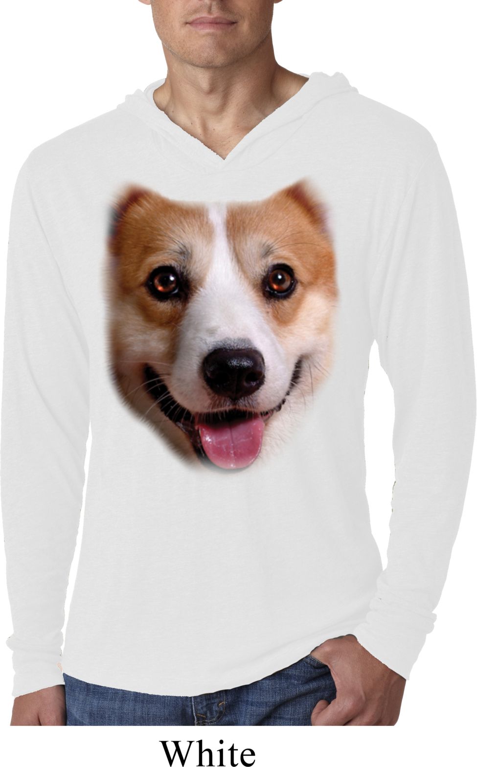 Mens Shirt Big Corgi Face White Lightweight Hoodie Tee T-Shirt
