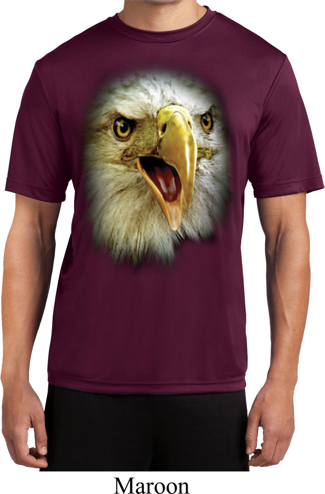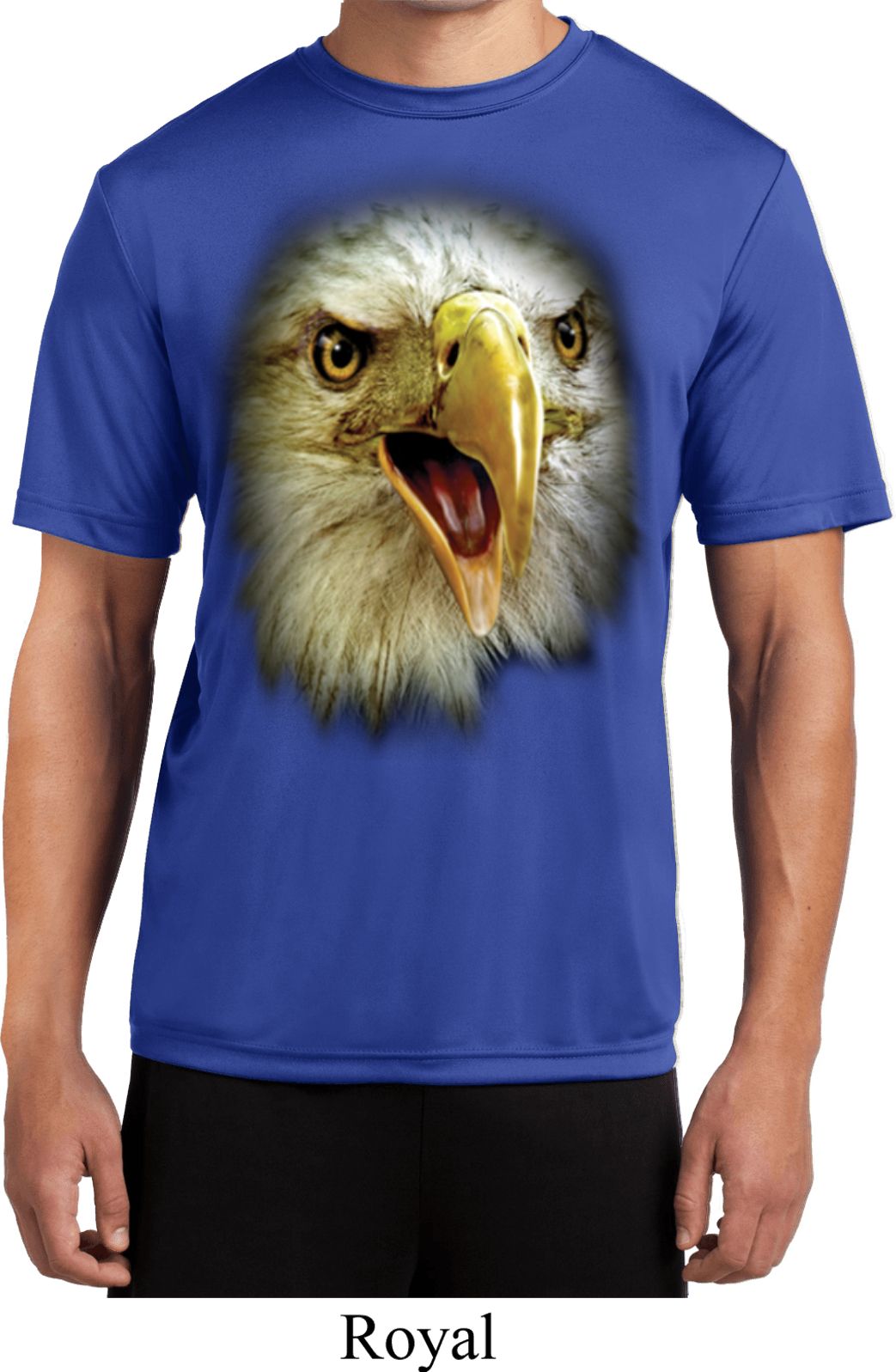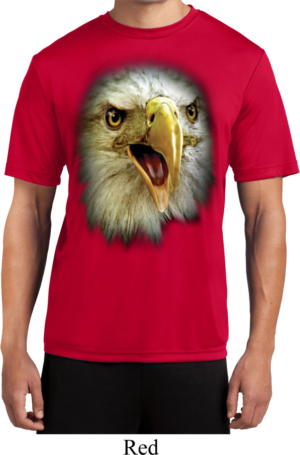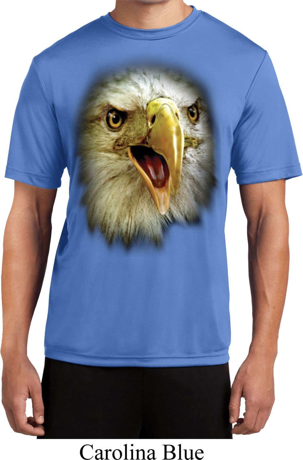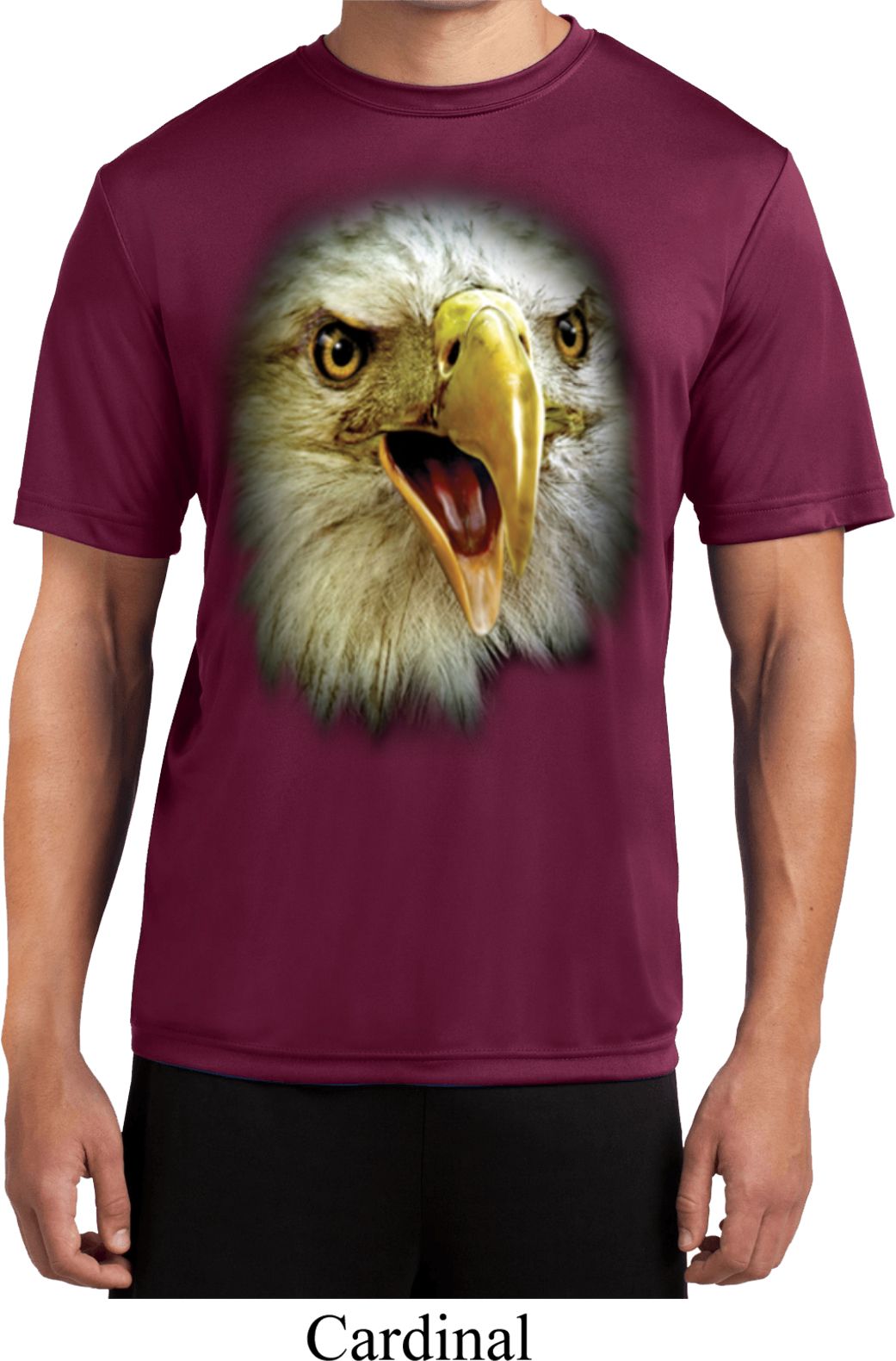 | | Mens Shirt Big Eagle Face Moisture Wicking Tee T-ShirtMens Shirt Big Eagle Face Moisture Wicking Tee T-Shirt 100% polyester Available in Small, Medium, Large, XL, 2XL, 3XL & 4XL Also available in colors Black, Cardinal, Carolina Blue, Deep Orange, Forest, Gold, Kelly, Light Pink, Lime, Maroon, Navy, Purple, Red, Royal, Sand, Silver, Tropic Blue, Vegas Gold, and White |