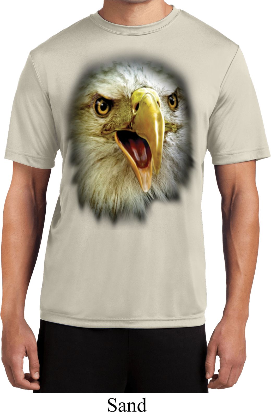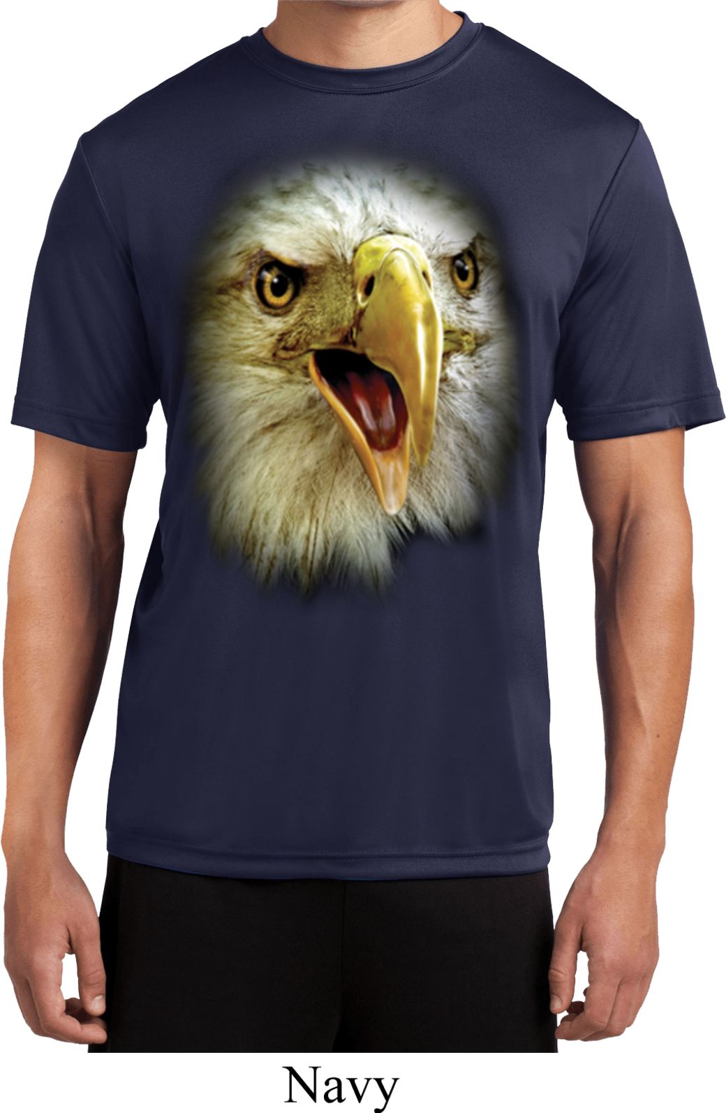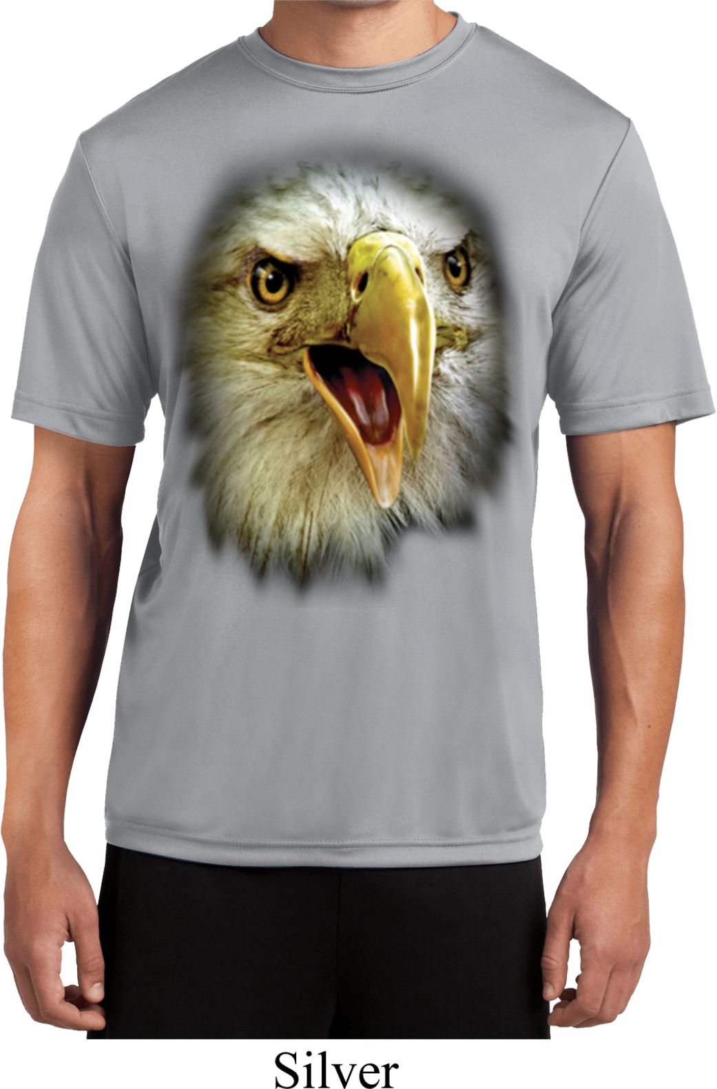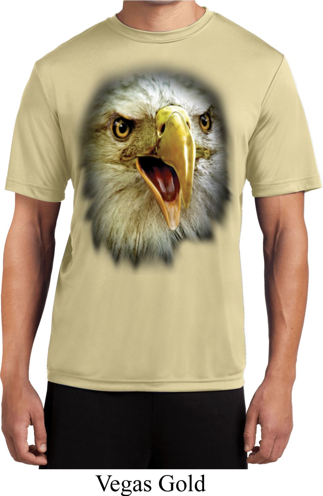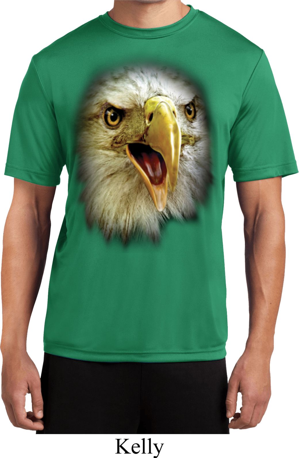 | | Mens Shirt Big Eagle Face Moisture Wicking Tee T-ShirtMens Shirt Big Eagle Face Moisture Wicking Tee T-Shirt 100% polyester Available in Small, Medium, Large, XL, 2XL, 3XL & 4XL Also available in colors Black, Cardinal, Carolina Blue, Deep Orange, Forest, Gold, Kelly, Light Pink, Lime, Maroon, Navy, Purple, Red, Royal, Sand, Silver, Tropic Blue, Vegas Gold, and White |