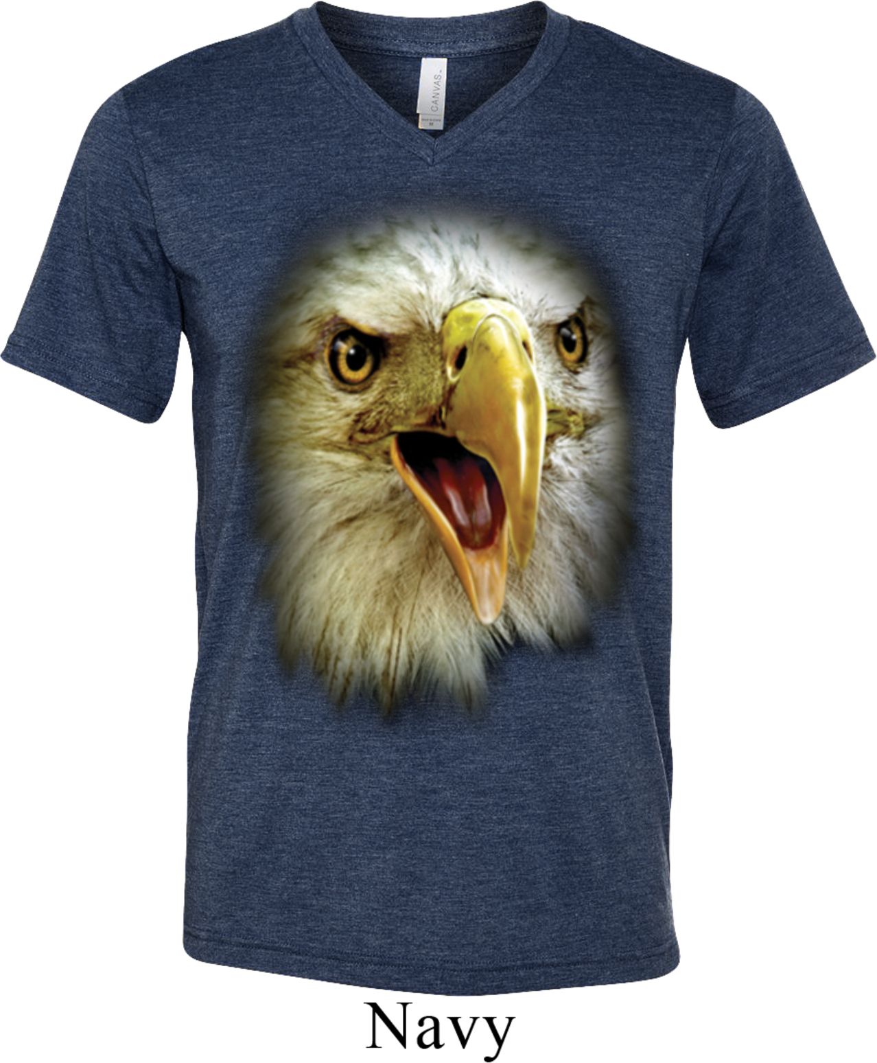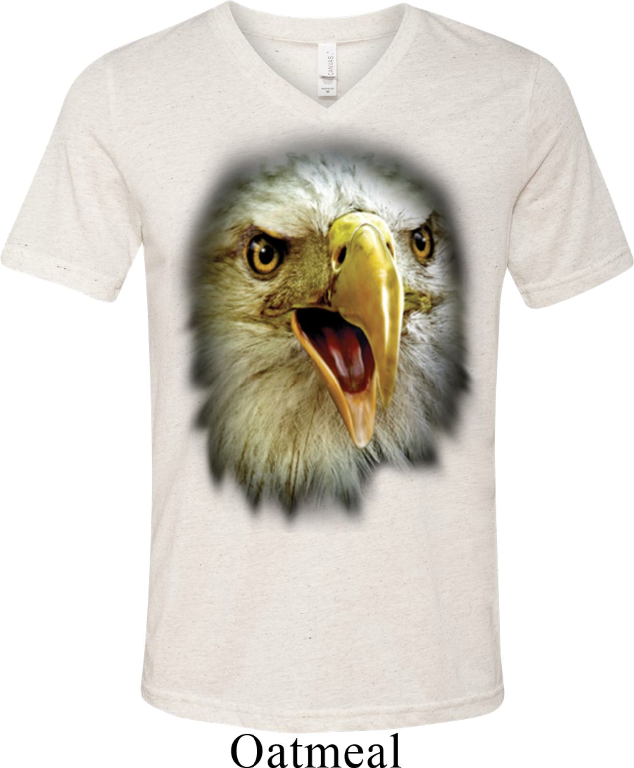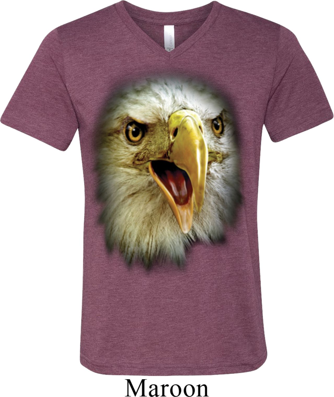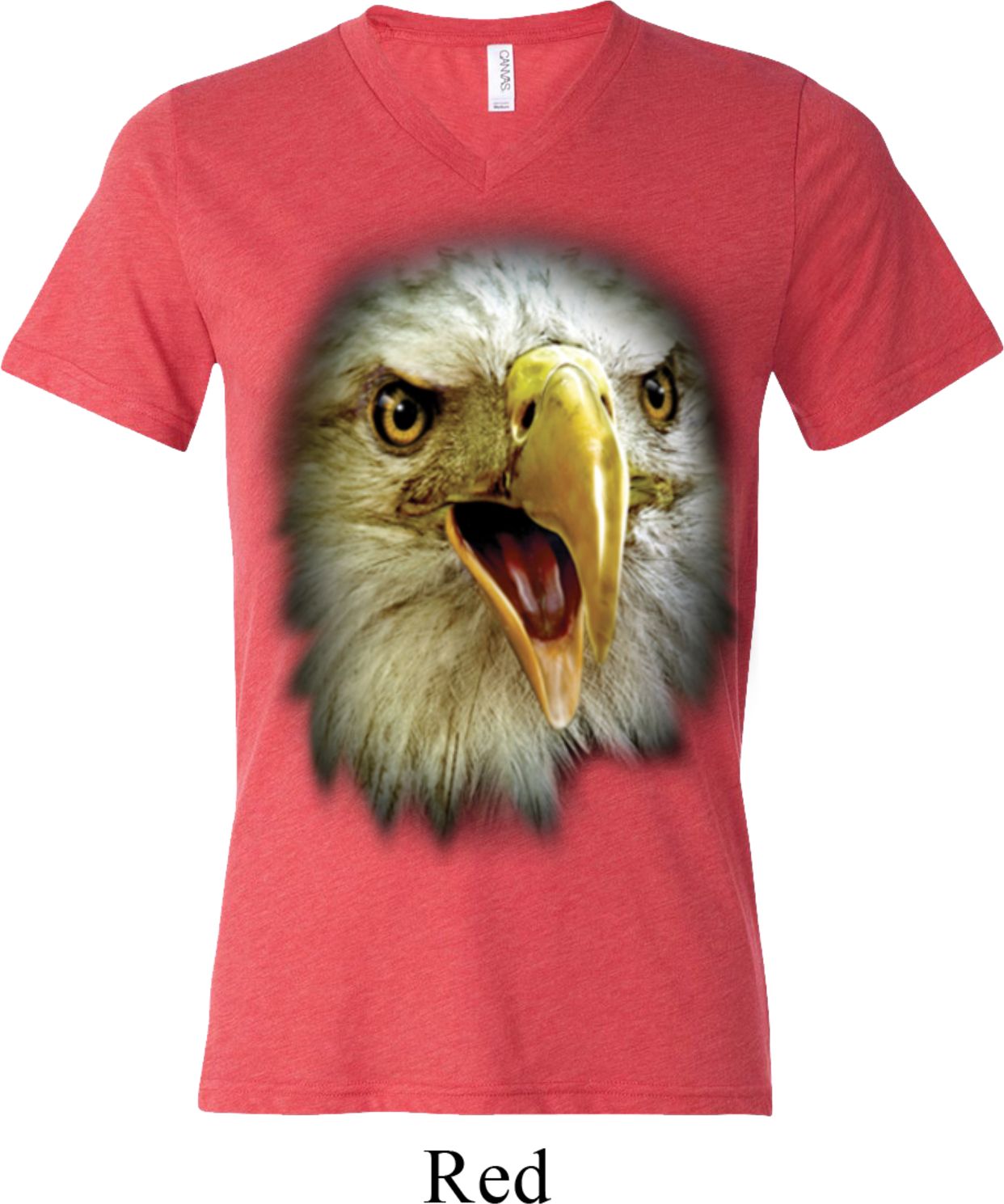 | | Mens Shirt Big Eagle Face Tri Blend V-neck Tee T-ShirtMens Shirt Big Eagle Face Tri Blend V-neck Tee T-Shirt A cotton/poly/rayon blend Available in Small, Medium, Large, XL & 2XL Also available in colors Aqua, Athletic Grey, Blue, Brown, Charcoal Black, Clay, Green, Grey, Maroon, Navy, Oatmeal, Orange, Red, Royal, Teal, and White |