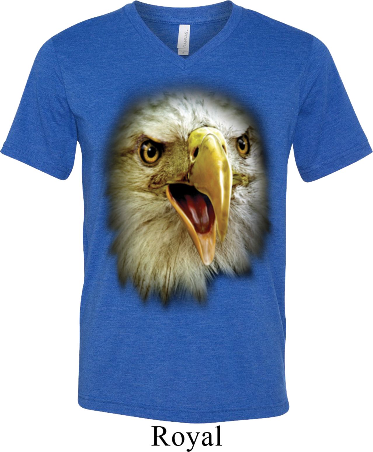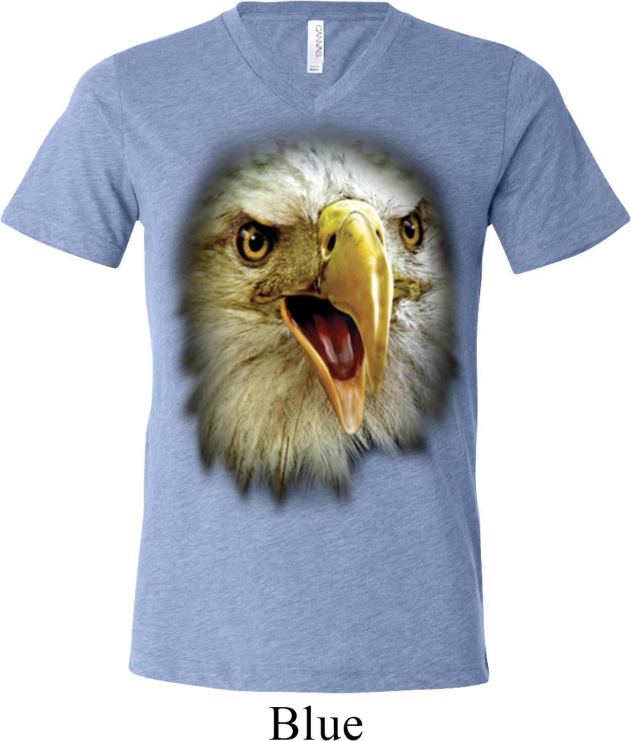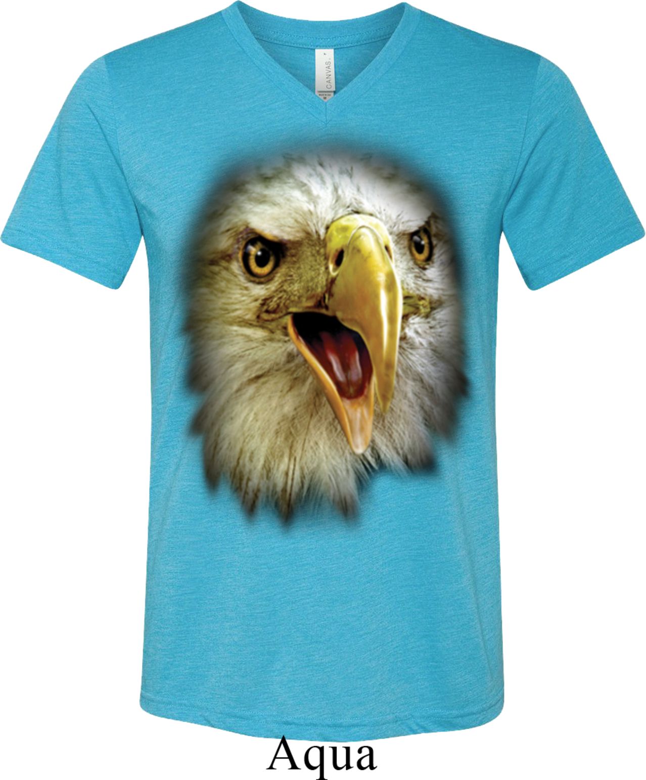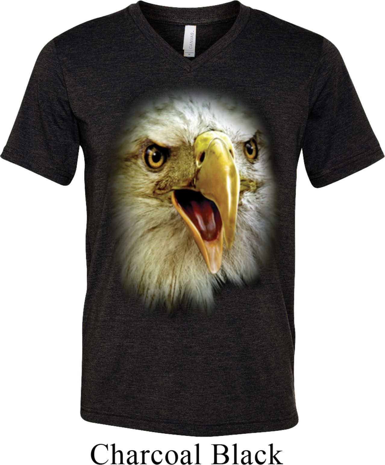 | | Mens Shirt Big Eagle Face Tri Blend V-neck Tee T-ShirtMens Shirt Big Eagle Face Tri Blend V-neck Tee T-Shirt A cotton/poly/rayon blend Available in Small, Medium, Large, XL & 2XL Also available in colors Aqua, Athletic Grey, Blue, Brown, Charcoal Black, Clay, Green, Grey, Maroon, Navy, Oatmeal, Orange, Red, Royal, Teal, and White |