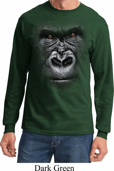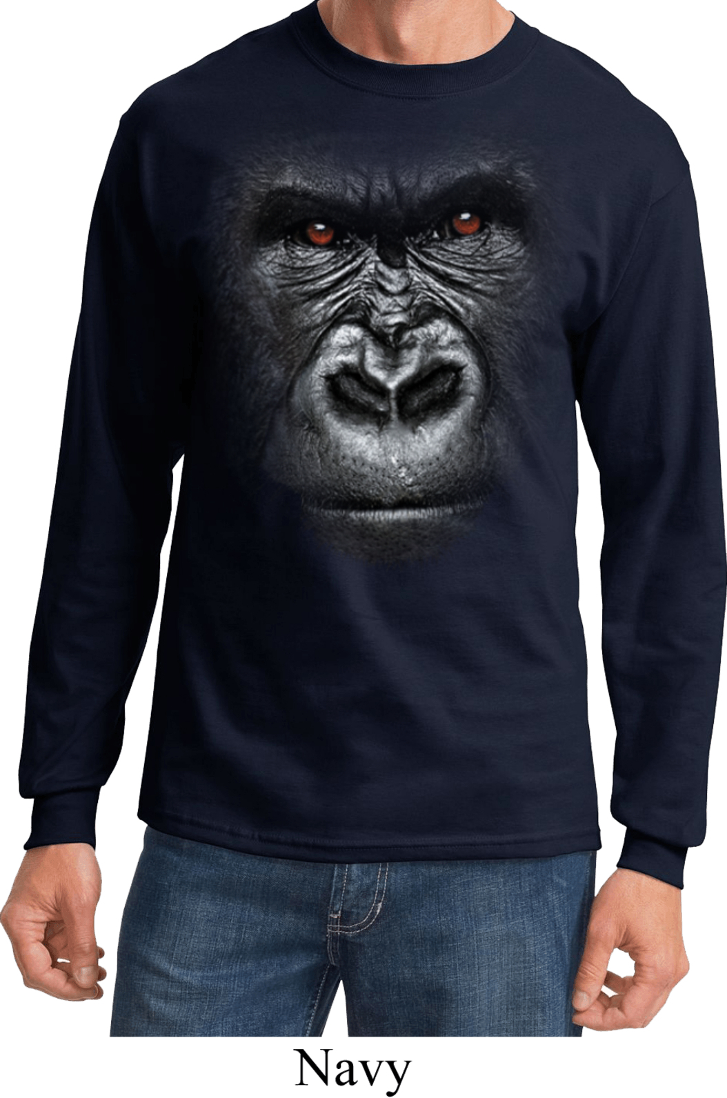 | | Mens Shirt Big Gorilla Face Long Sleeve Tee T-ShirtMens Shirt Big Gorilla Face Long Sleeve Tee T-Shirt 100% cotton Ash and athletic heather are a cotton/poly blend Available in Small, Medium, Large, XL, 2XL, 3XL & 4XL Also available in colors Black, Charcoal, Chocolate, Dark Green and Navy ![]() |