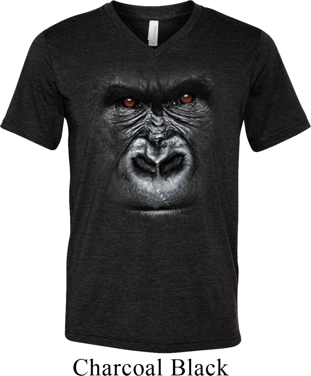 Mens Shirt Big Gorilla Face Tri Blend V-neck Tee T-Shirt