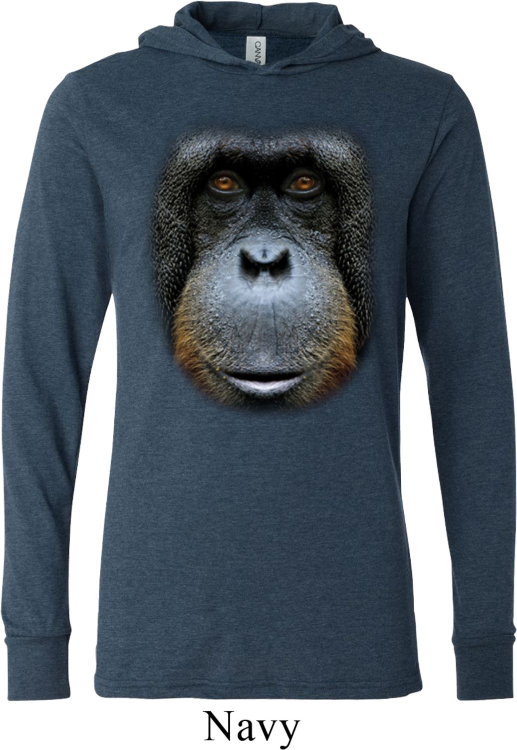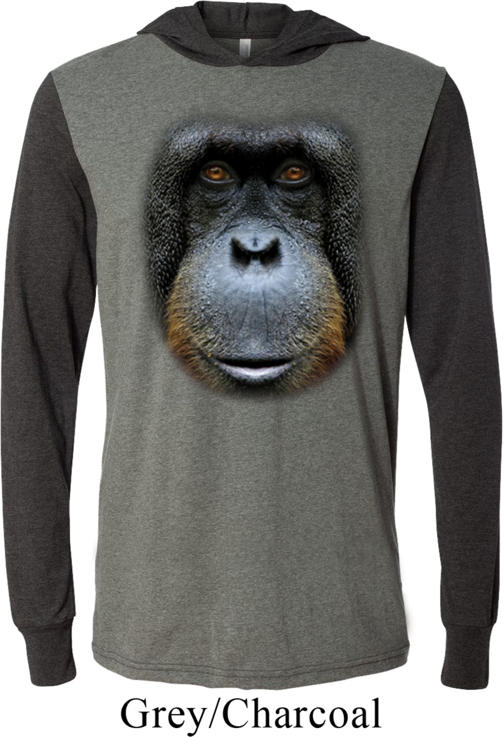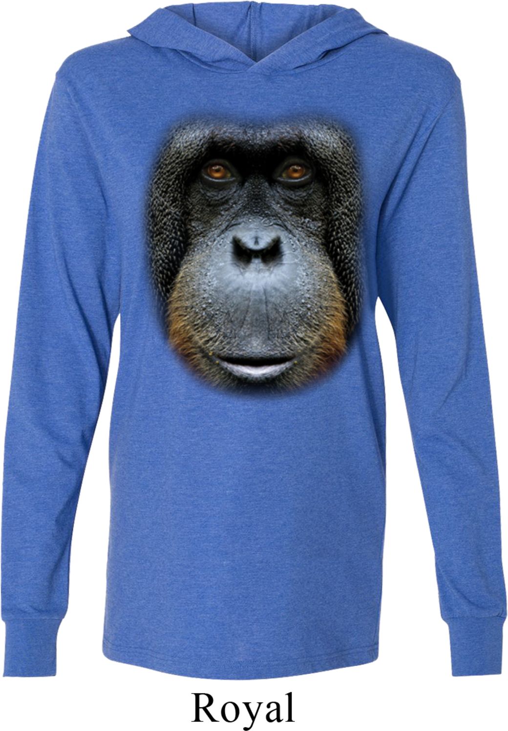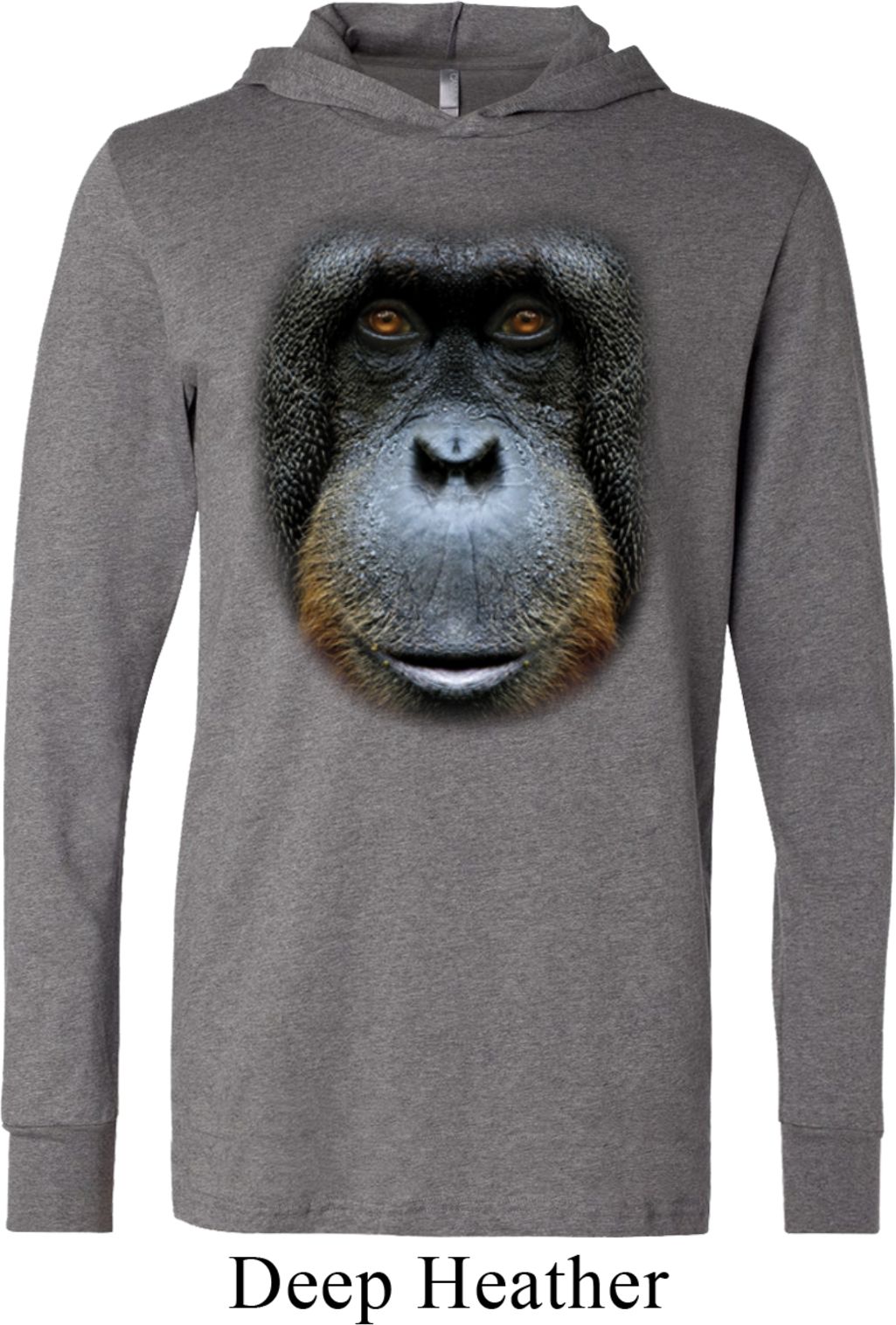 | | Mens Shirt Big Orangutan Face Lightweight Hoodie TeeMens Shirt Big Orangutan Face Lightweight Hoodie Tee 100% cotton Deep heather, Grey/Charcoal, and Navy are a cotton/poly blend Charcoal Heather is a cotton/poly/rayon blend Available in Small, Medium, Large, XL & 2XL Also available in colors Asphalt, Black, Charcoal Heather, Deep Heather, Grey Charcoal, Navy, Royal, and White |