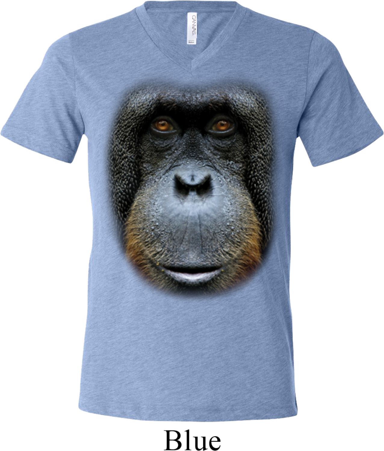 | | Mens Shirt Big Orangutan Face Tri Blend V-neck Tee T-ShirtMens Shirt Big Orangutan Face Tri Blend V-neck Tee T-Shirt A cotton/poly/rayon blend Available in Small, Medium, Large, XL & 2XL Also available in colors Aqua, Athletic Grey, Blue, Brown, Charcoal Black, Clay, Green, Grey, Maroon, Navy, Oatmeal, Orange, Red, Royal, Teal, and White |