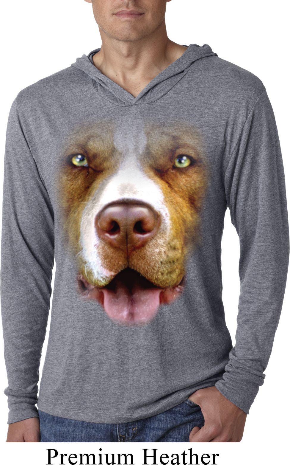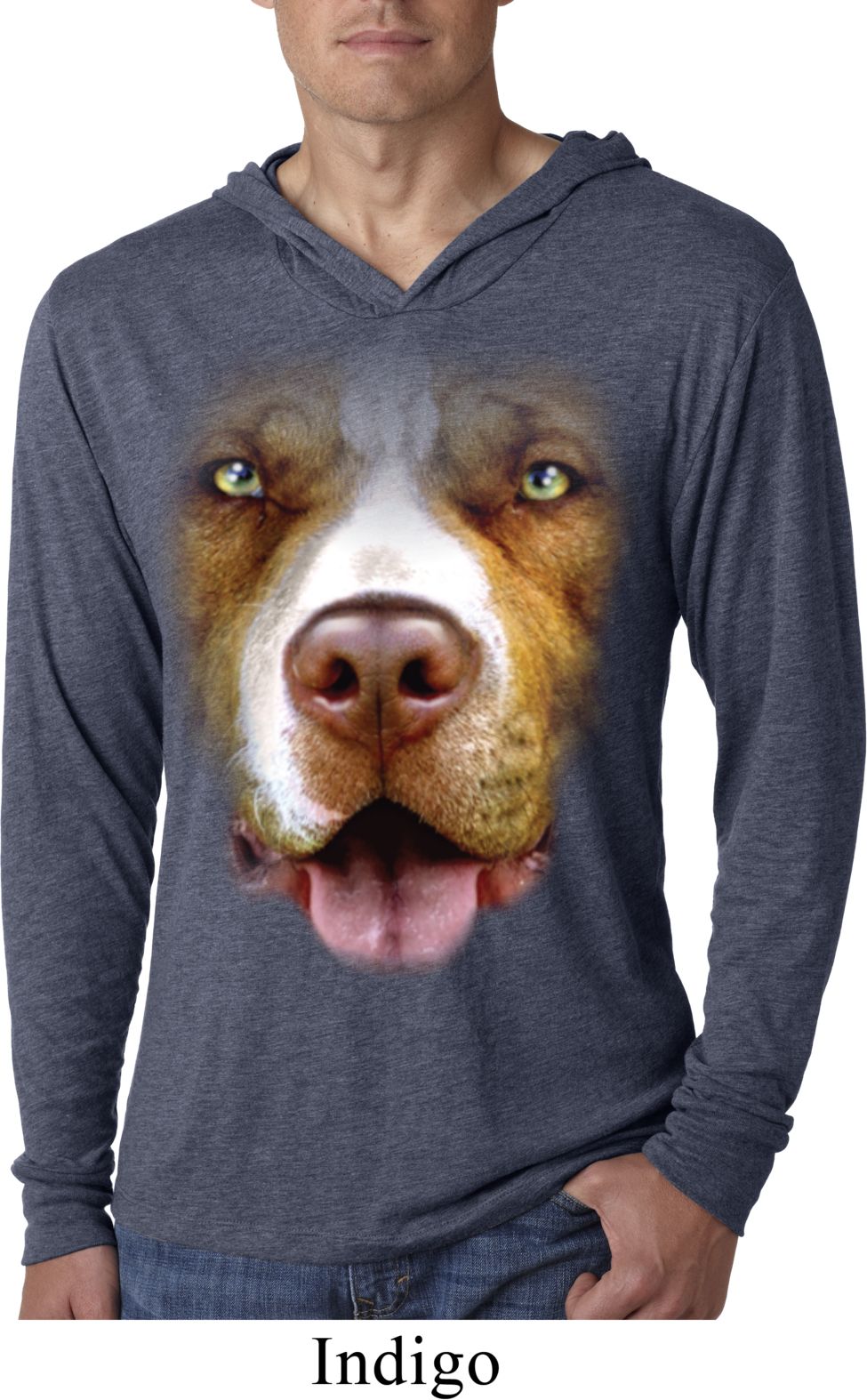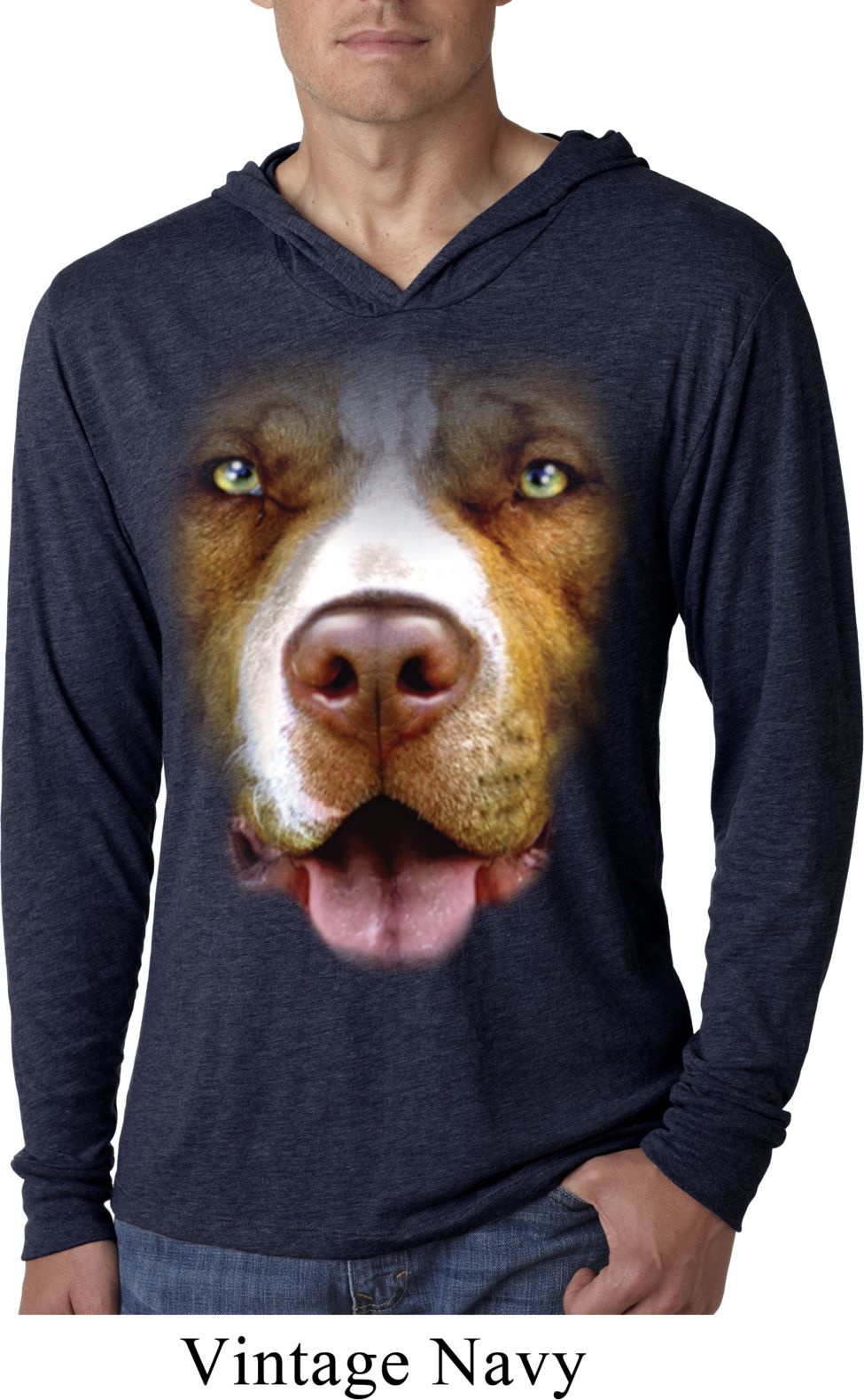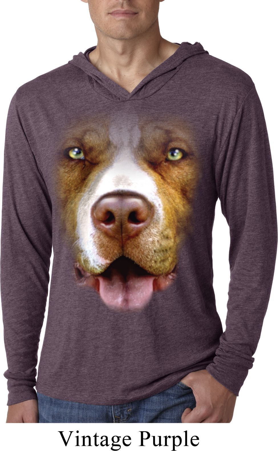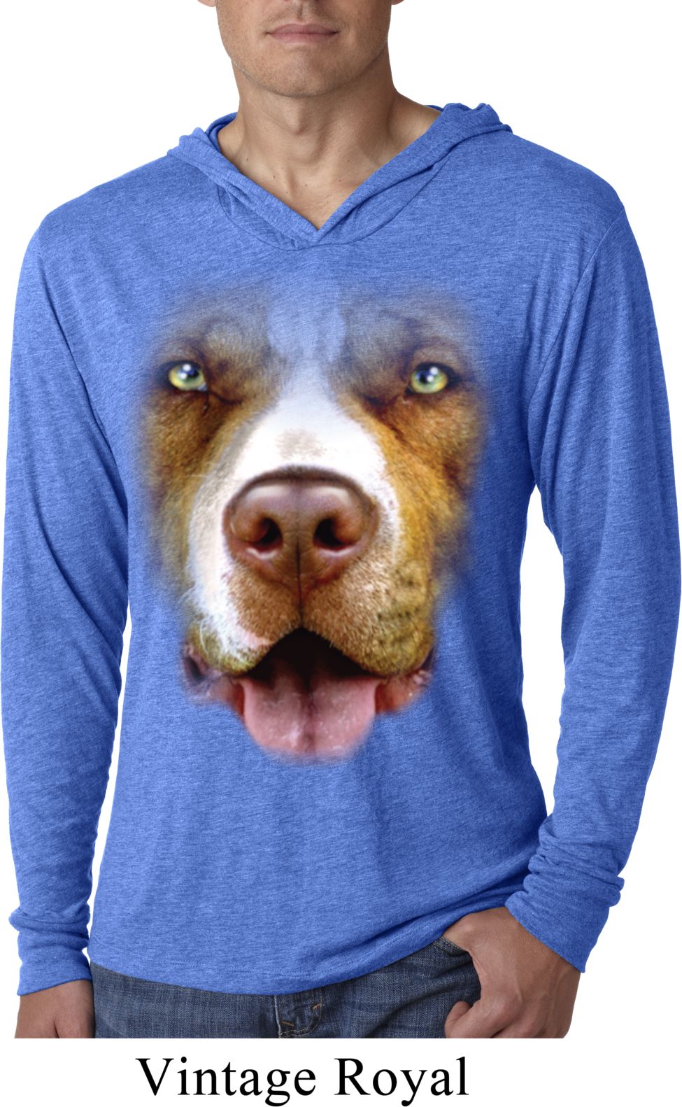 | | Mens Shirt Big Pit Bull Face Lightweight Hoodie Tee T-ShirtMens Shirt Big Pit Bull Face Lightweight Hoodie Tee T-Shirt A cotton/poly/rayon blend Available in Small, Medium, Large, XL & 2XL Also available in colors Indigo, Macchiato, Premium Heather, Venetian Grey, Vintage Black, Vintage Navy, Vintage Purple, Vintage Red, Vintage Royal, and White |