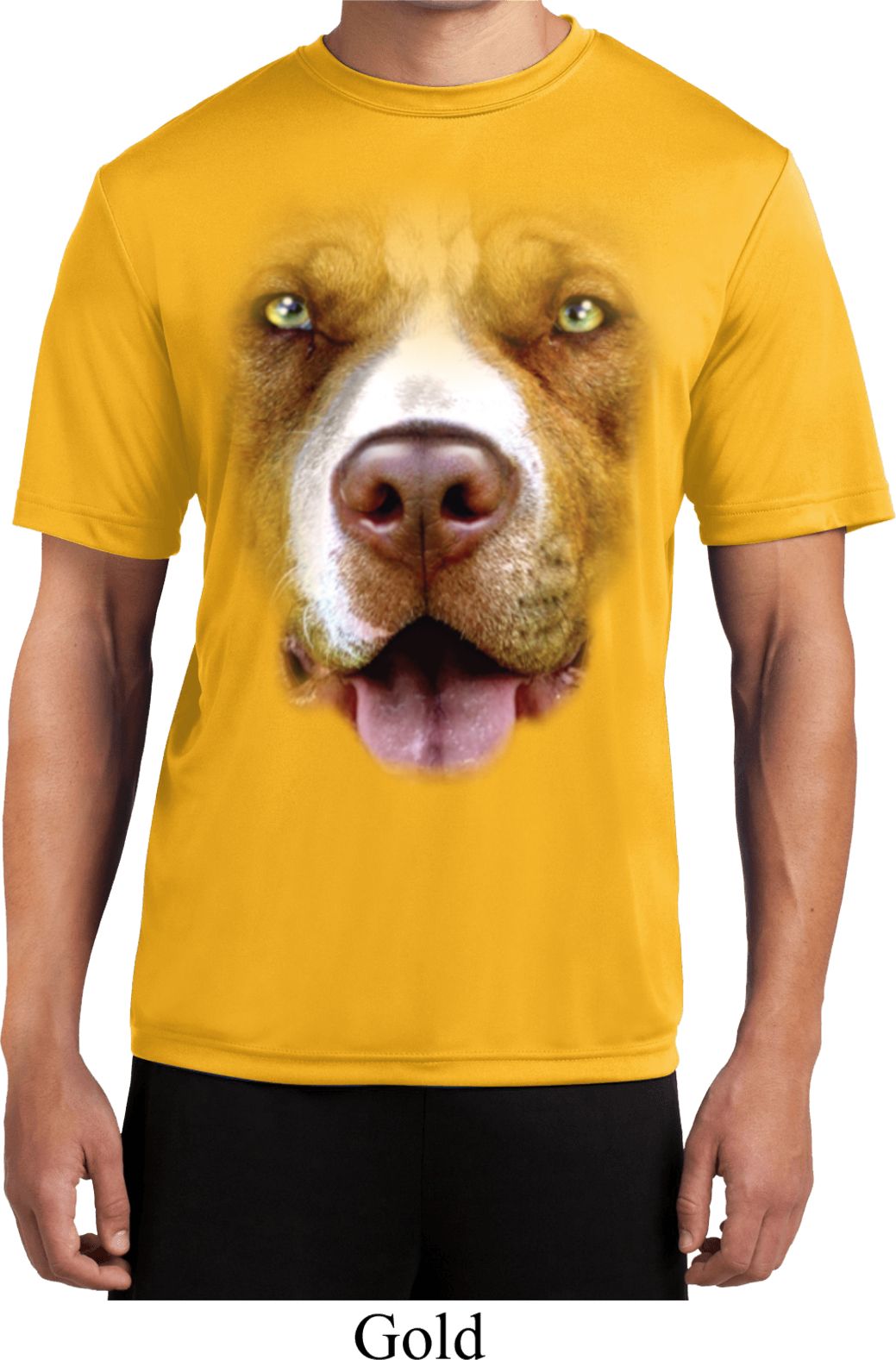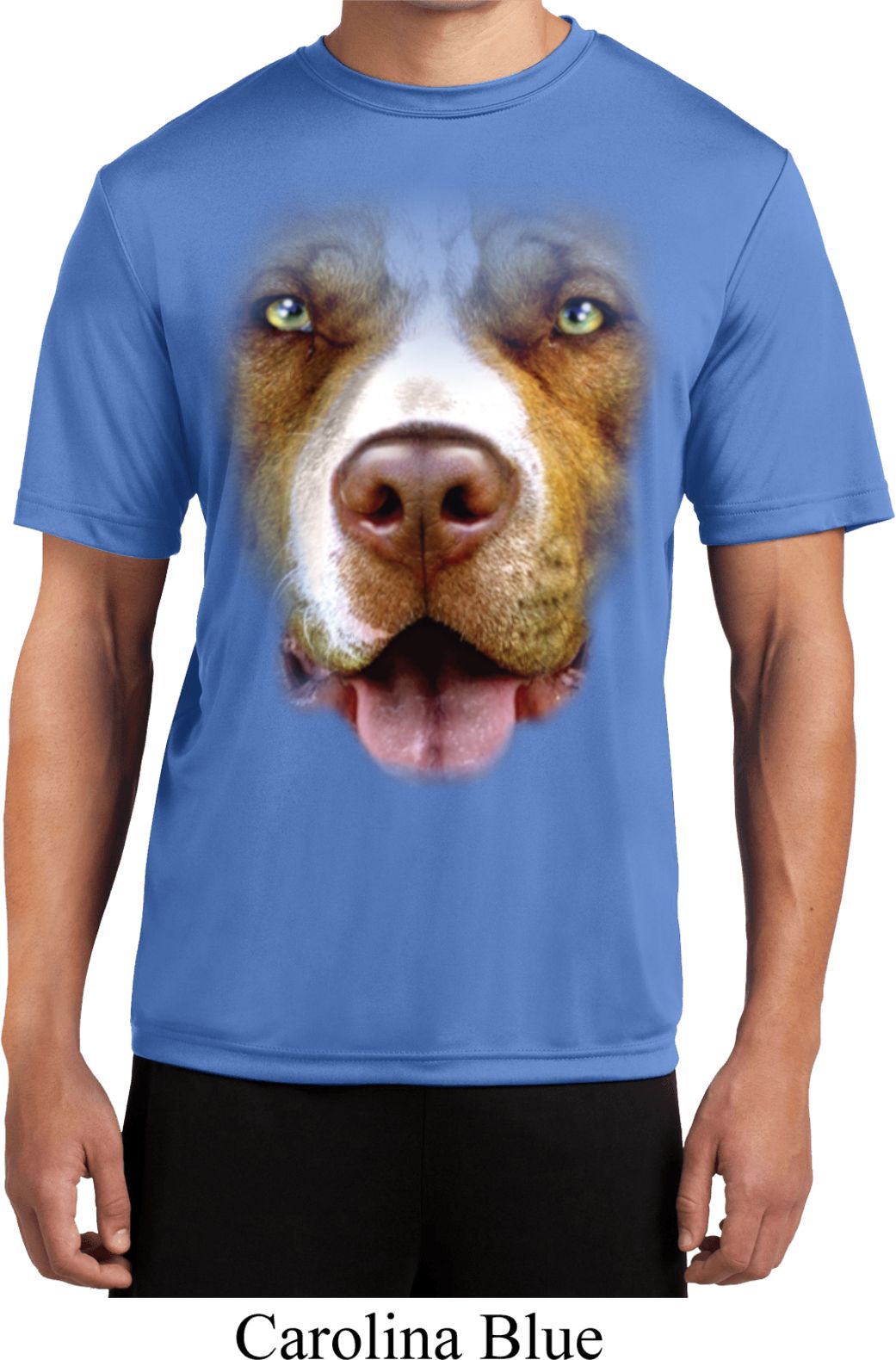 | | Mens Shirt Big Pit Bull Face Moisture Wicking Tee T-ShirtMens Shirt Big Pit Bull Face Moisture Wicking Tee T-Shirt 100% polyester Available in Small, Medium, Large, XL, 2XL, 3XL & 4XL Also available in colors Black, Cardinal, Carolina Blue, Deep Orange, Forest, Gold, Kelly, Light Pink, Lime, Maroon, Navy, Purple, Red, Royal, Sand, Silver, Tropic Blue, Vegas Gold, and White |