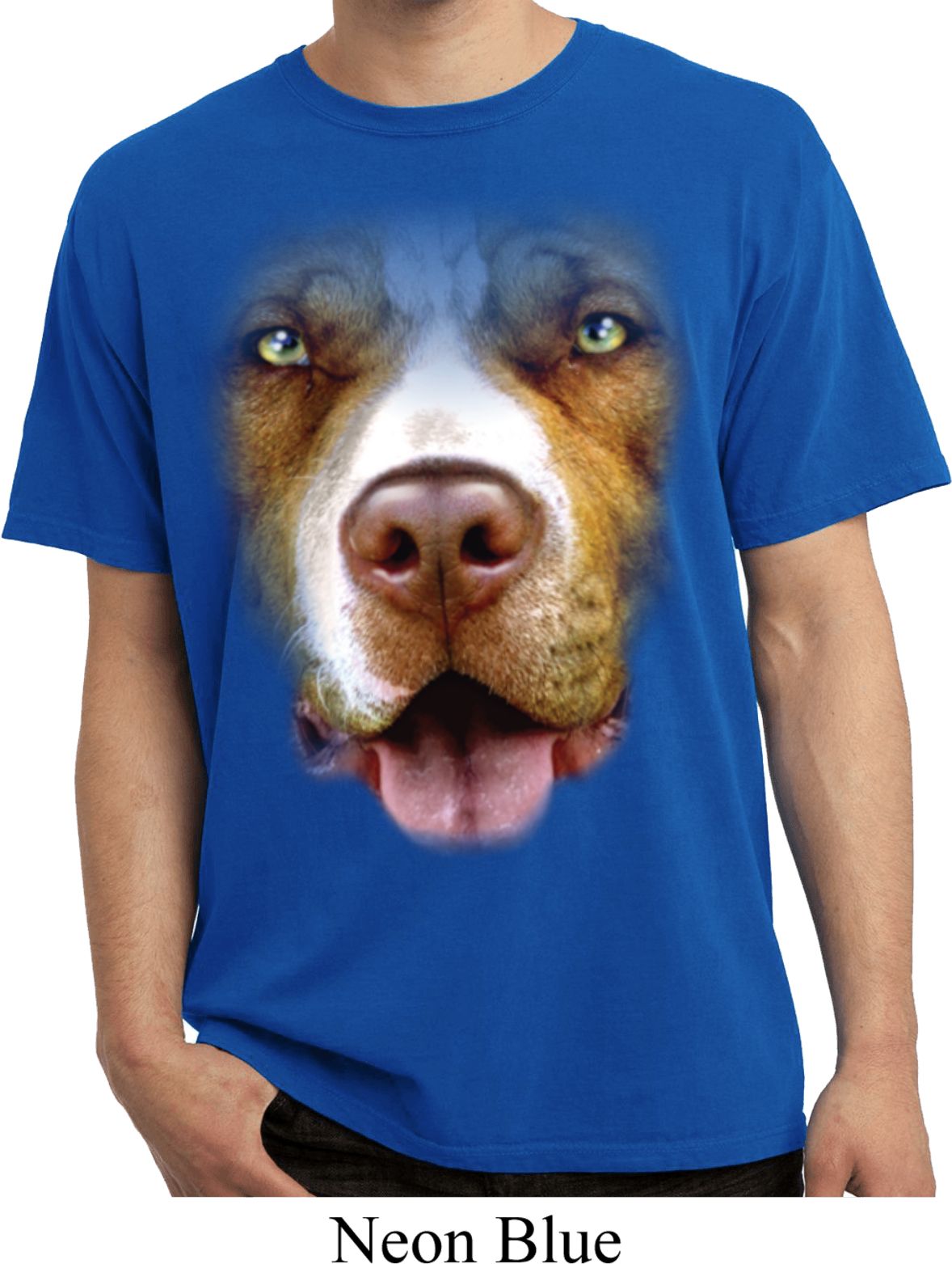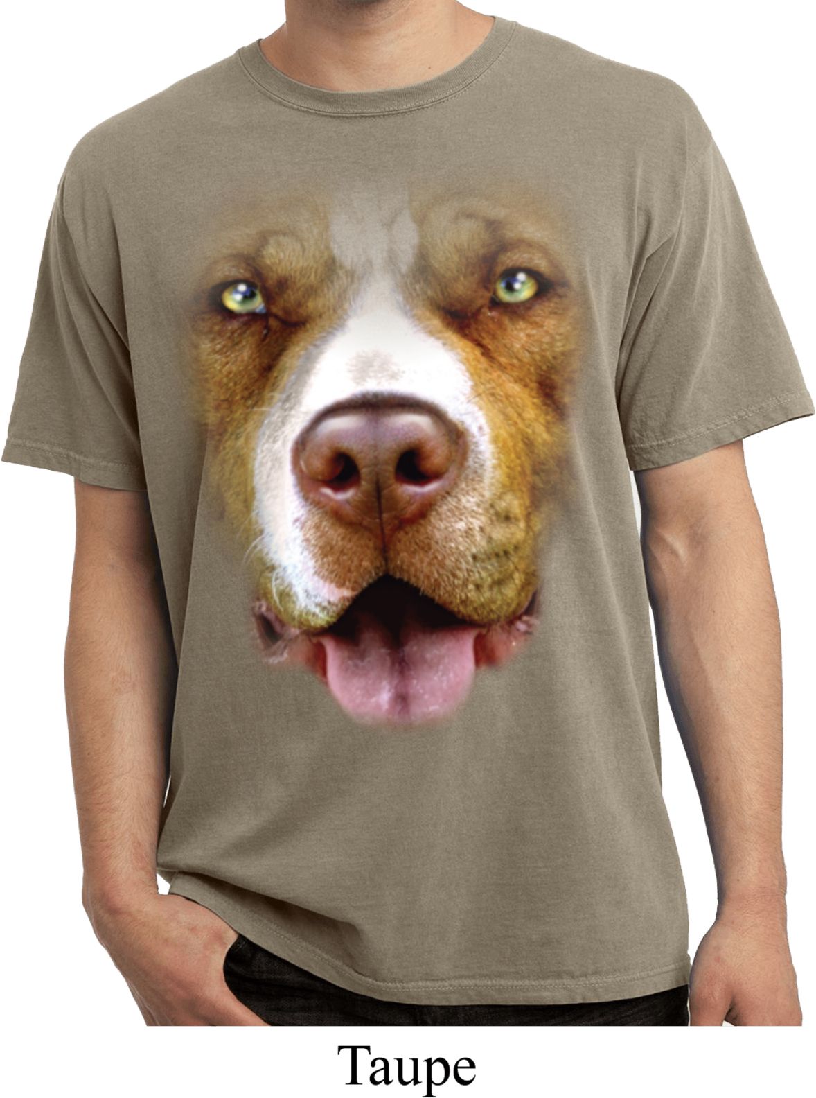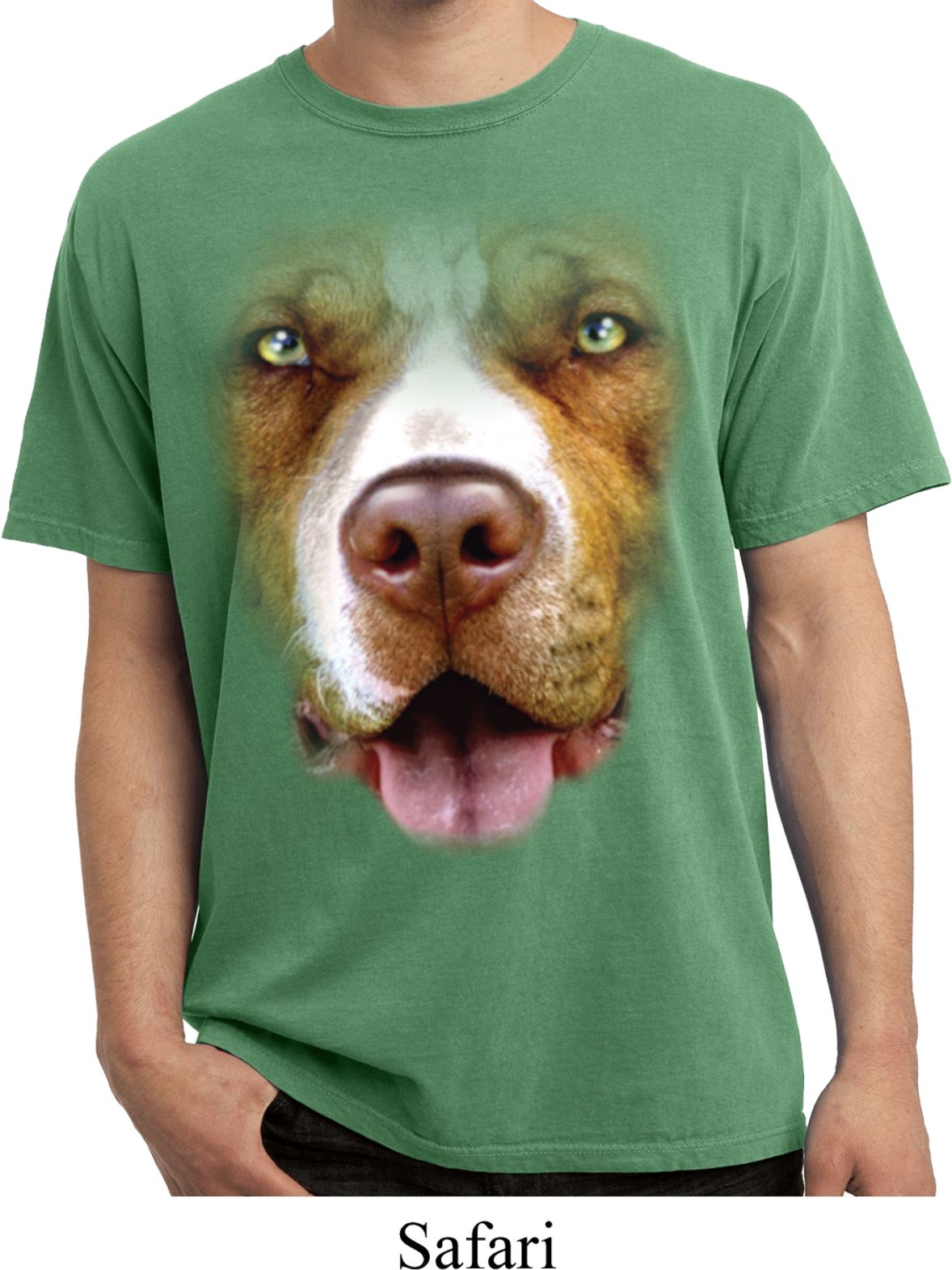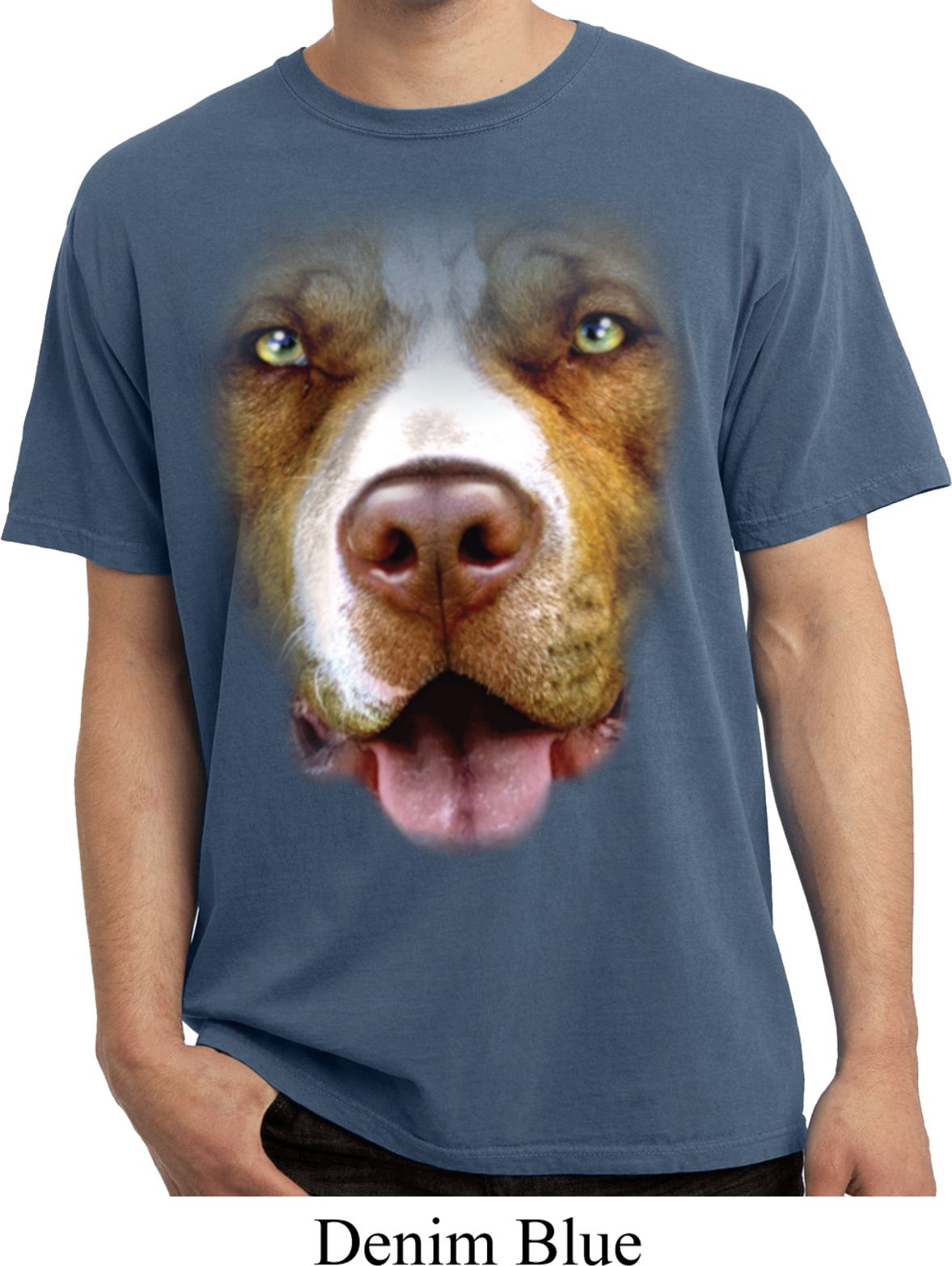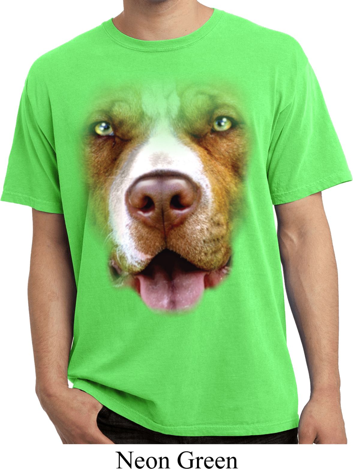 | | Mens Shirt Big Pit Bull Face Pigment Dyed Tee T-ShirtMens Shirt Big Pit Bull Face Pigment Dyed Tee T-Shirt 100% cotton Available in Small, Medium, Large, XL, 2XL, 3XL & 4XL Also available in colors Blue Moon, Coal, Denim Blue, Dijon, Neon Blue, Neon Green, Neon Orange, Neon Pink, Neon Yellow, Redrock, Safari, Taupe, and Vintage Plum ![]() |
