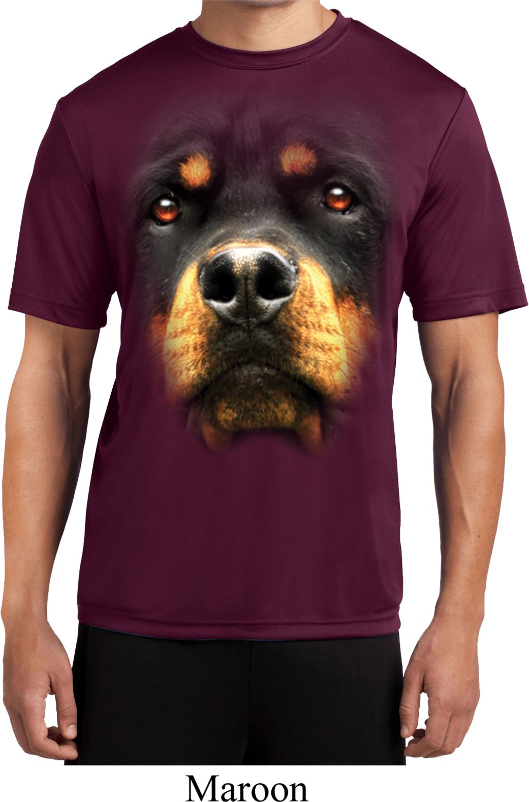 | | Mens Shirt Big Rottweiler Face Moisture Wicking Tee T-ShirtMens Shirt Big Rottweiler Face Moisture Wicking Tee T-Shirt 100% polyester Available in Small, Medium, Large, XL, 2XL, 3XL & 4XL Also available in colors Black, Cardinal, Carolina Blue, Deep Orange, Forest, Gold, Kelly, Light Pink, Lime, Maroon, Navy, Purple, Red, Royal, Sand, Silver, Tropic Blue, Vegas Gold, and White |