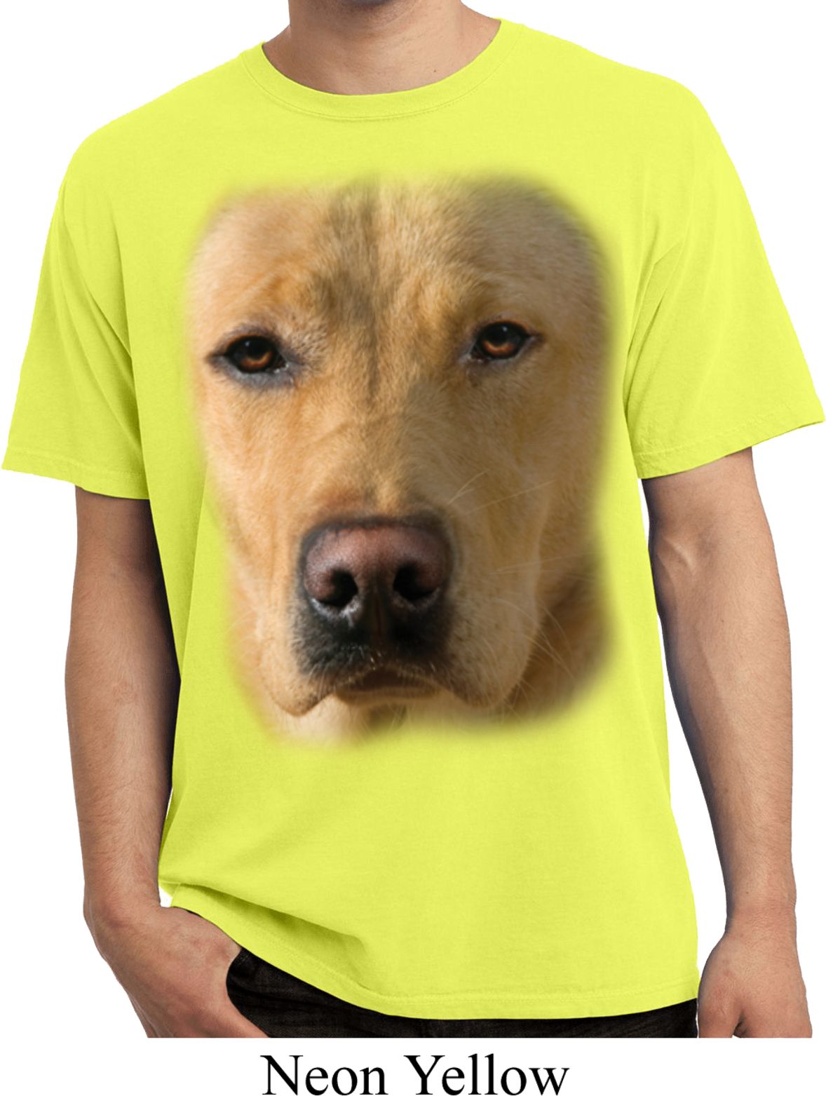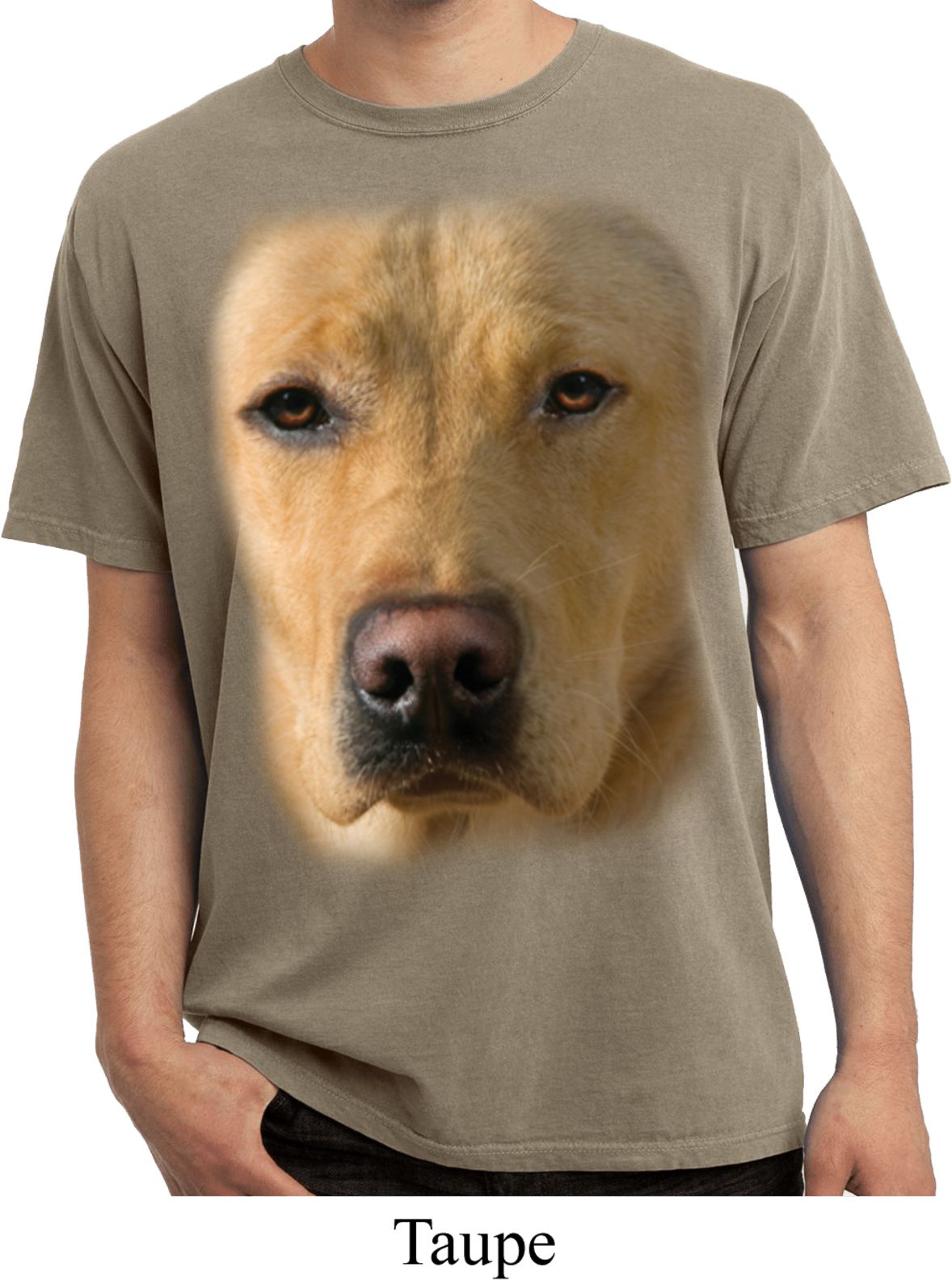 Mens Shirt Big Yellow Lab Face Pigment Dyed Tee T-Shirt