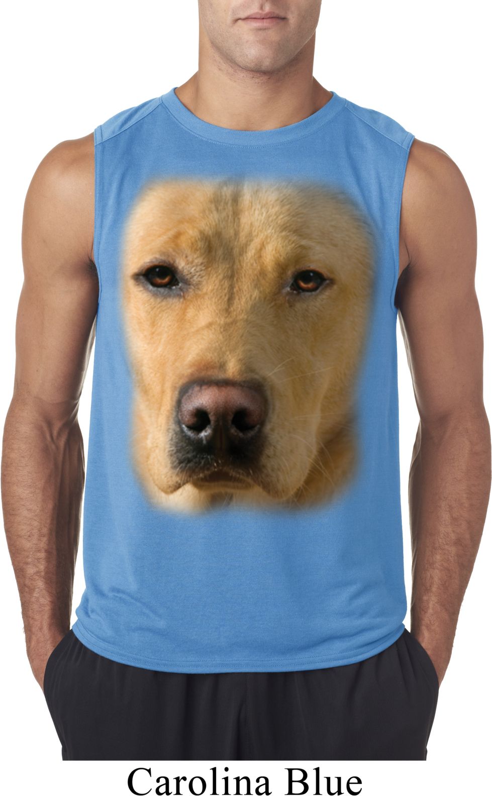 | | Mens Shirt Big Yellow Lab Face Sleeveless Tee T-ShirtMens Shirt Big Yellow Lab Face Sleeveless Tee T-Shirt 100% polyester Athletic heather is a cotton/poly blend Available in Small, Medium, Large, XL & 2XL Also available in colors Carolina Blue, Safety Green, and White |