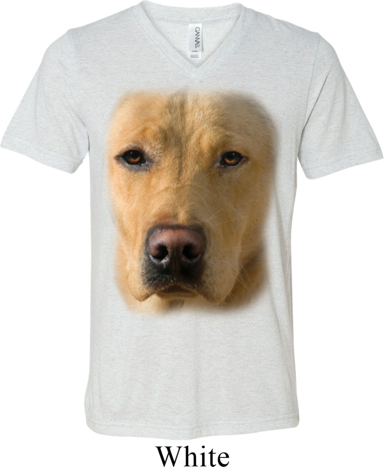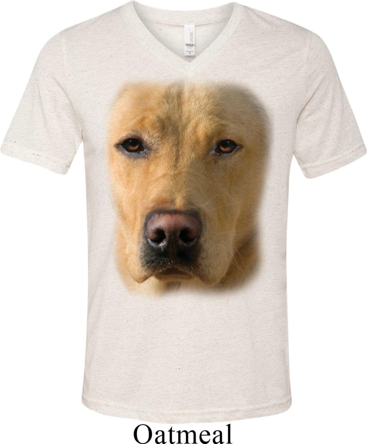 | | Mens Shirt Big Yellow Lab Face Tri Blend V-neck Tee T-ShirtMens Shirt Big Yellow Lab Face Tri Blend V-neck Tee T-Shirt A cotton/poly/rayon blend Available in Small, Medium, Large, XL & 2XL Also available in colors Athletic Grey, Blue, Oatmeal, and White |