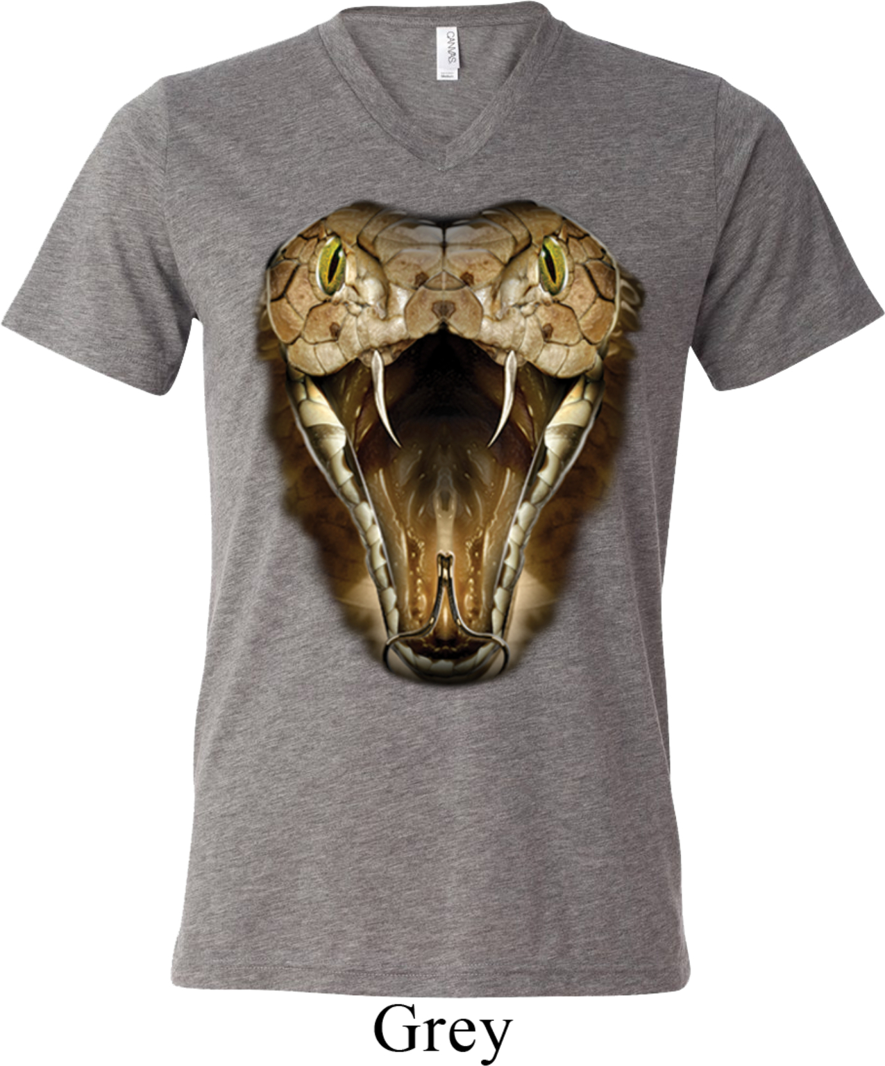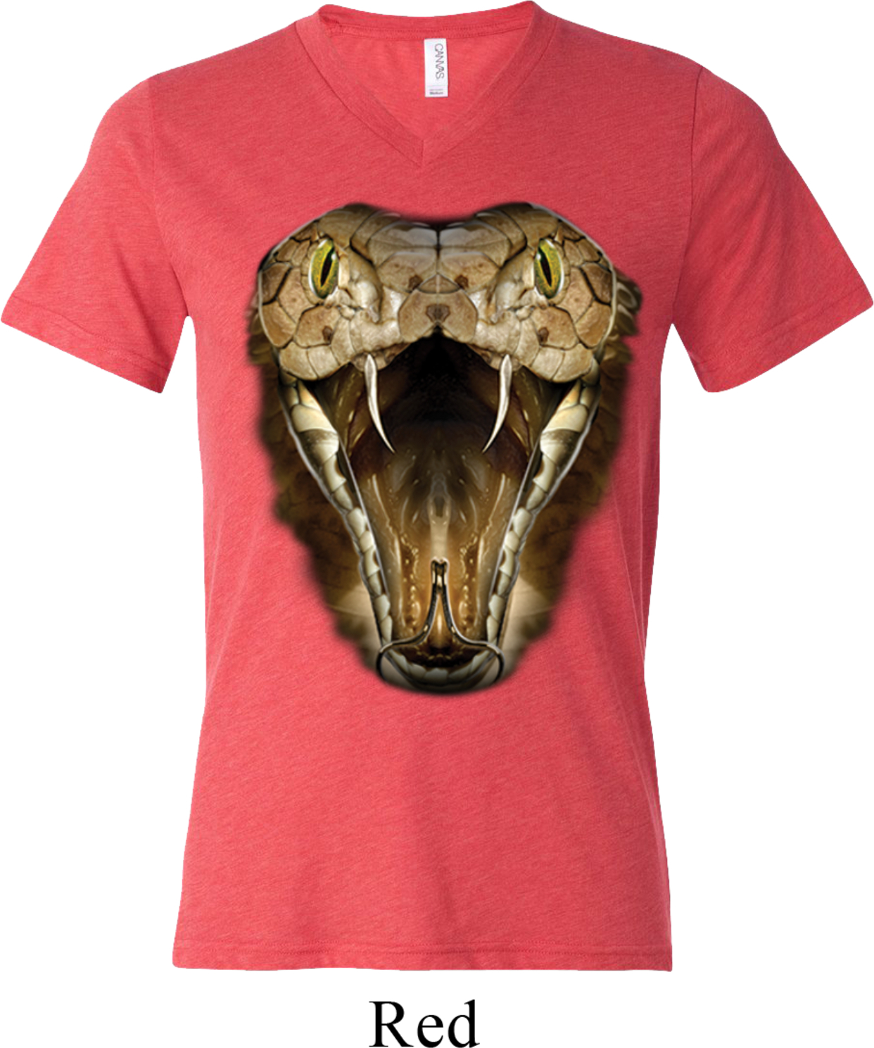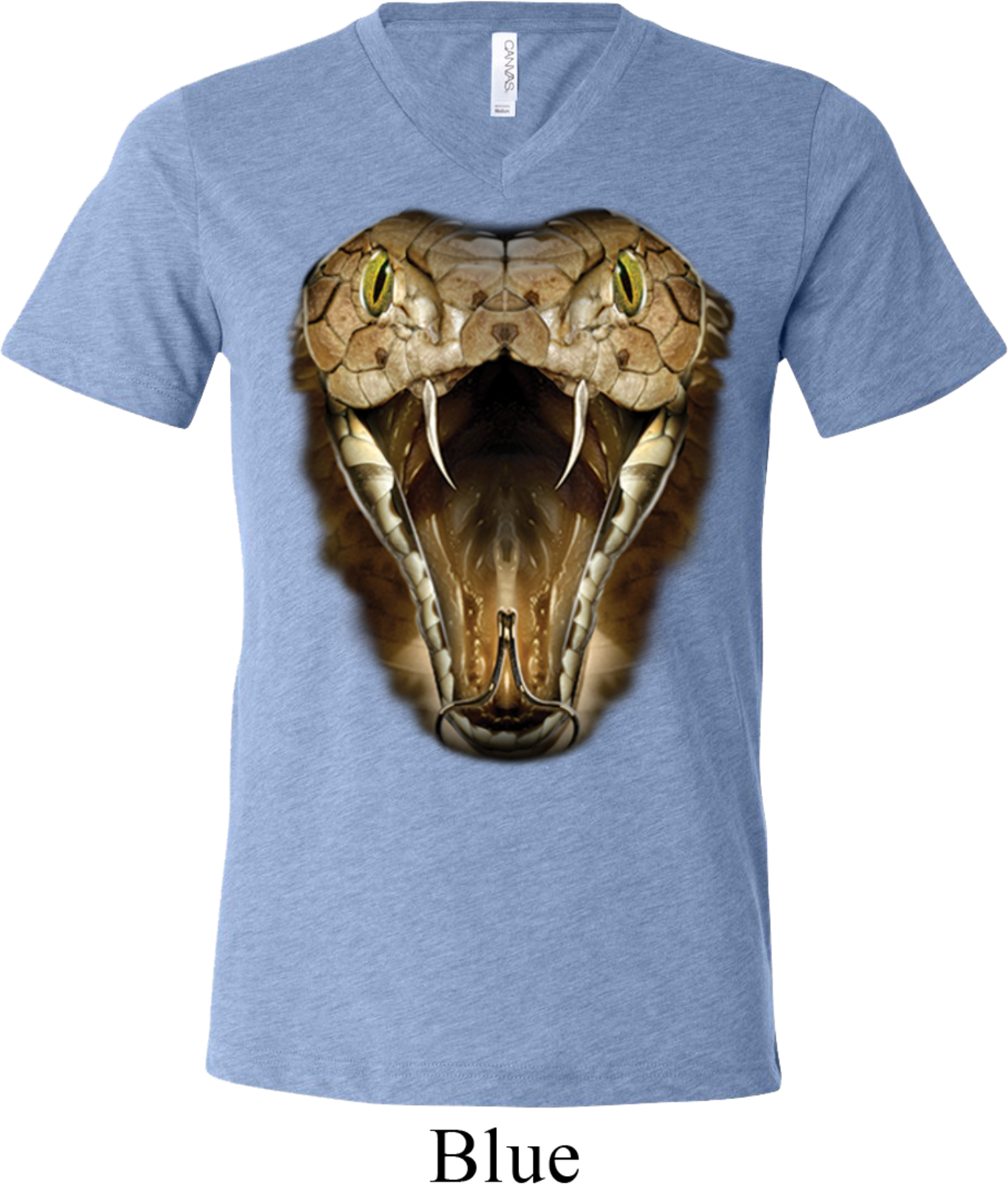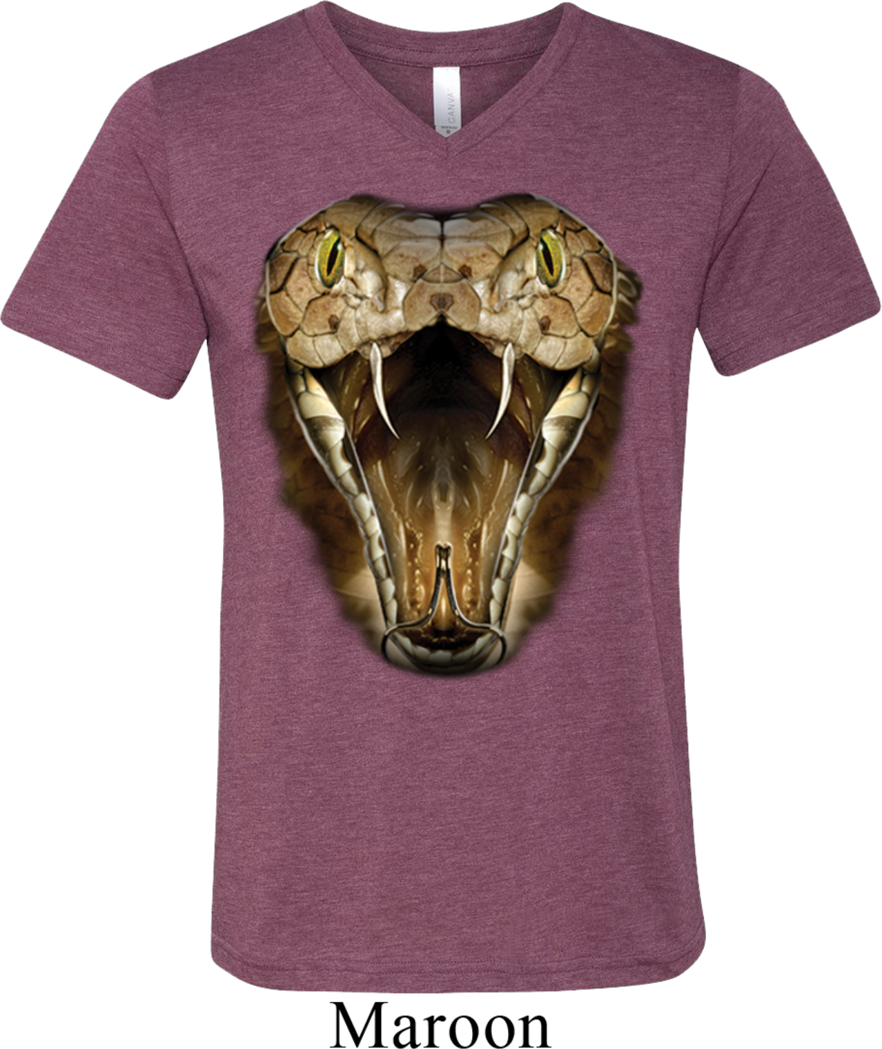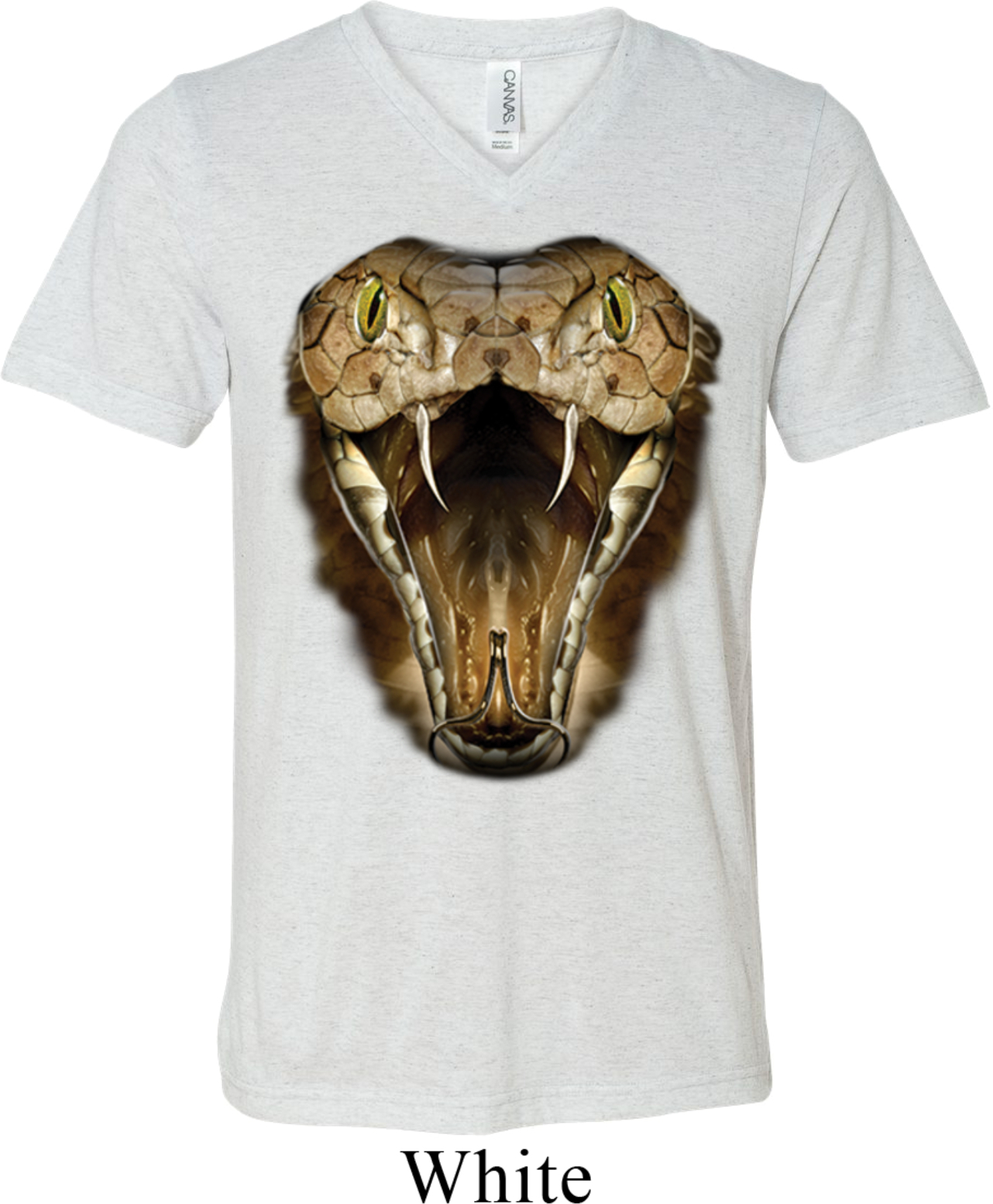 | | Mens Snake Shirt Big Cobra Snake Face Tri Blend V-neck Tee T-ShirtMens Snake Shirt Big Cobra Snake Face Tri Blend V-neck Tee T-Shirt A cotton/poly/rayon blend Available in Small, Medium, Large, XL & 2XL Also available in colors Aqua, Athletic Grey, Blue, Brown, Charcoal Black, Clay, Green, Grey, Maroon, Navy, Oatmeal, Orange, Red, Royal, Teal, and White |