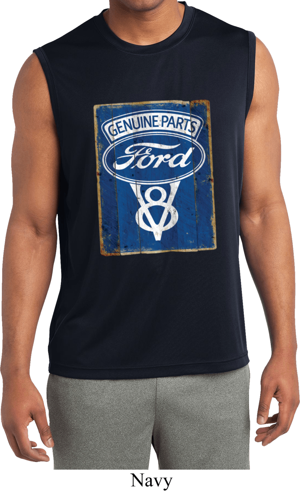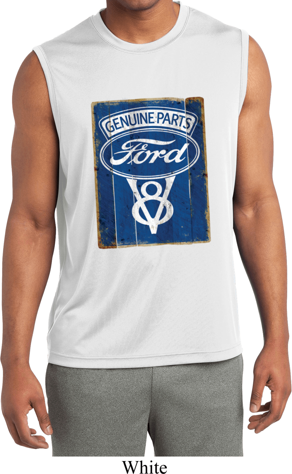 | | Mens Shirt V8 Genuine Ford Parts Sleeveless Moisture Wicking Tee T-ShirtMens Shirt V8 Genuine Ford Parts Sleeveless Moisture Wicking Tee T-Shirt 100% polyester Available in Small, Medium, Large, XL, 2XL, 3XL & 4XL Also available in colors Black, Lime, Navy, Red, Royal, Silver, and White |