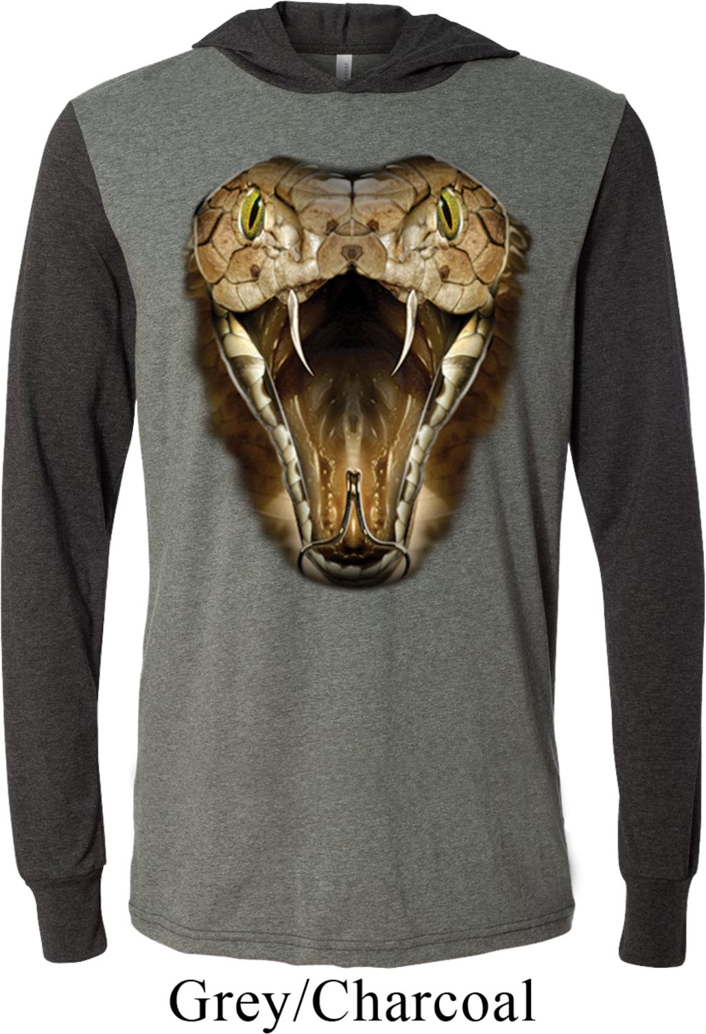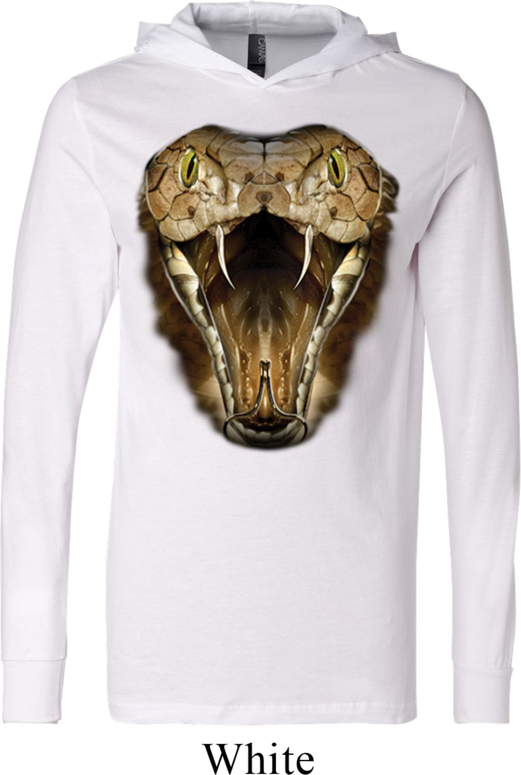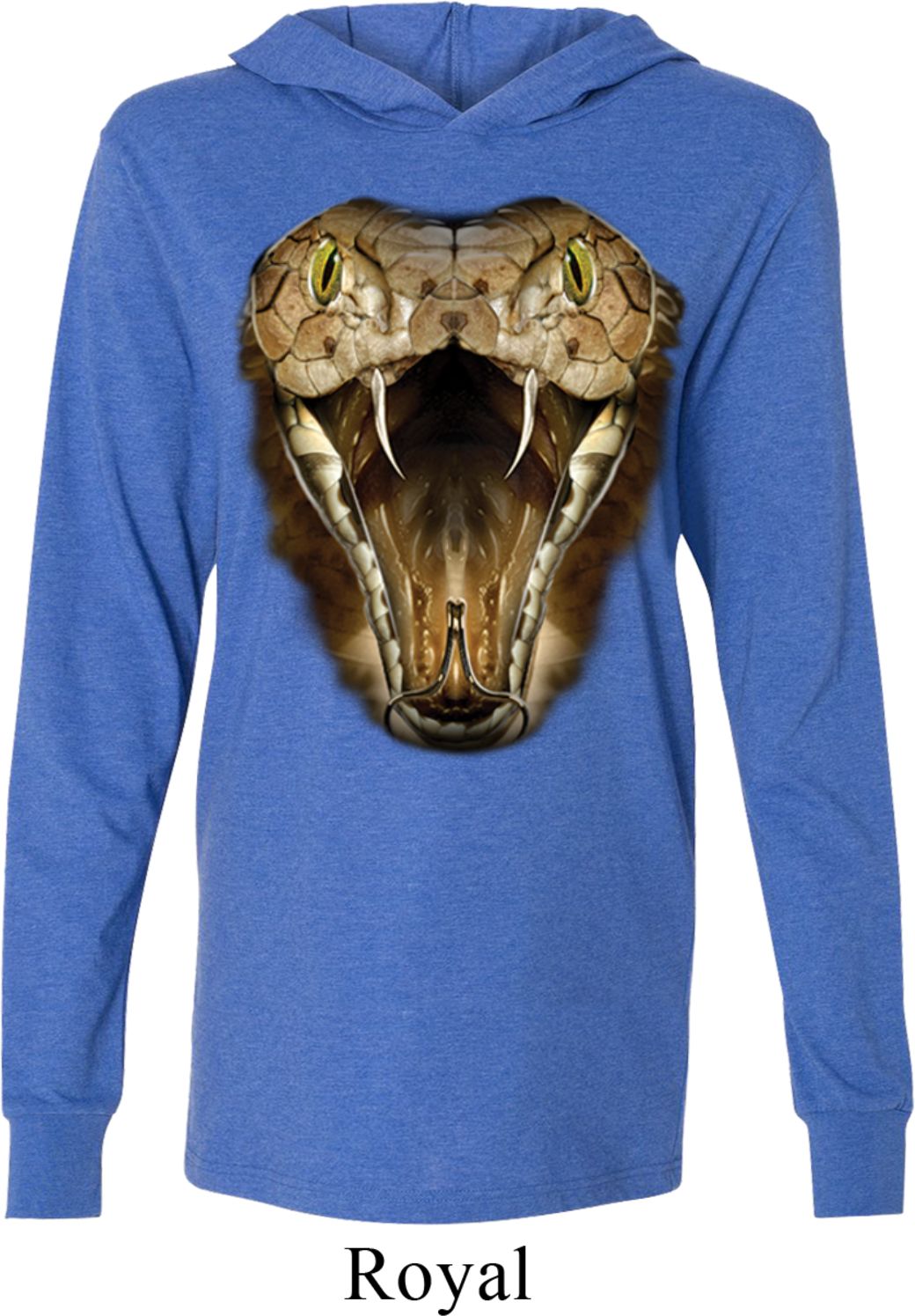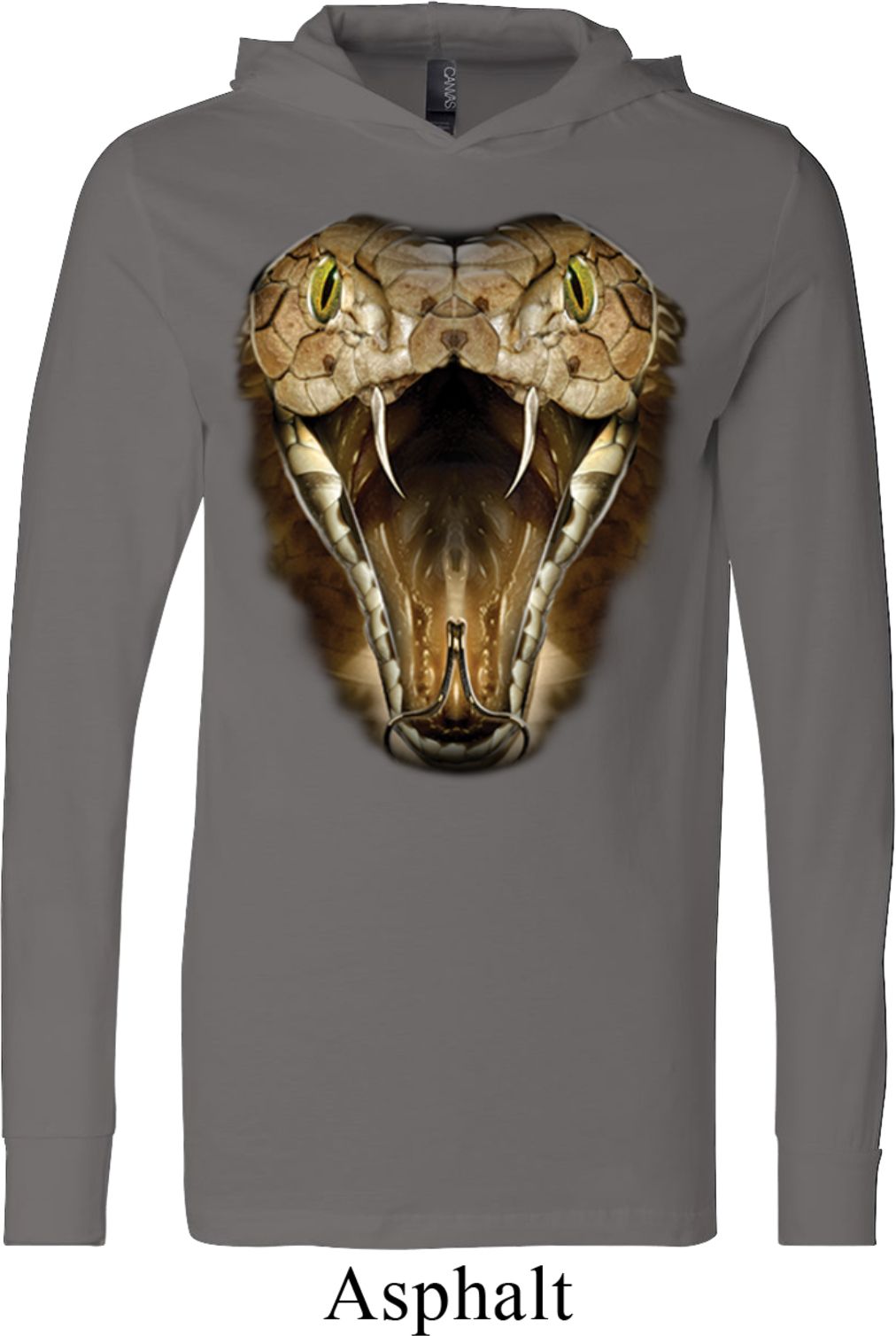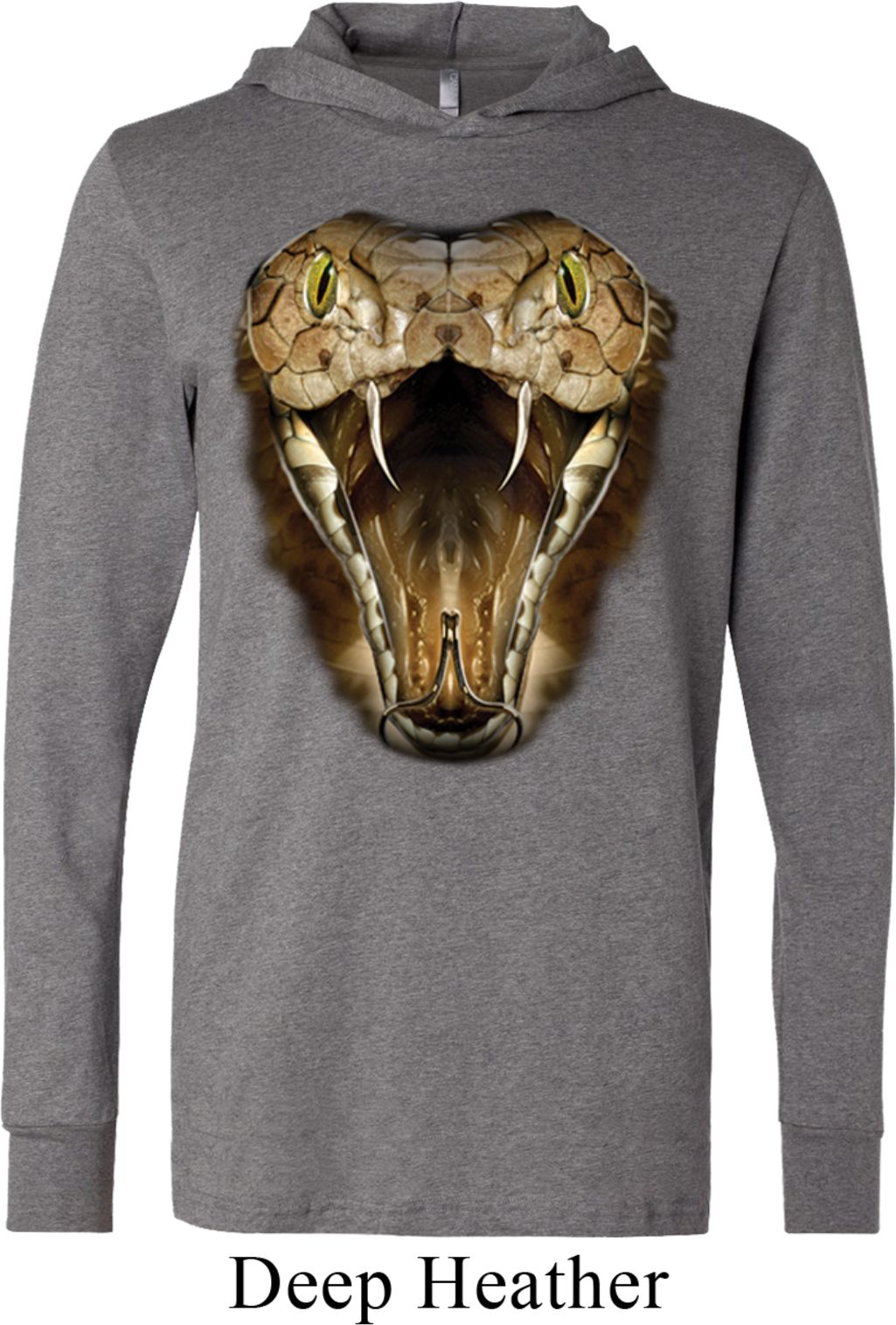 | | Mens Snake Shirt Big Cobra Snake Face Lightweight Hoodie TeeMens Snake Shirt Big Cobra Snake Face Lightweight Hoodie Tee 100% cotton Deep heather, Grey/Charcoal, and Navy are a cotton/poly blend Charcoal Heather is a cotton/poly/rayon blend Available in Small, Medium, Large, XL & 2XL Also available in colors Asphalt, Black, Charcoal Heather, Deep Heather, Grey Charcoal, Navy, Royal, and White |