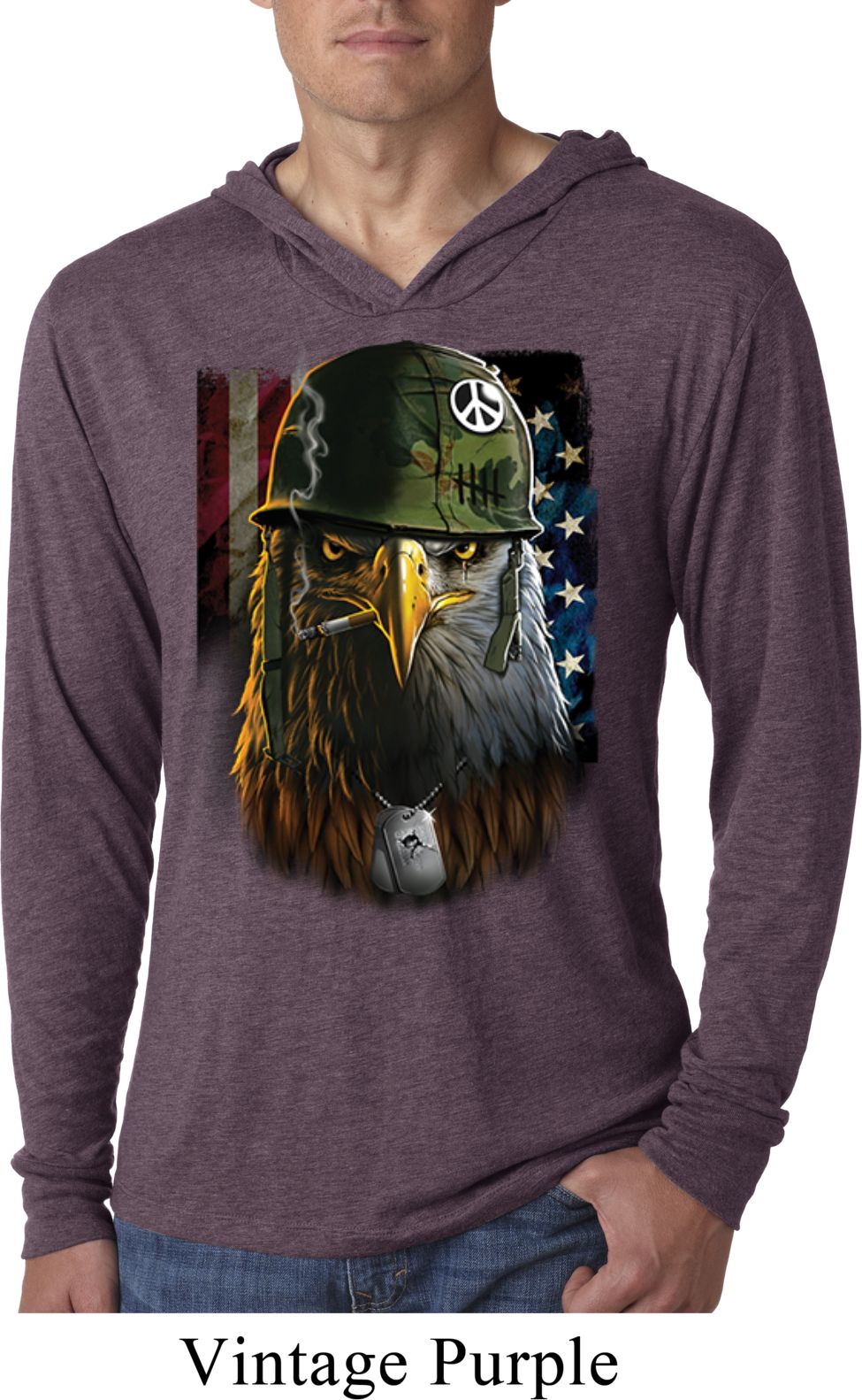 | | Mens USA Tee American Eagle Lightweight Hoodie TeeA mens lightweight hoodie featuring a unique American Eagle design with the American Flag in the background. Our mens hooded shirt is made with a blend of cotton/poly/rayon. Available in sizes Small through 2XL. Machine wash cold with like colors; dry low heat. ![]() |