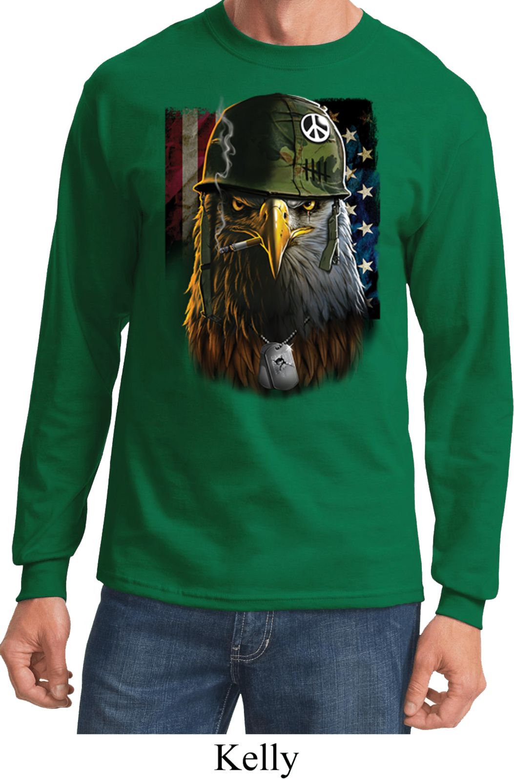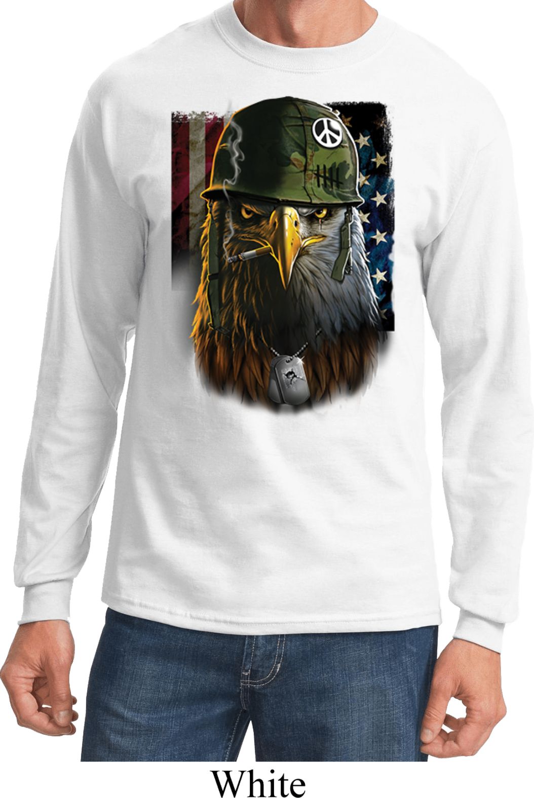 | | Mens USA Tee American Eagle Long SleeveA mens long sleeve shirt featuring a unique American Eagle design with the American Flag in the background. Our mens shirt is made of 100% cotton. (Ash and Athletic Heather are made with a blend of cotton/poly) Available in sizes Small through 4XL. Machine wash cold with like colors; dry low heat. ![]() |