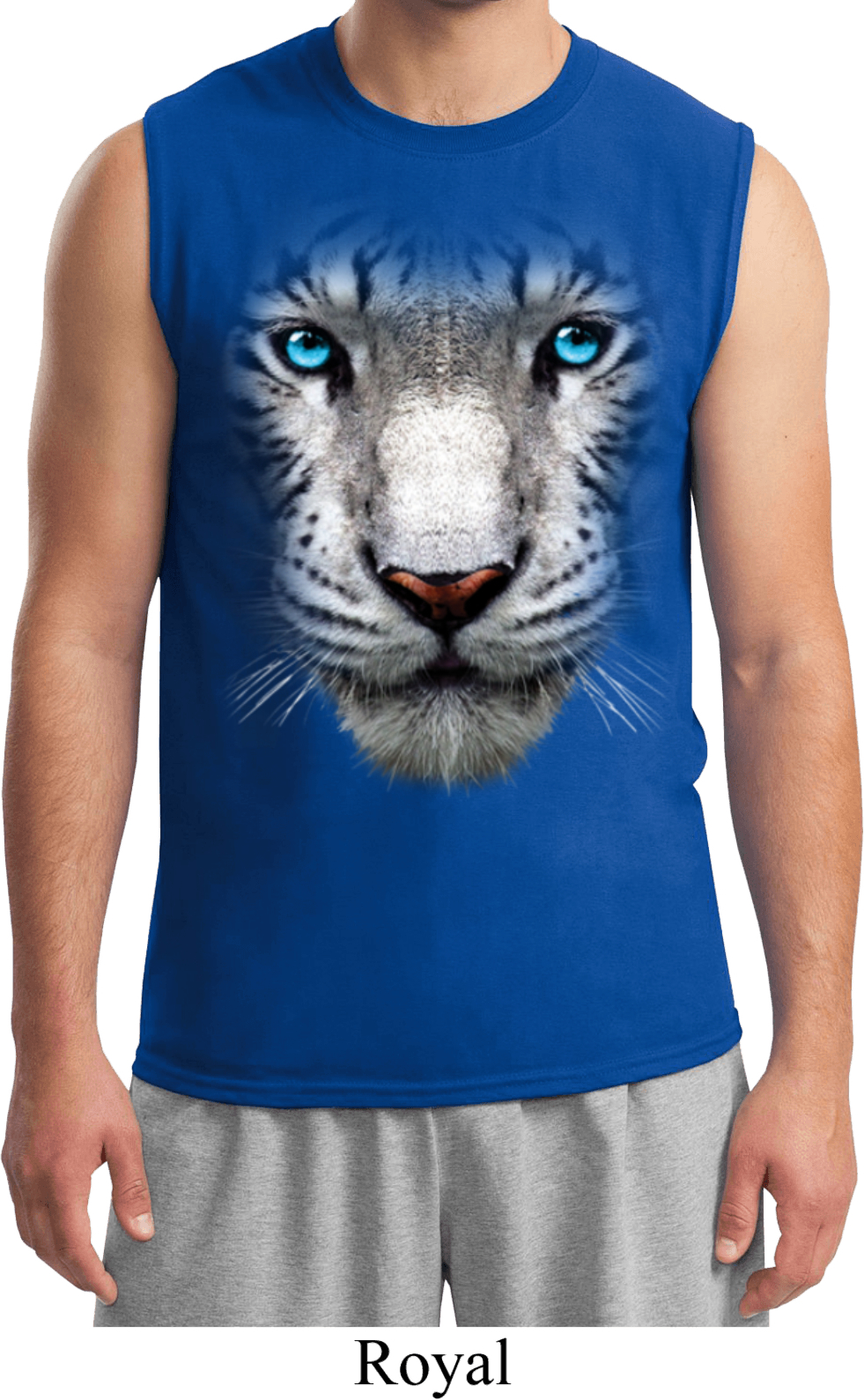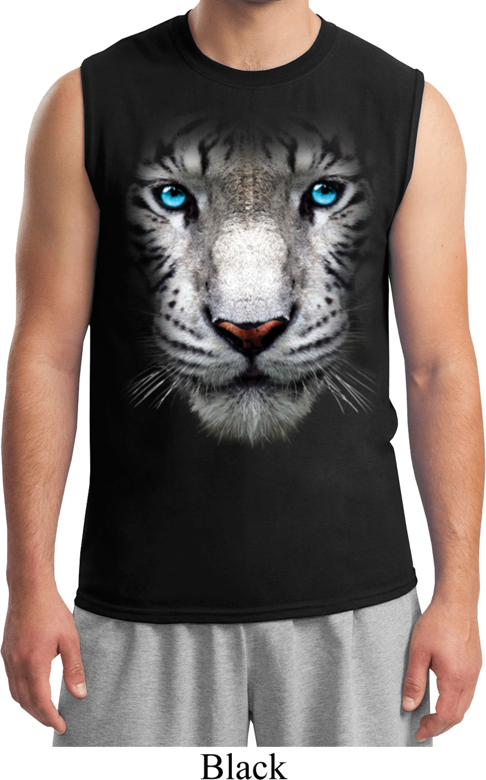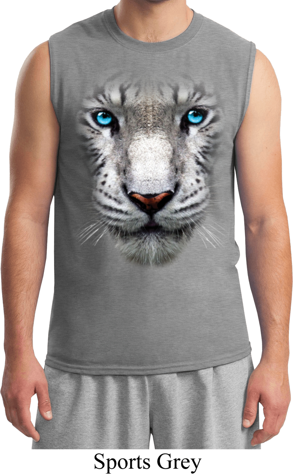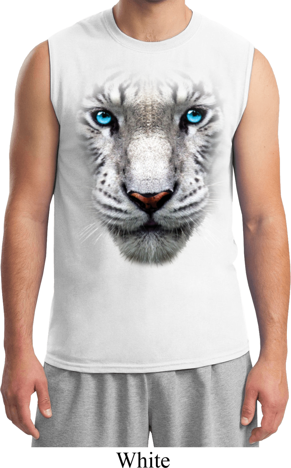 | | Mens White Tiger Shirt Big White Tiger Face Muscle Tee T-ShirtMens White Tiger Shirt Big White Tiger Face Muscle Tee T-Shirt 100% cotton Sports grey is a cotton/poly blend Available in Small, Medium, Large, XL & 2XL Also available in colors Black, Navy, Red, Royal, Sports Grey, and White ![]() |