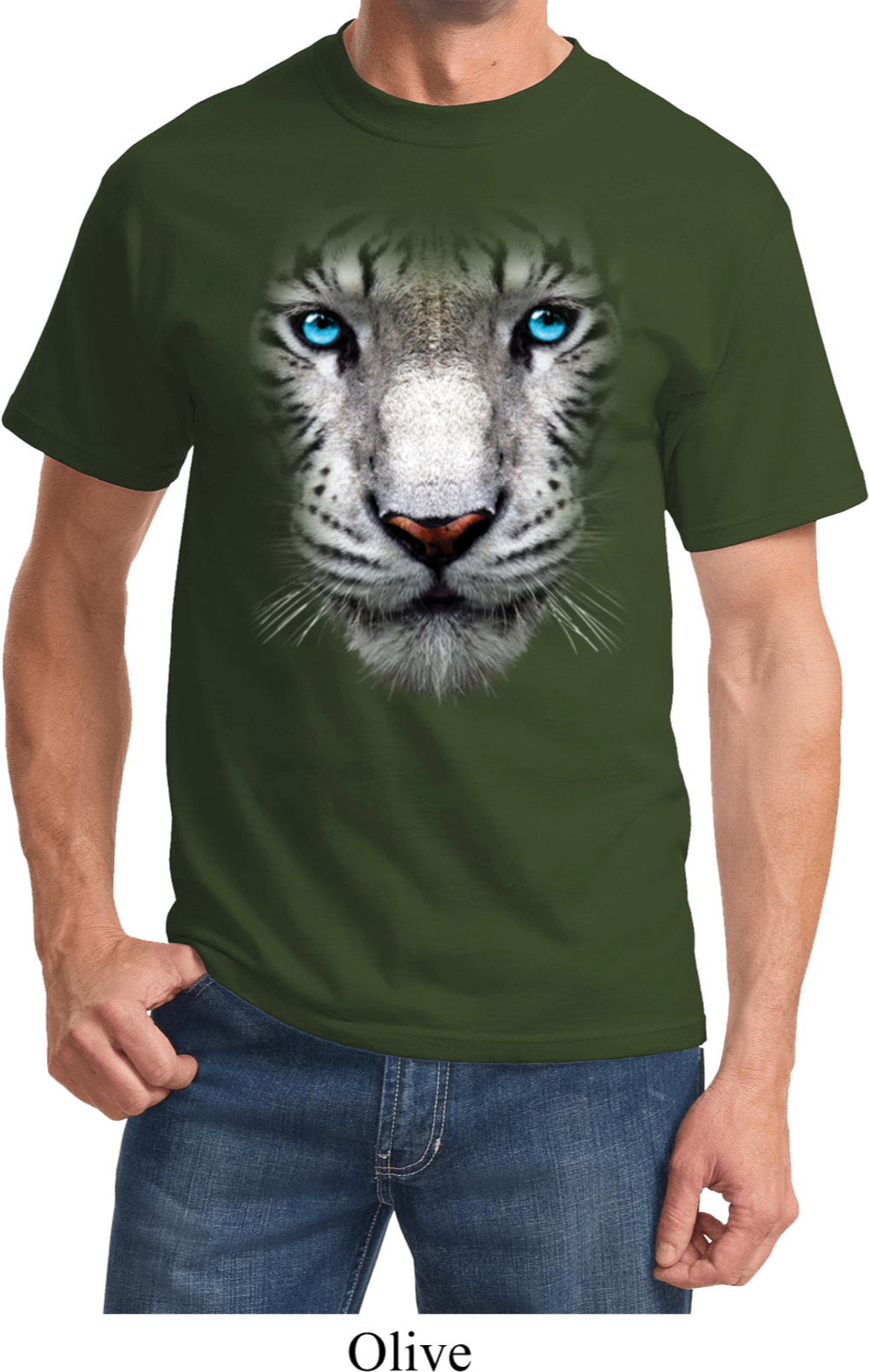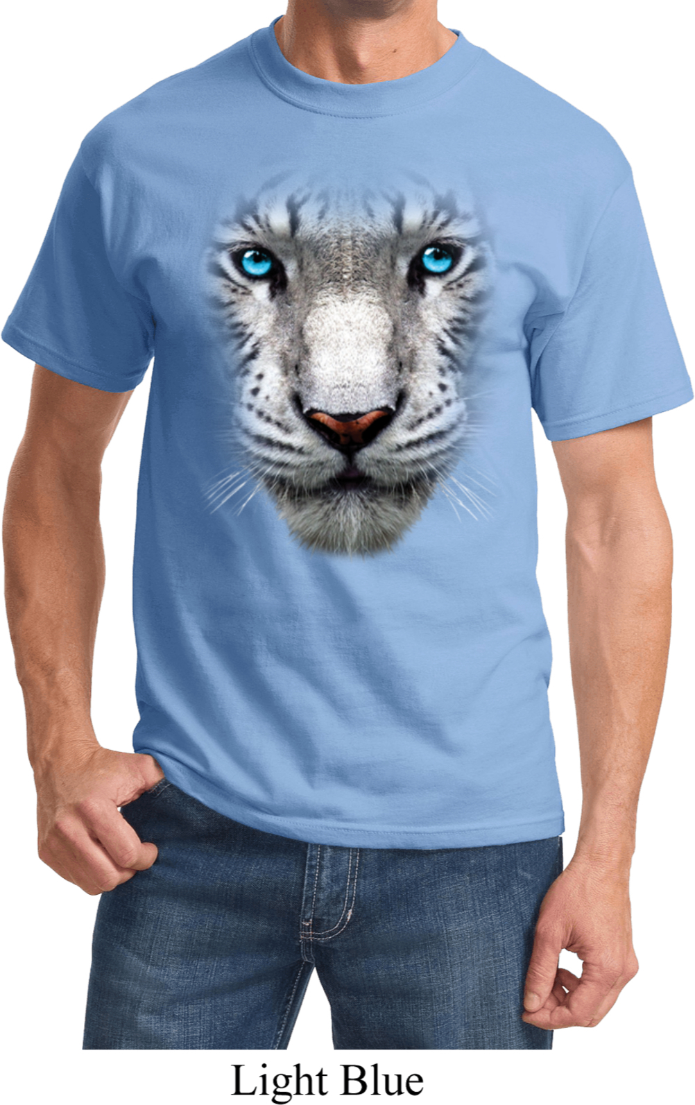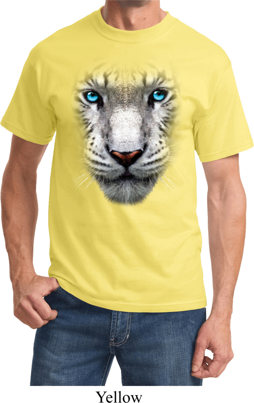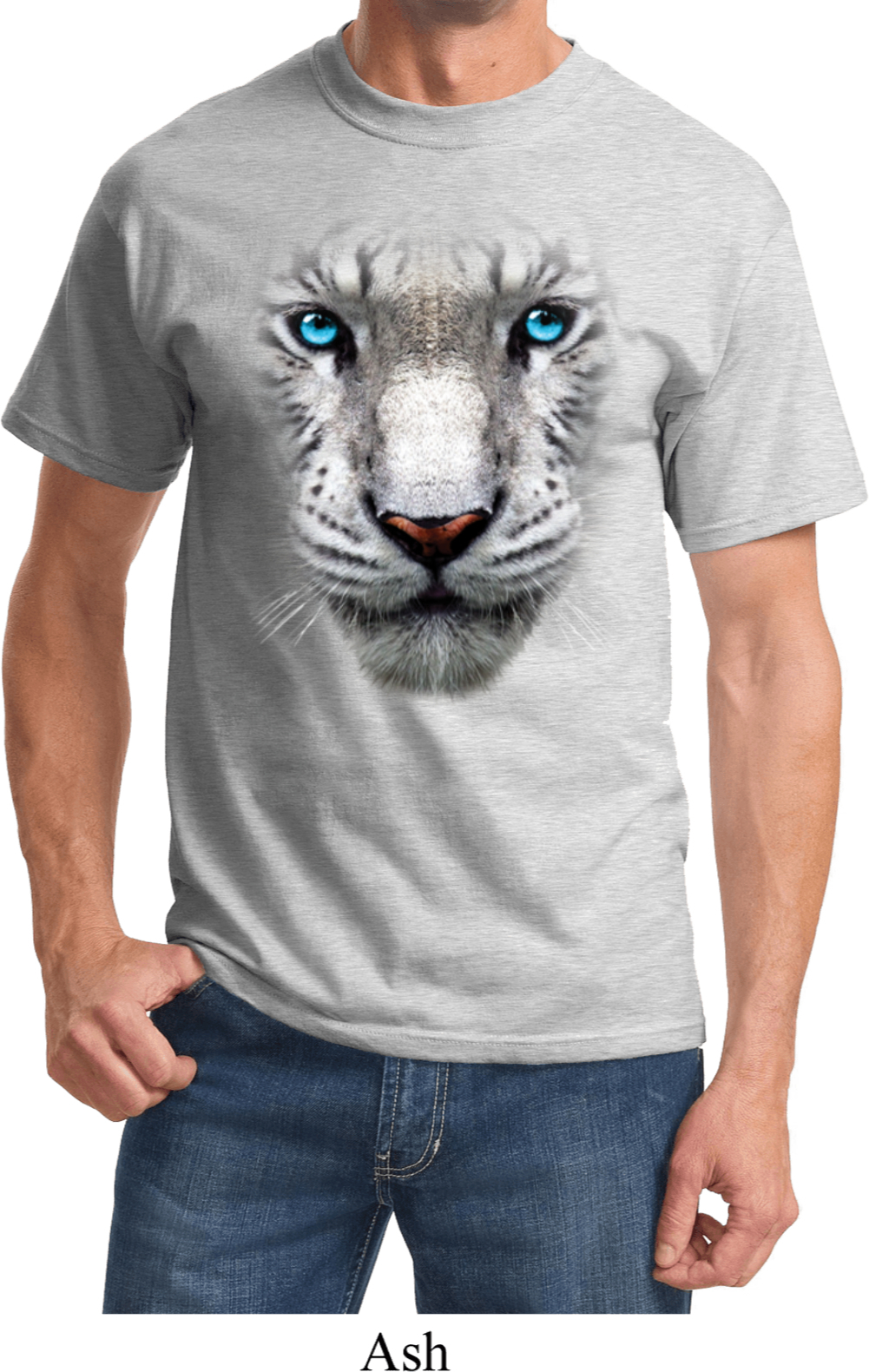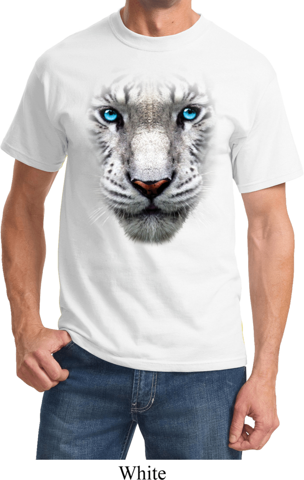 | | Mens White Tiger Shirt Big White Tiger Face Tee T-ShirtMens White Tiger Shirt Big White Tiger Face Tee T-Shirt 100% cotton Ash is a cotton/poly blend Available in Small, Medium, Large, XL, 2XL, 3XL, 4XL, 5XL & 6XL Also available in colors Ash, Black, Brown, Charcoal, Gold, Kelly, Light Blue, Natural, Navy, Olive, Orange, Pale Pink, Purple, Red, Royal, Sangria, White, and Yellow ![]() |