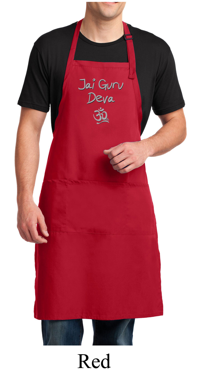 Mens Yoga Apron Jai Guru Deva Full Length Apron with Pockets