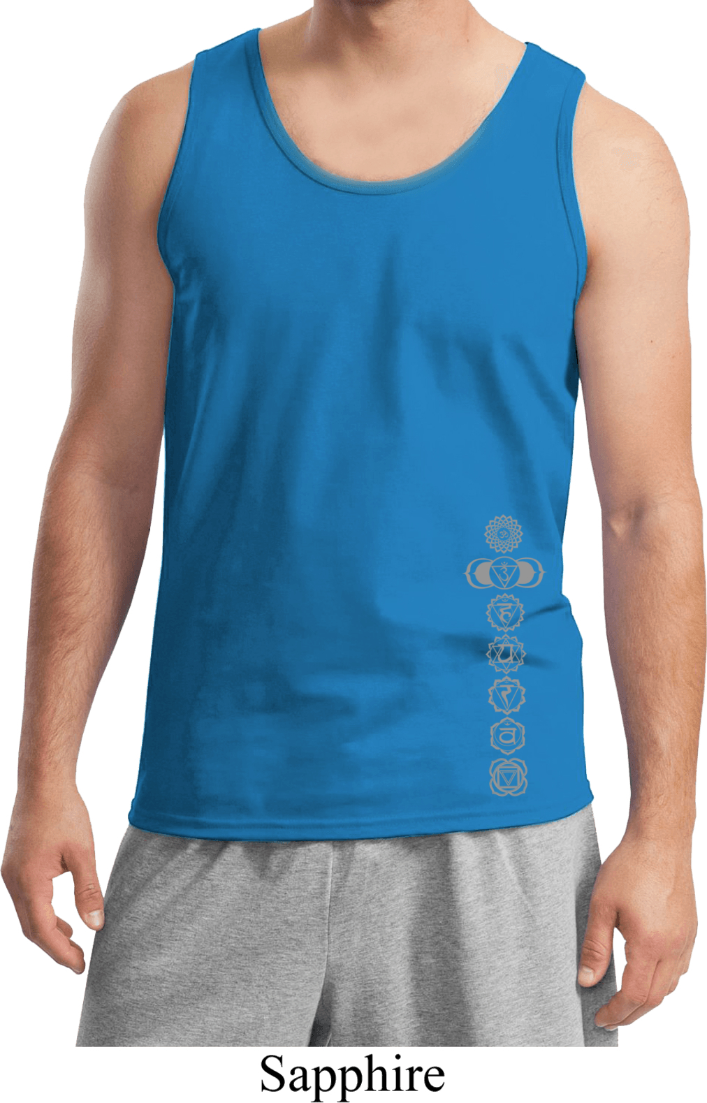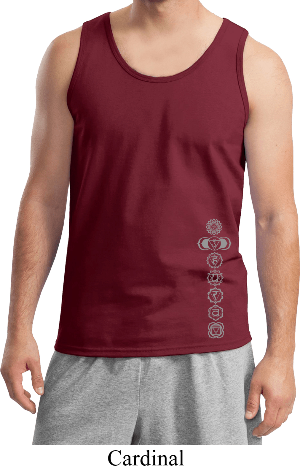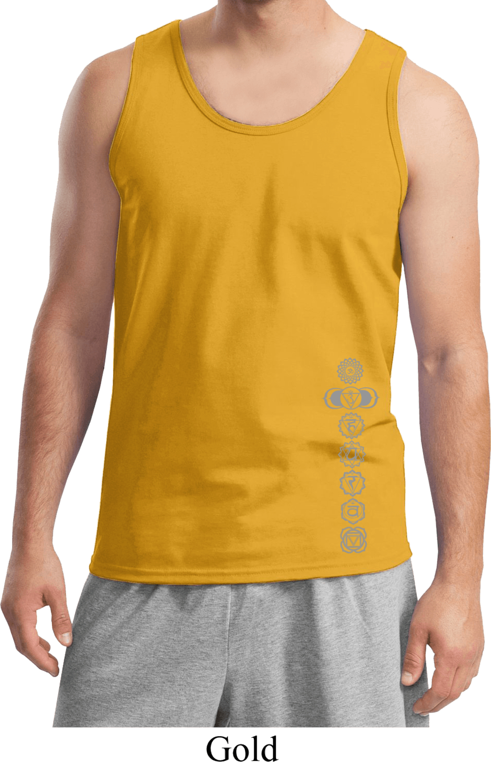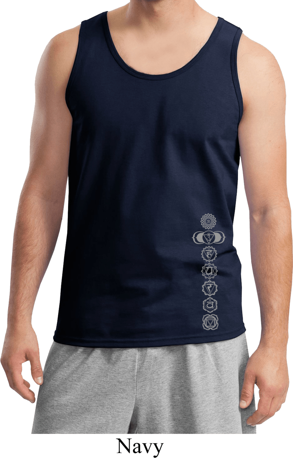 | | Mens Yoga Tanktop 7 Chakras Bottom Print Tank TopMens Yoga Tanktop 7 Chakras Bottom Print Tank Top 100% cotton Available in Small, Medium, Large, XL & 2XL Also available in colors Black, Cardinal, Charcoal, Gold, Lime, Navy, Orange, Purple, Red, Royal, Sapphire, and White ![]() |